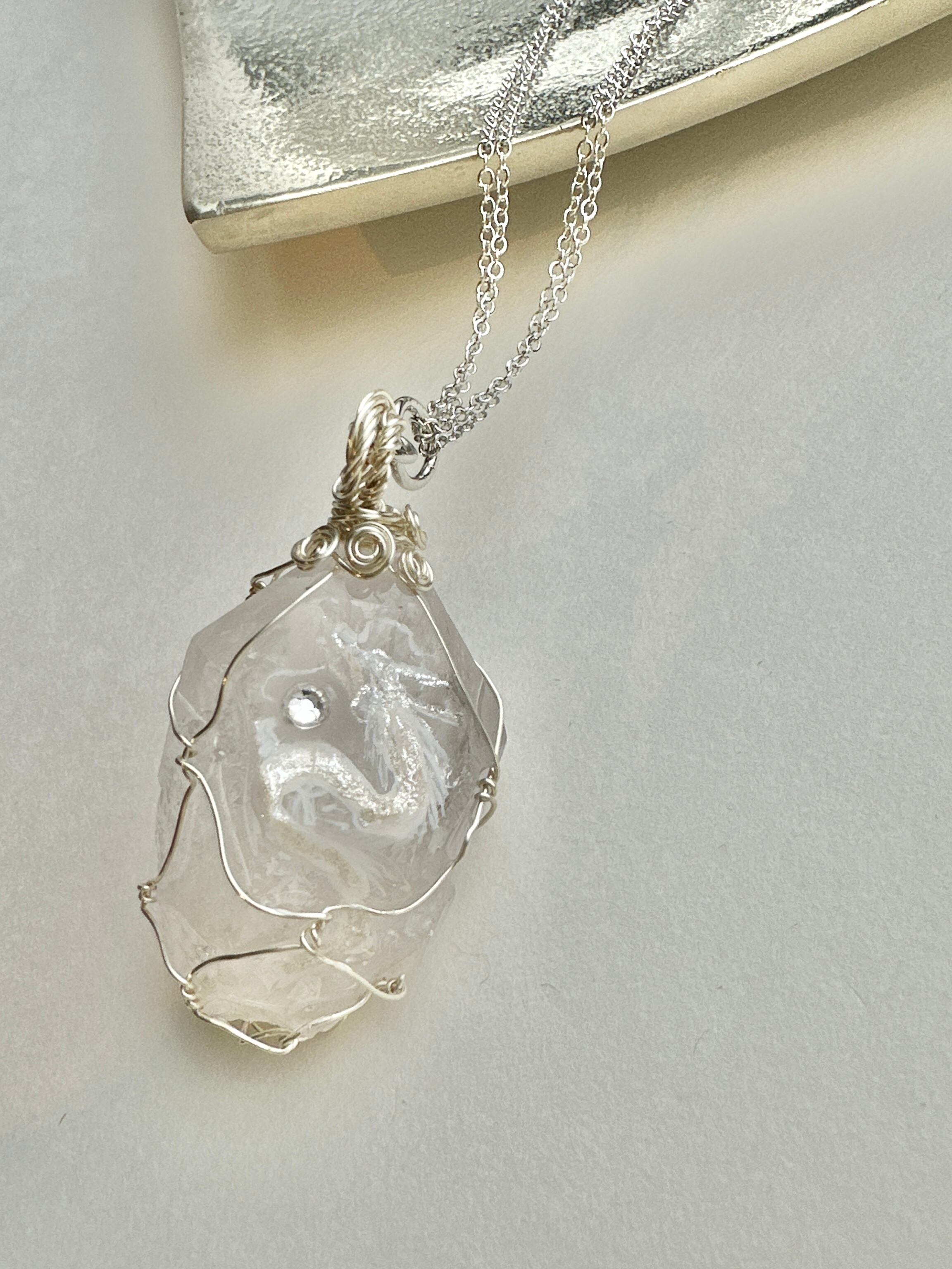 水晶原石 銀白龍ネックレス。