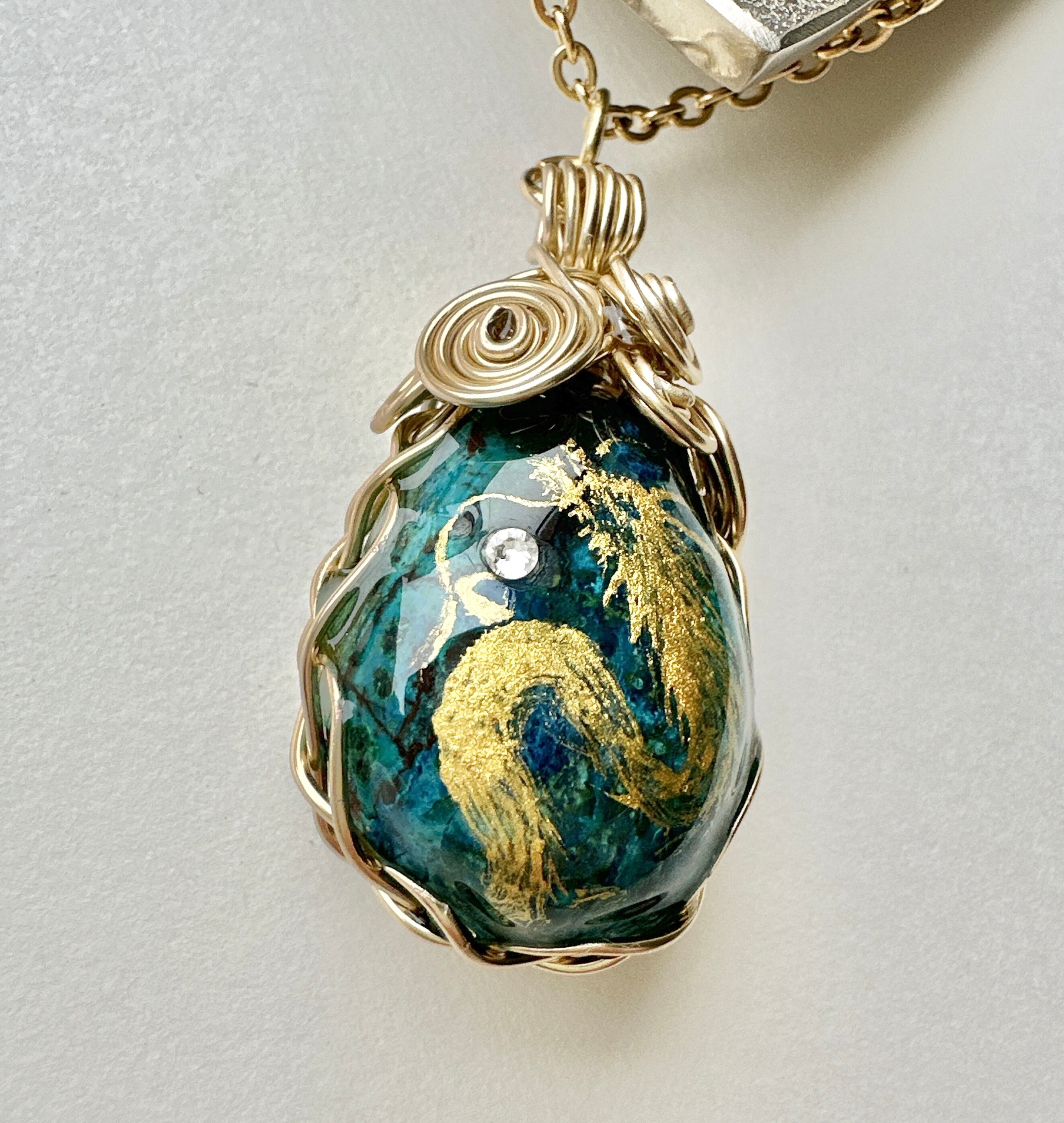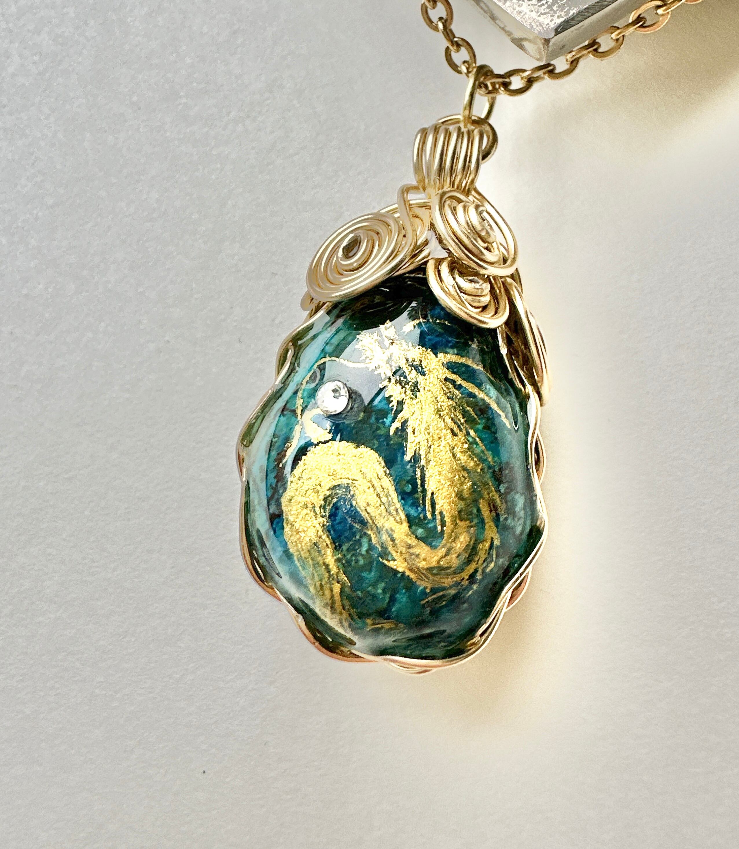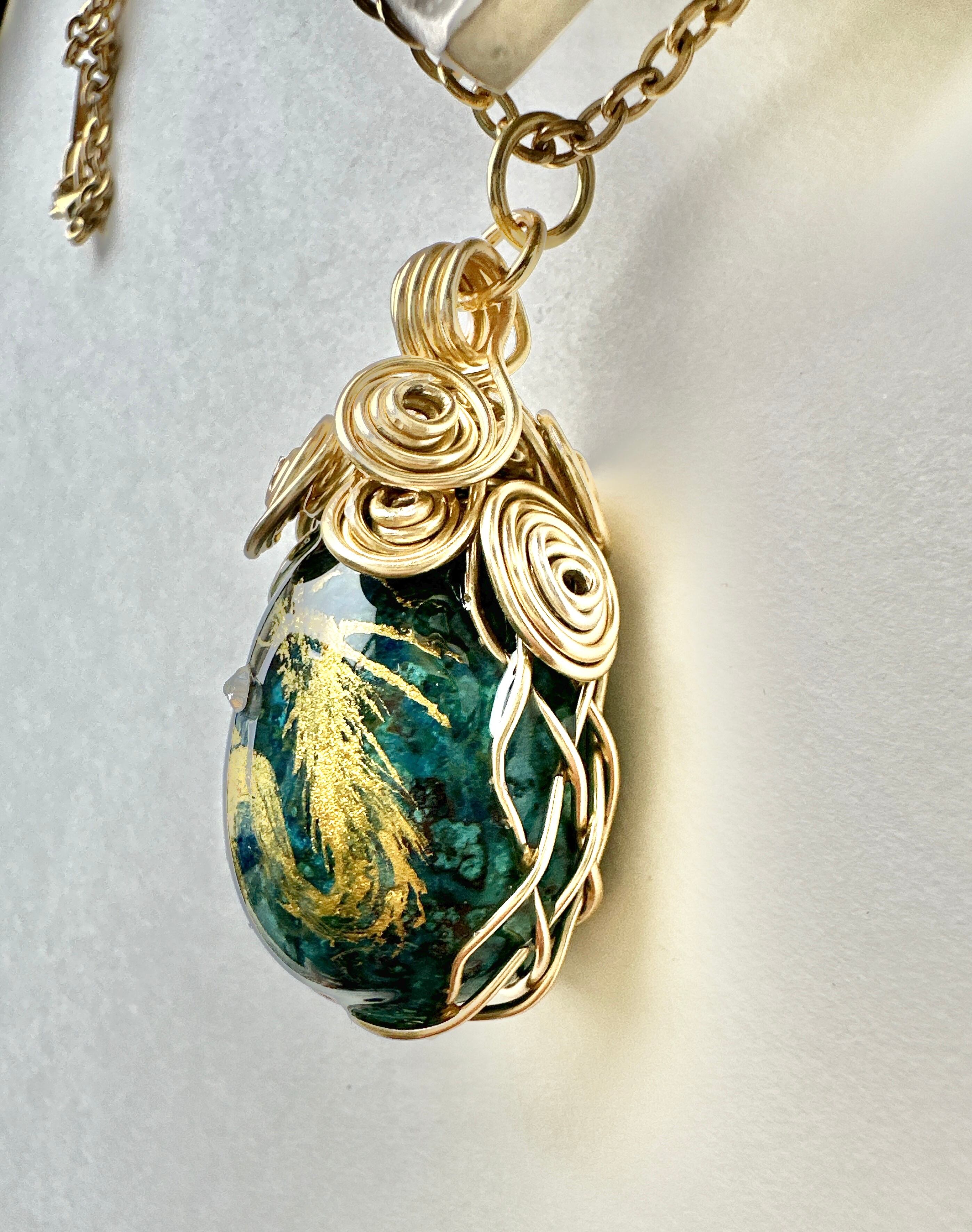 クリソコラ天然石 金龍ネックレス ワイヤーラッピング