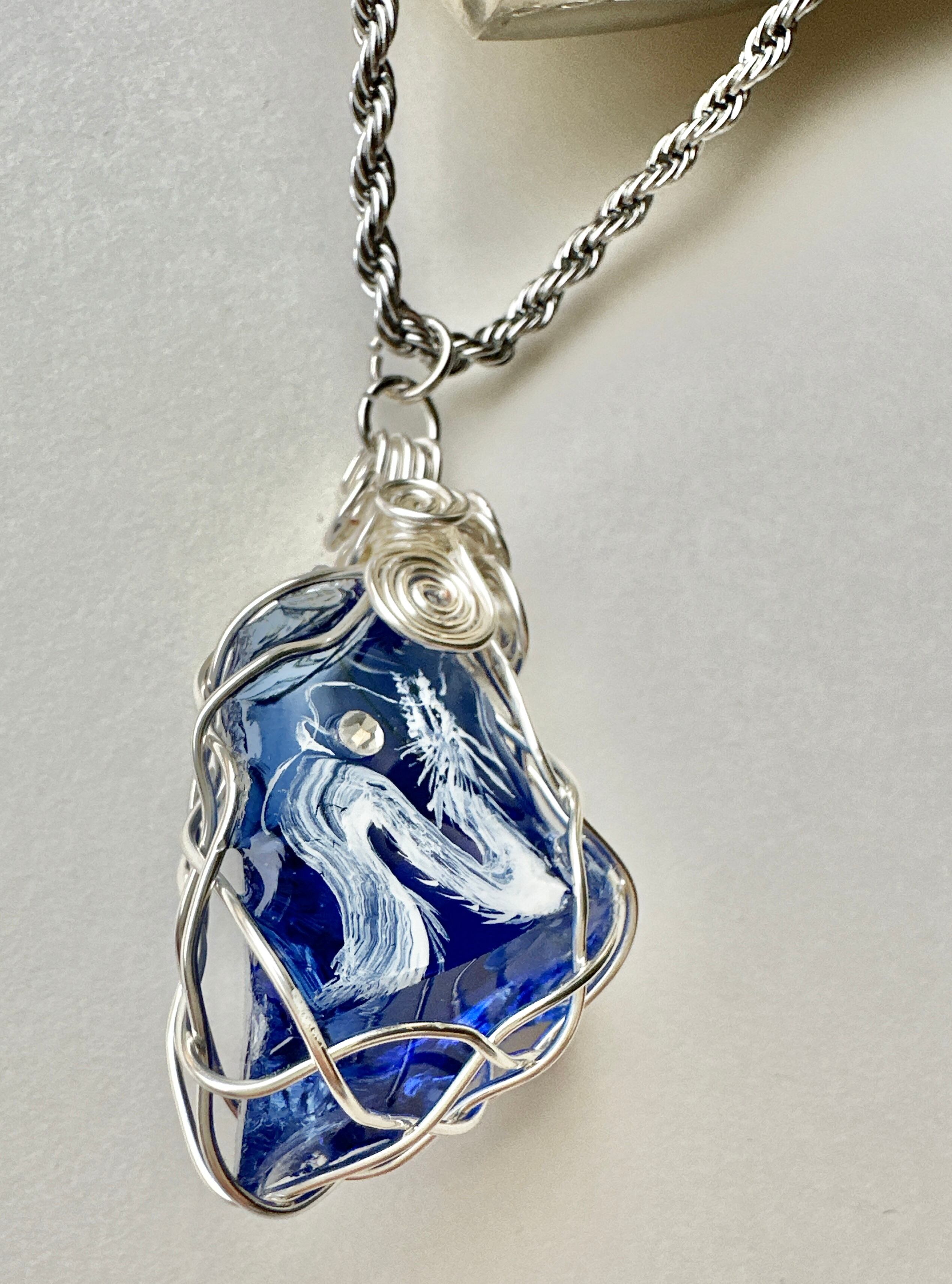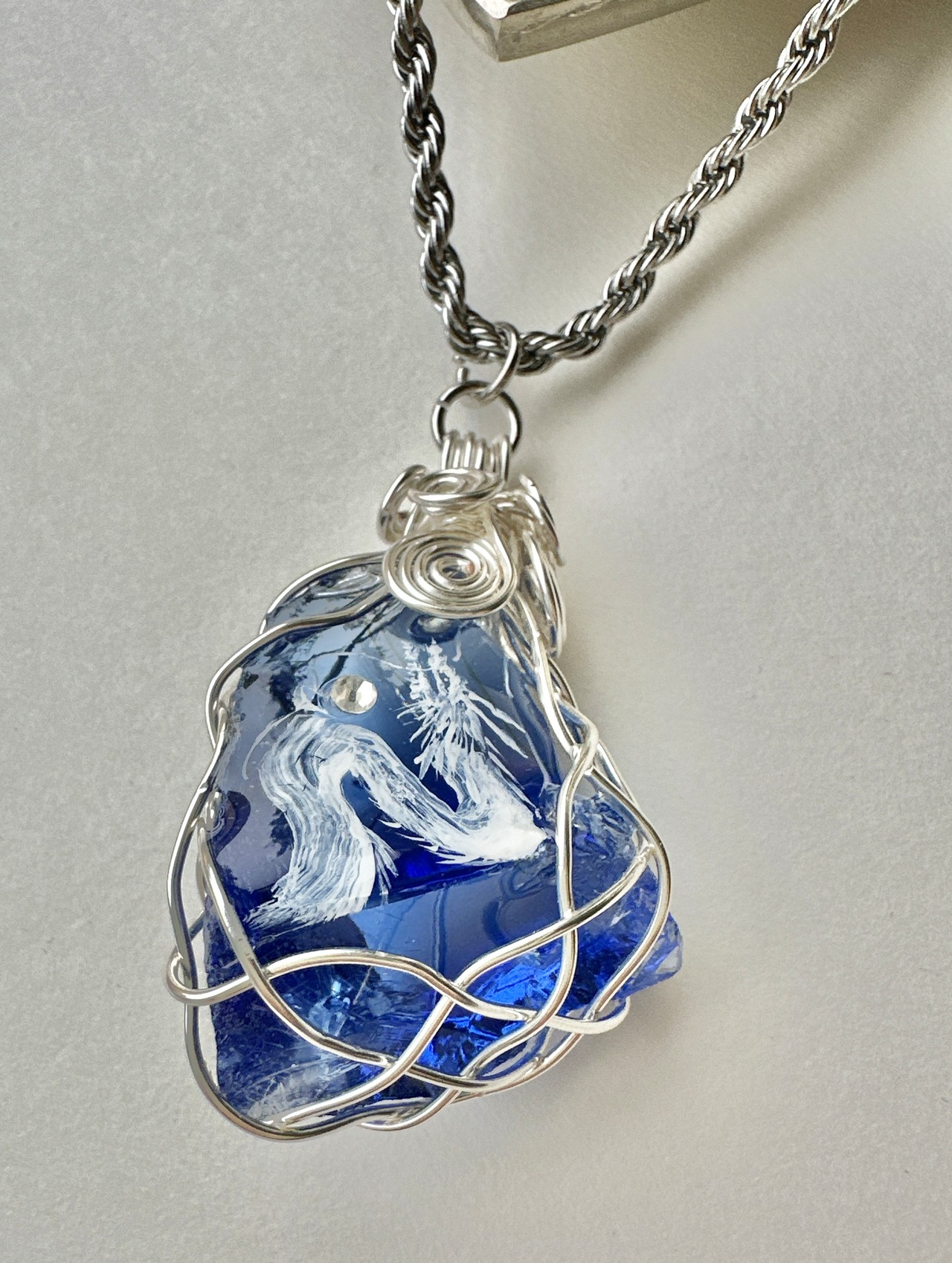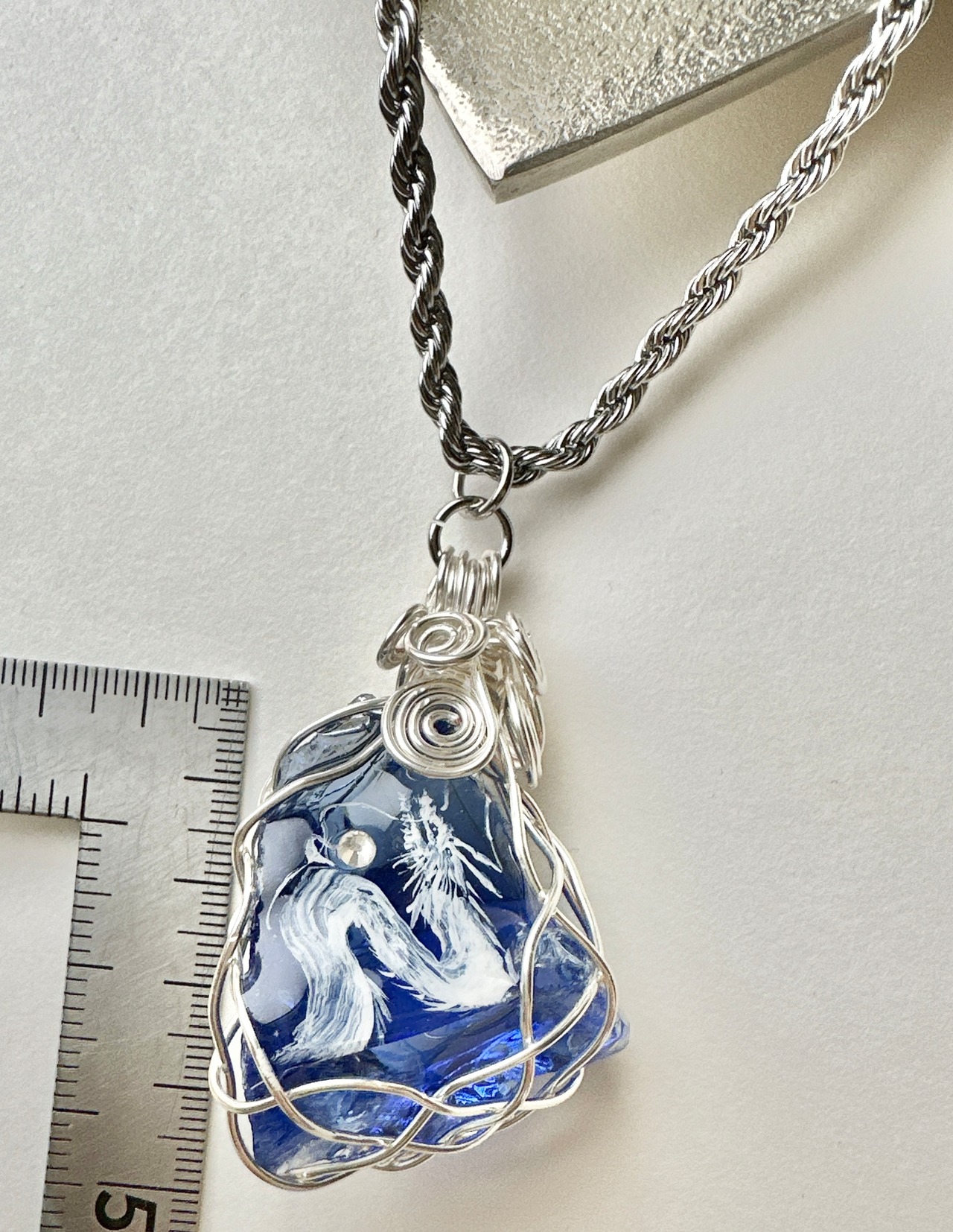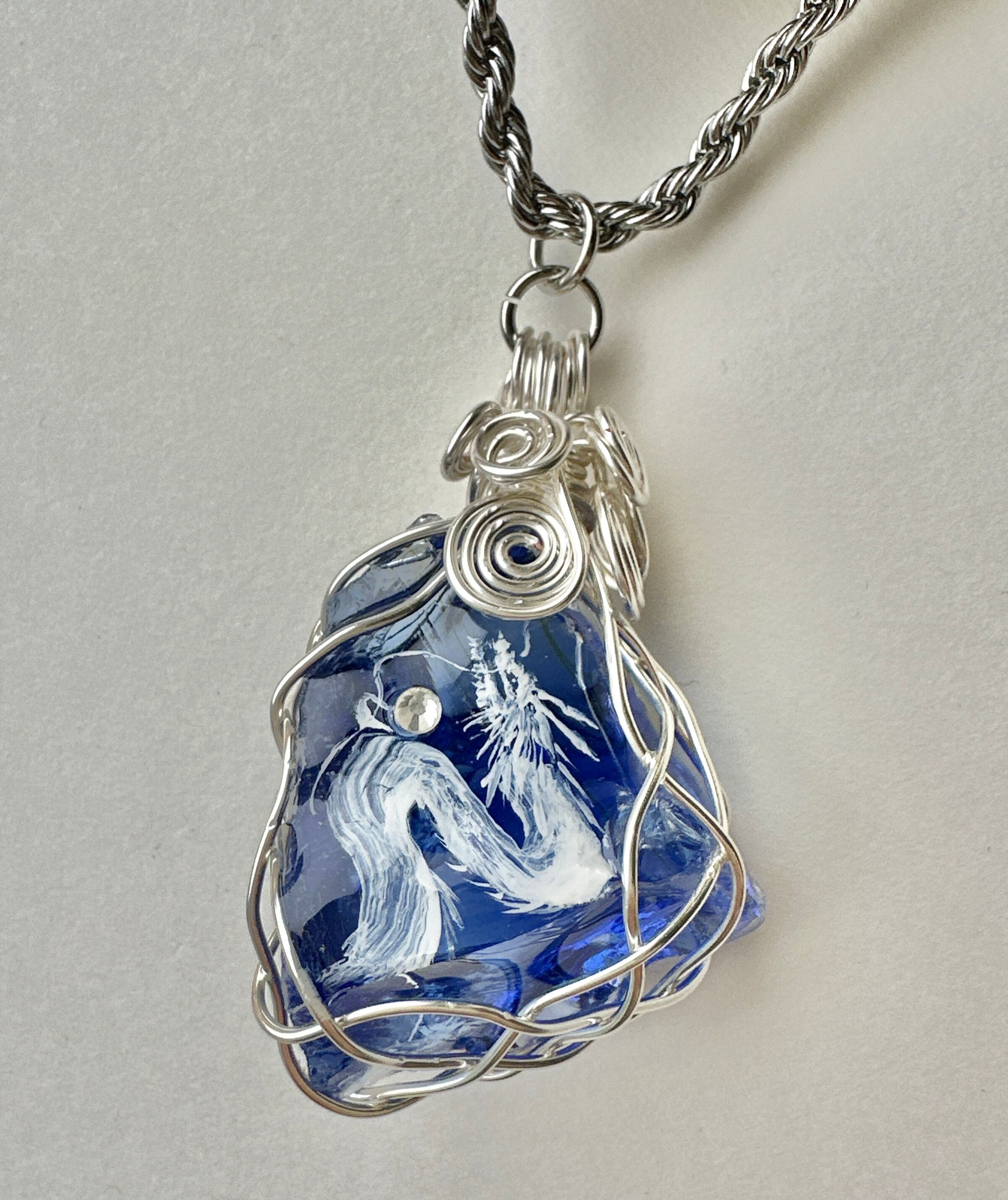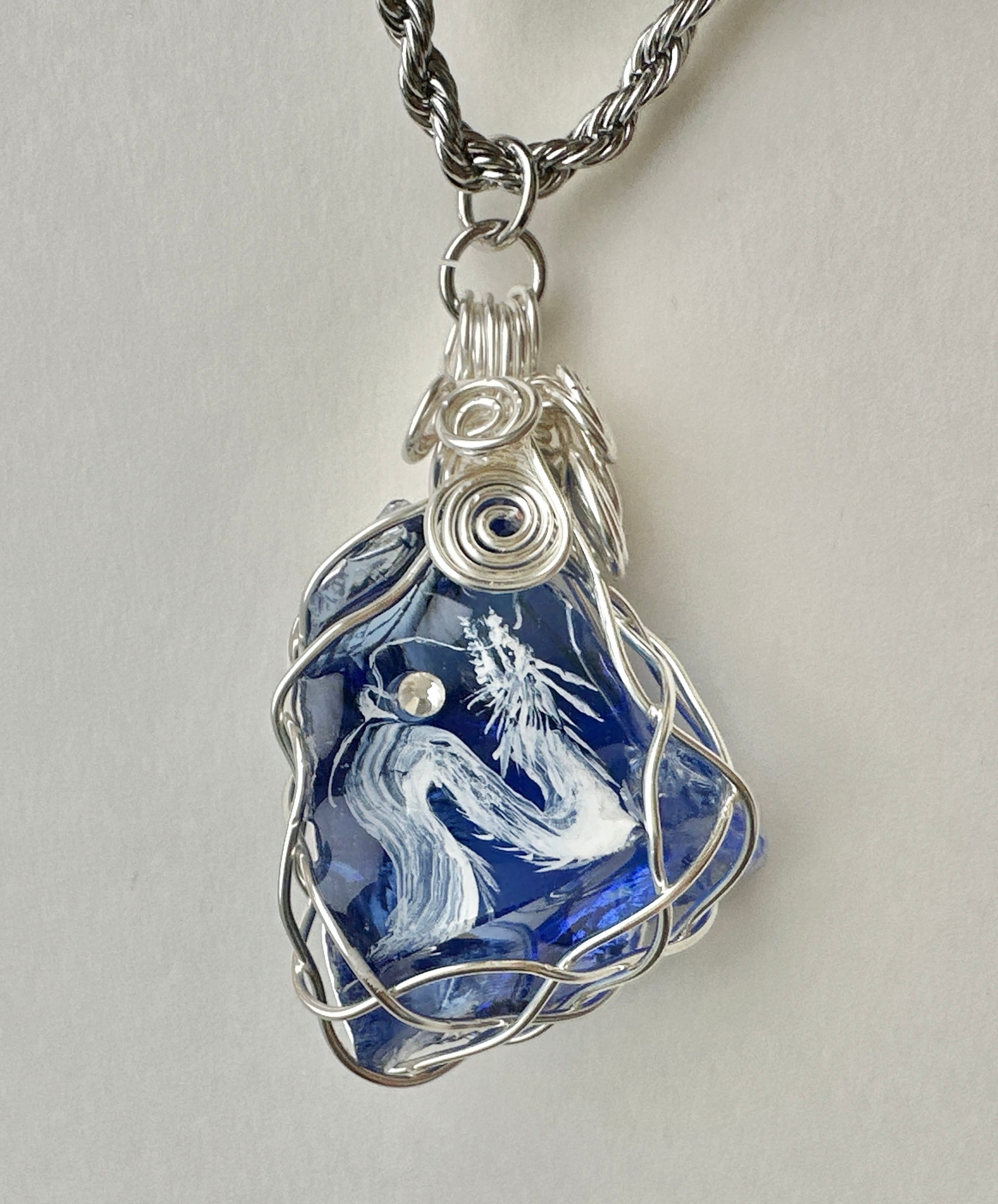 大 グラスオブシディアン 天然石 白龍ネックレス ワイヤーラッピング