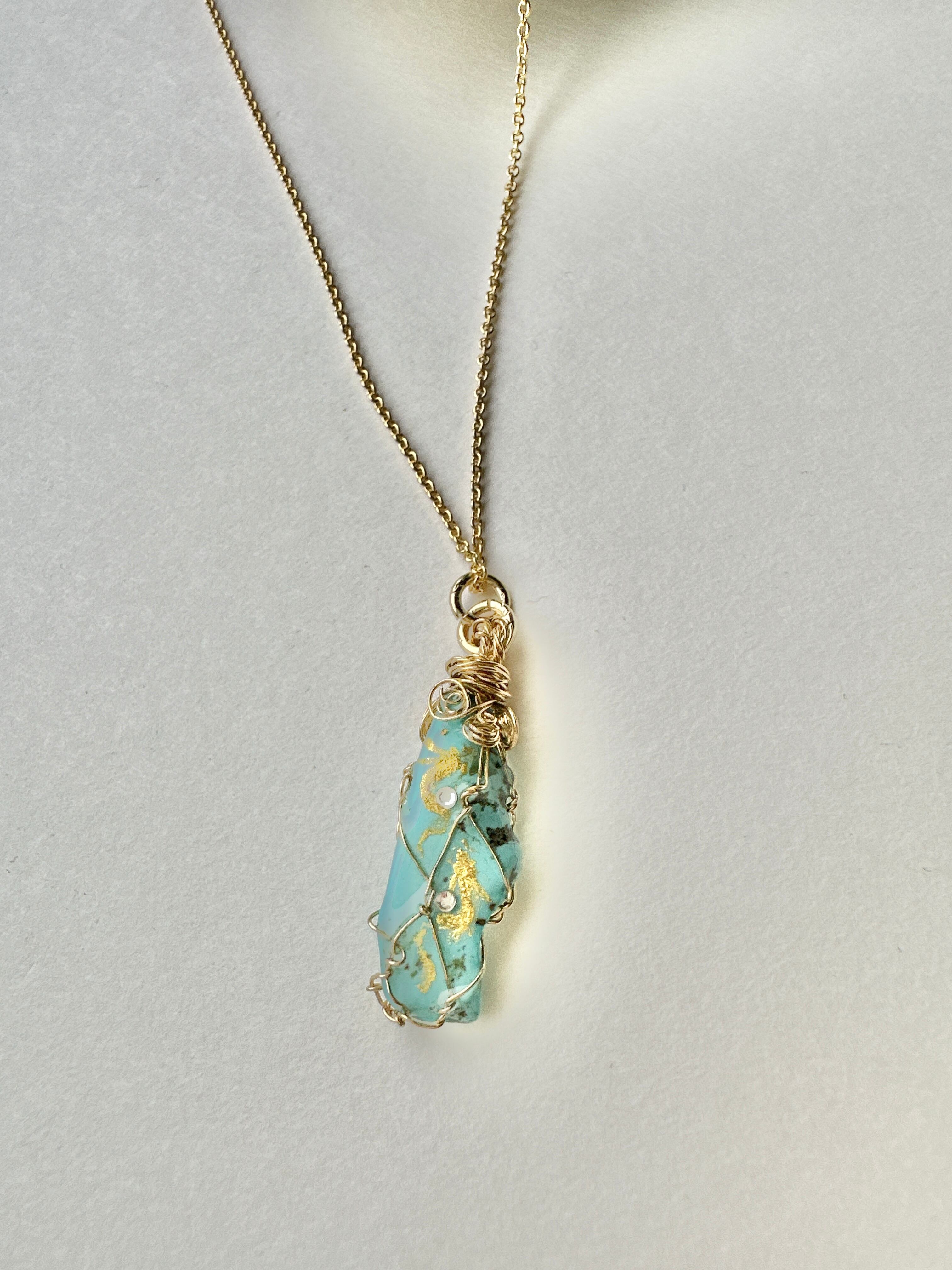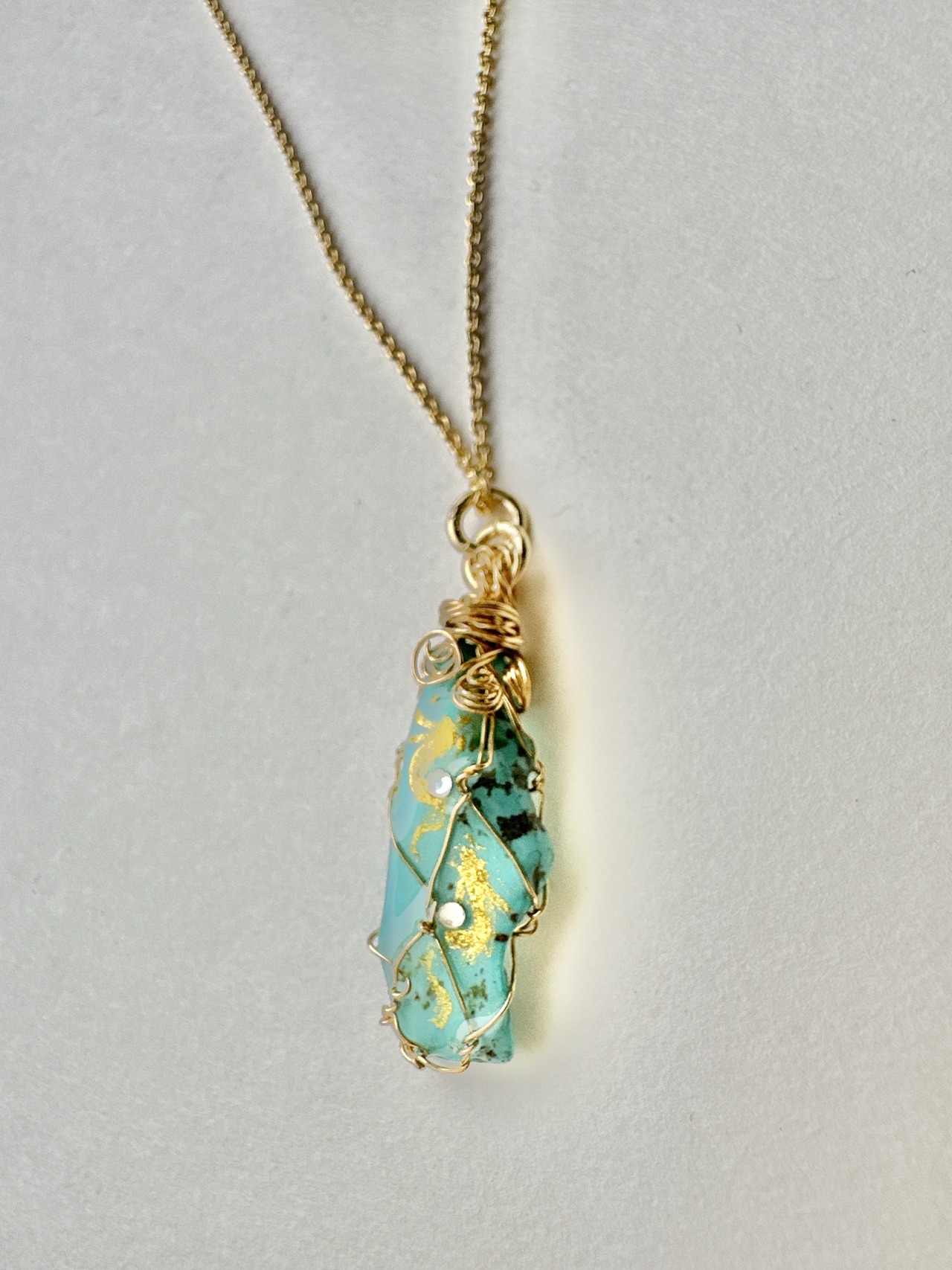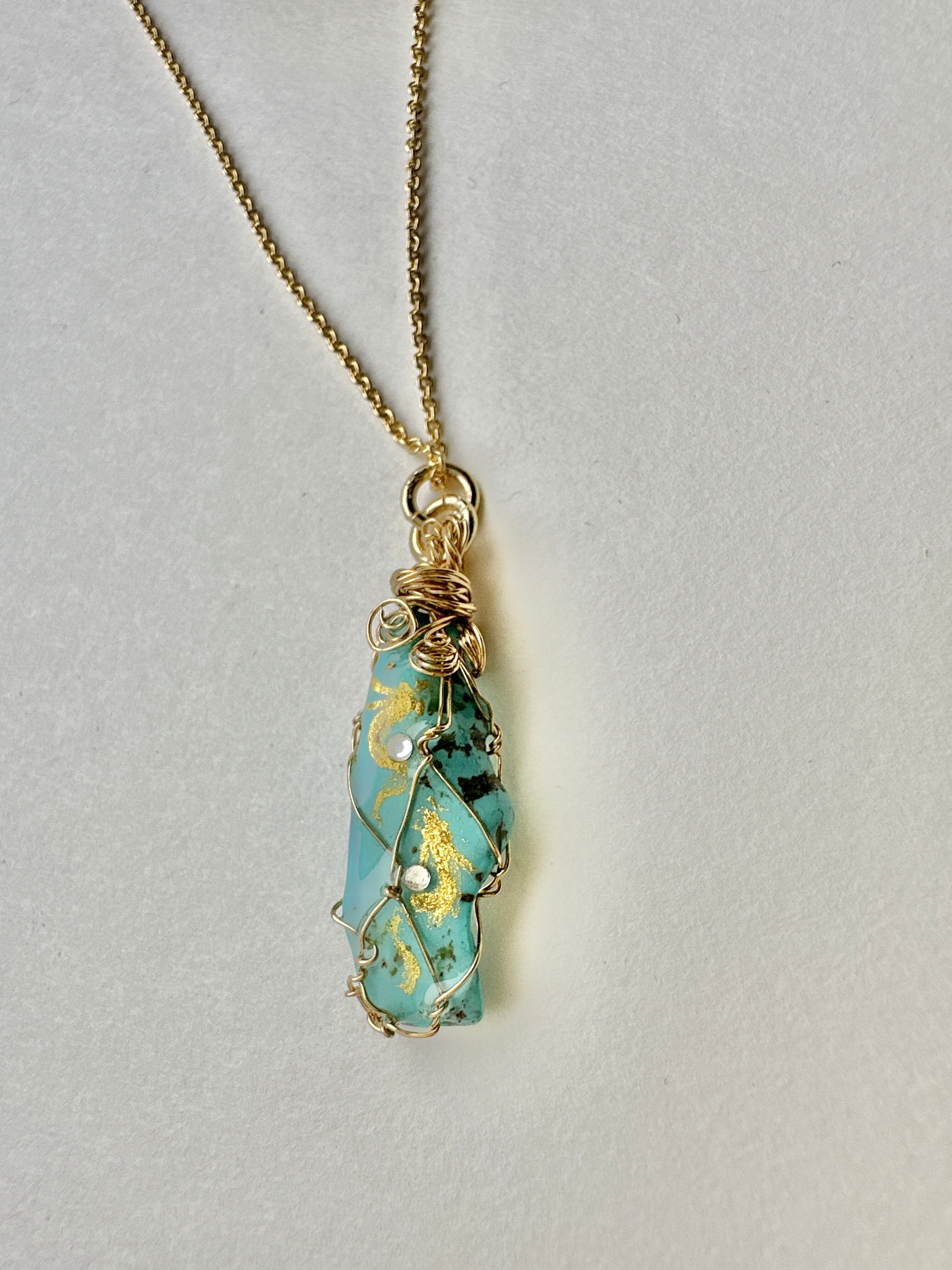 天然石 ターコイズ 金龍双龍ネックレス。