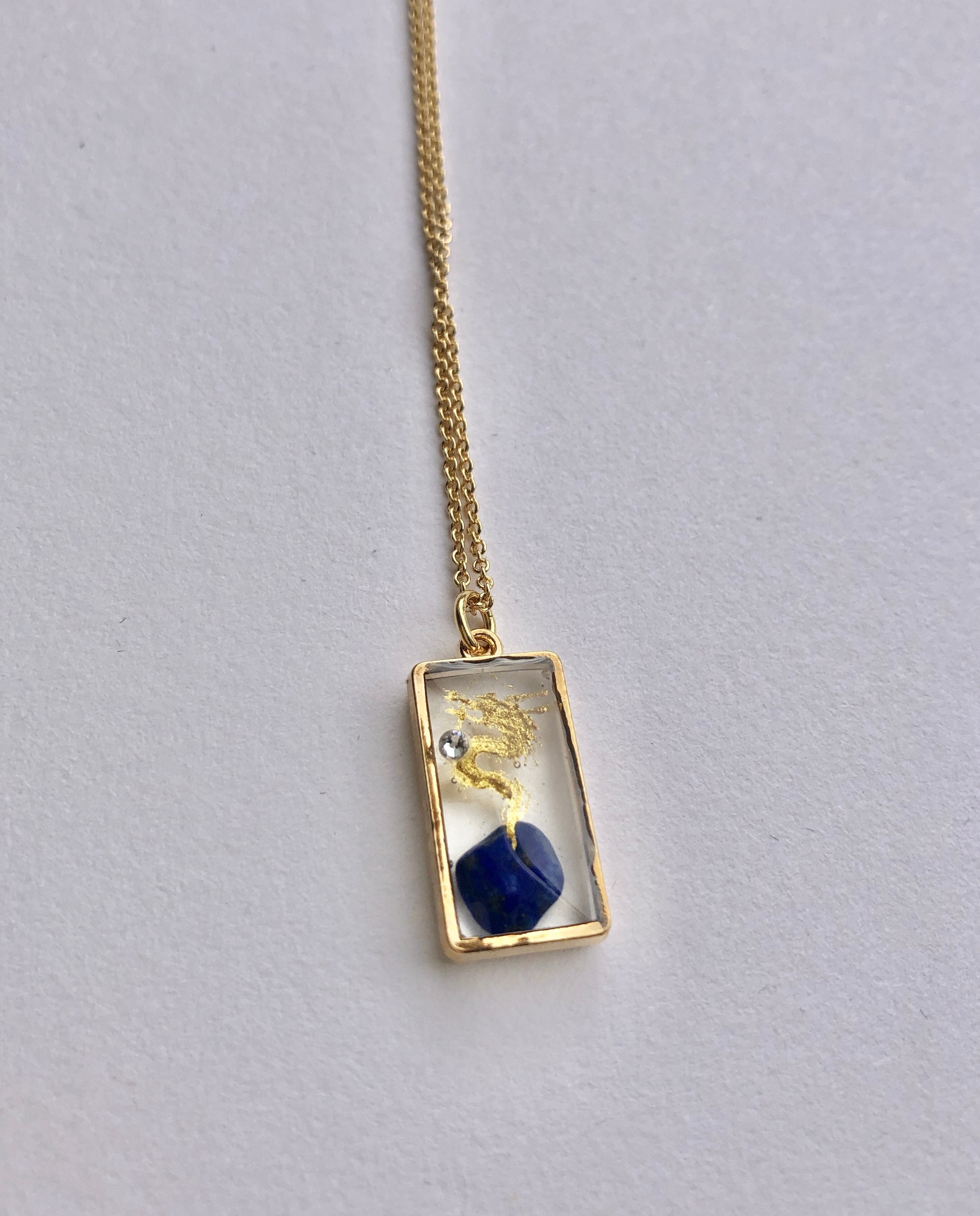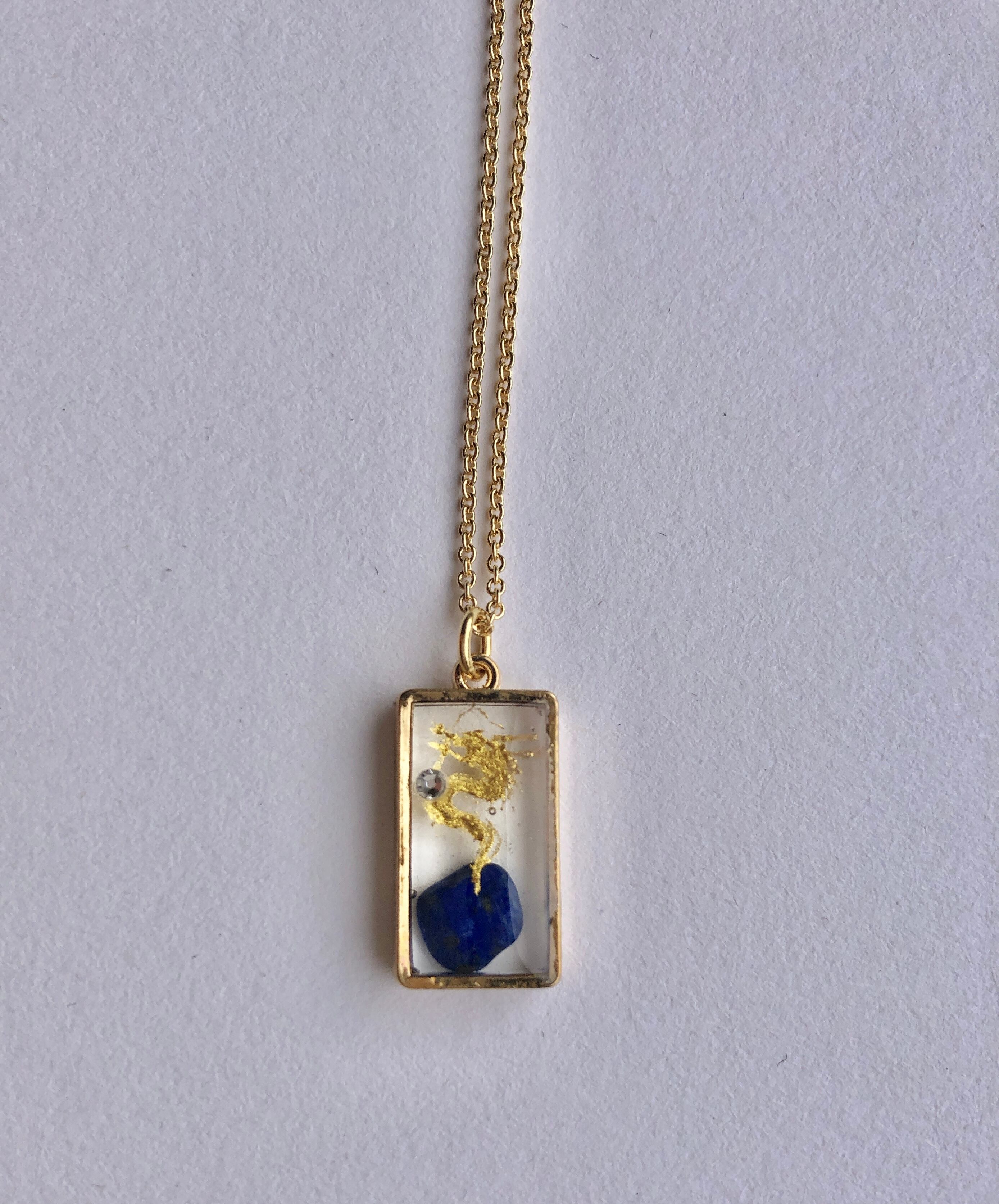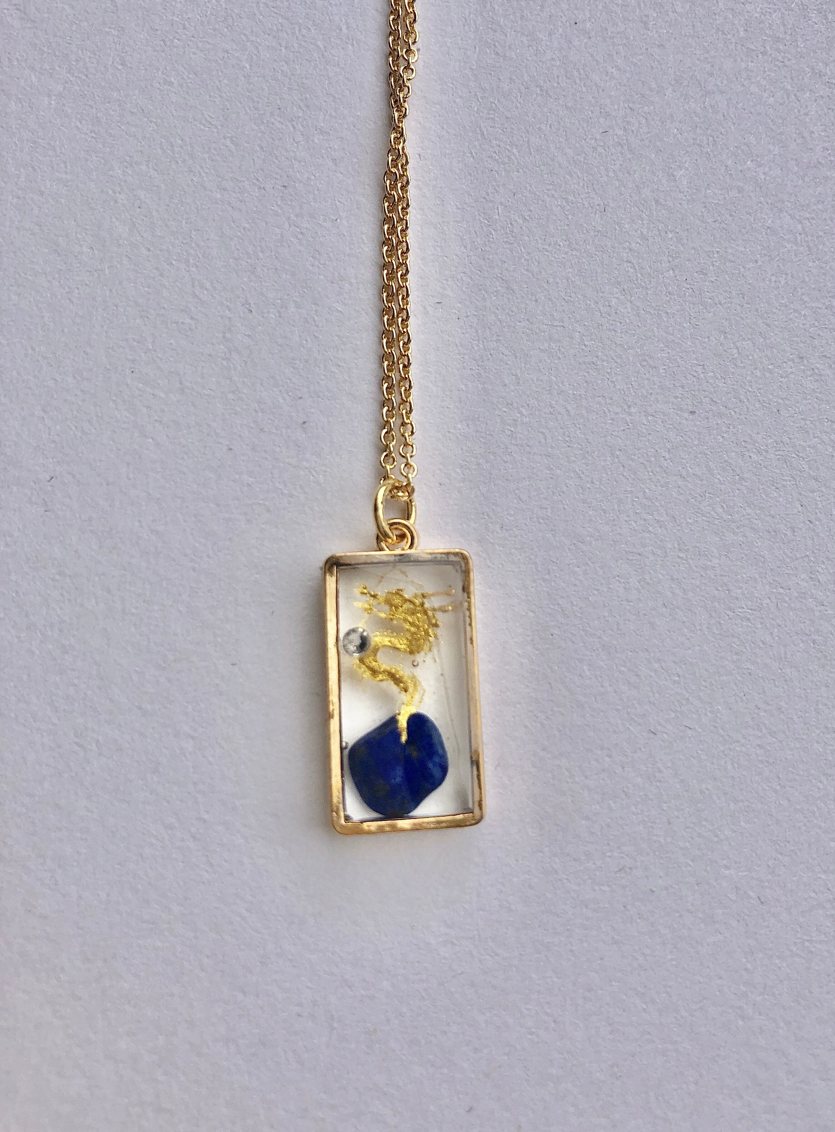 ラピスラズリを入れたレジンに描かれた金龍ネックレス。