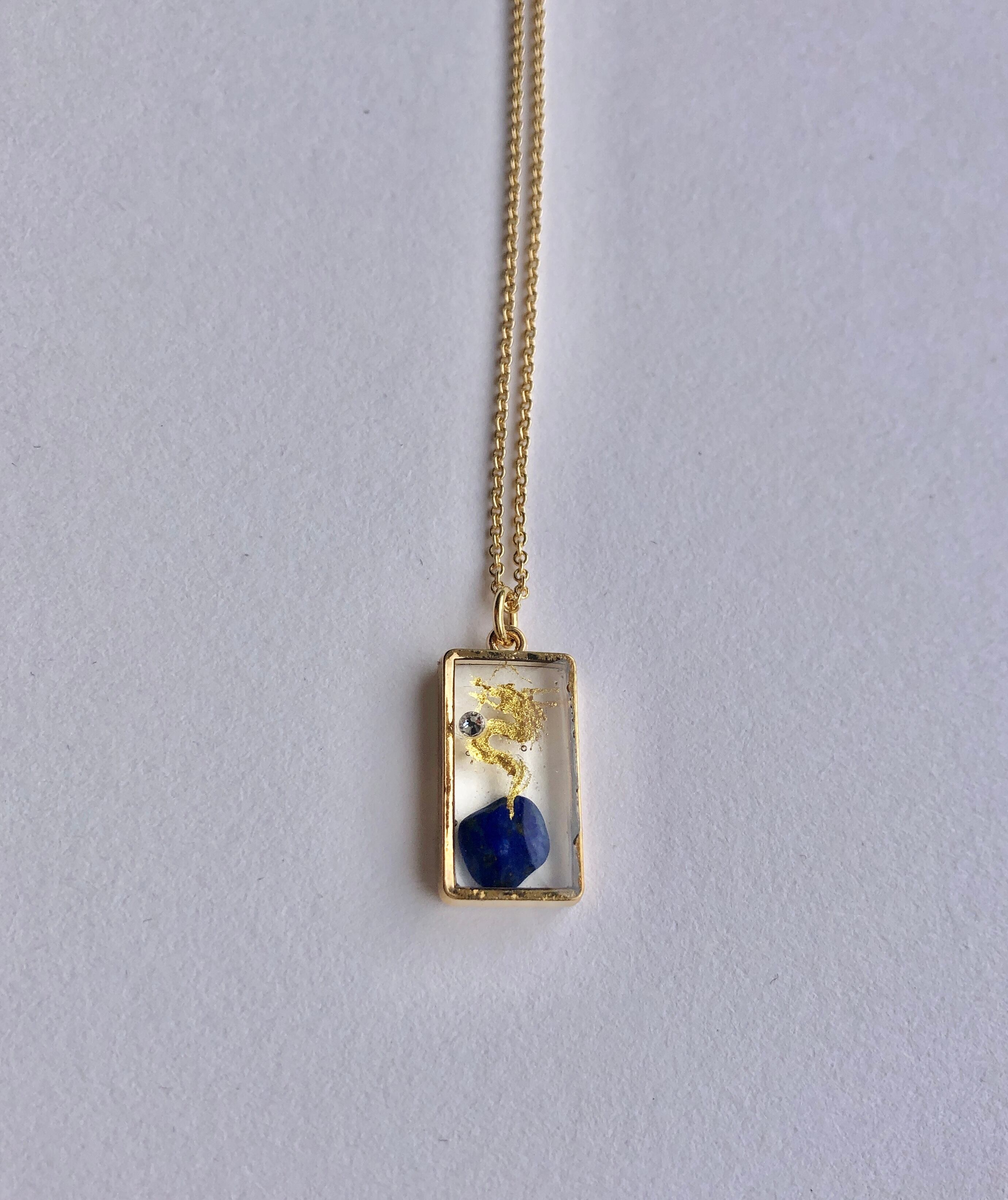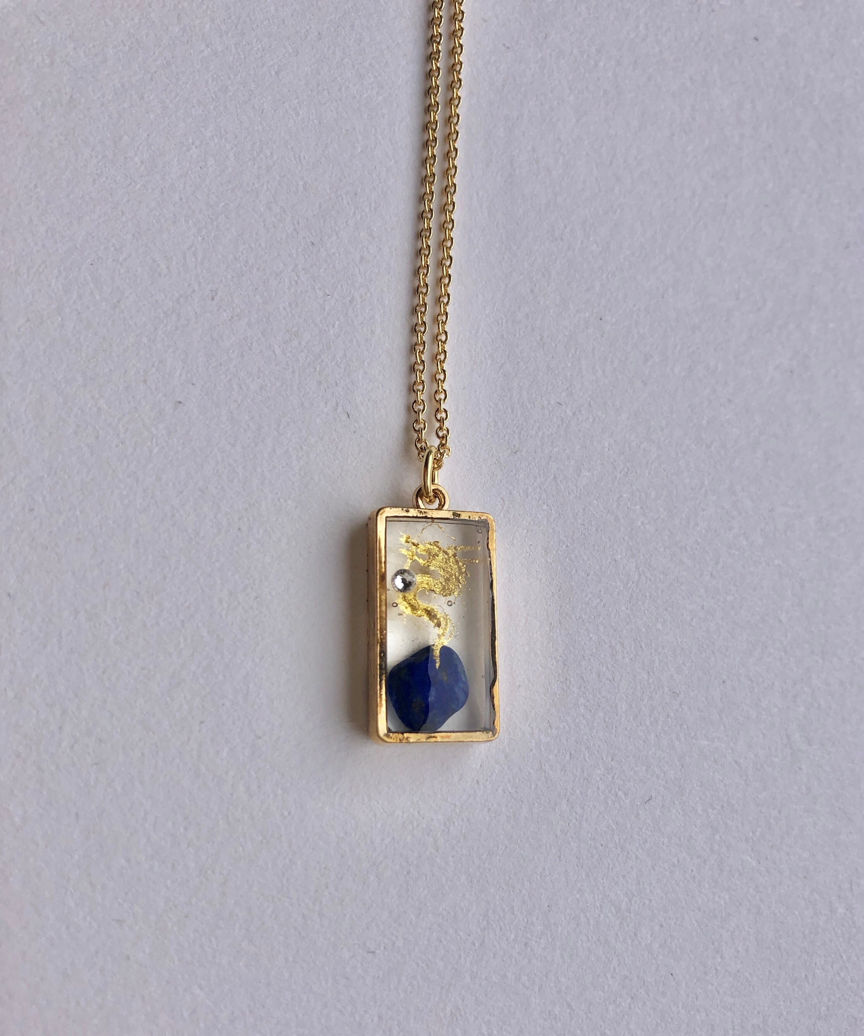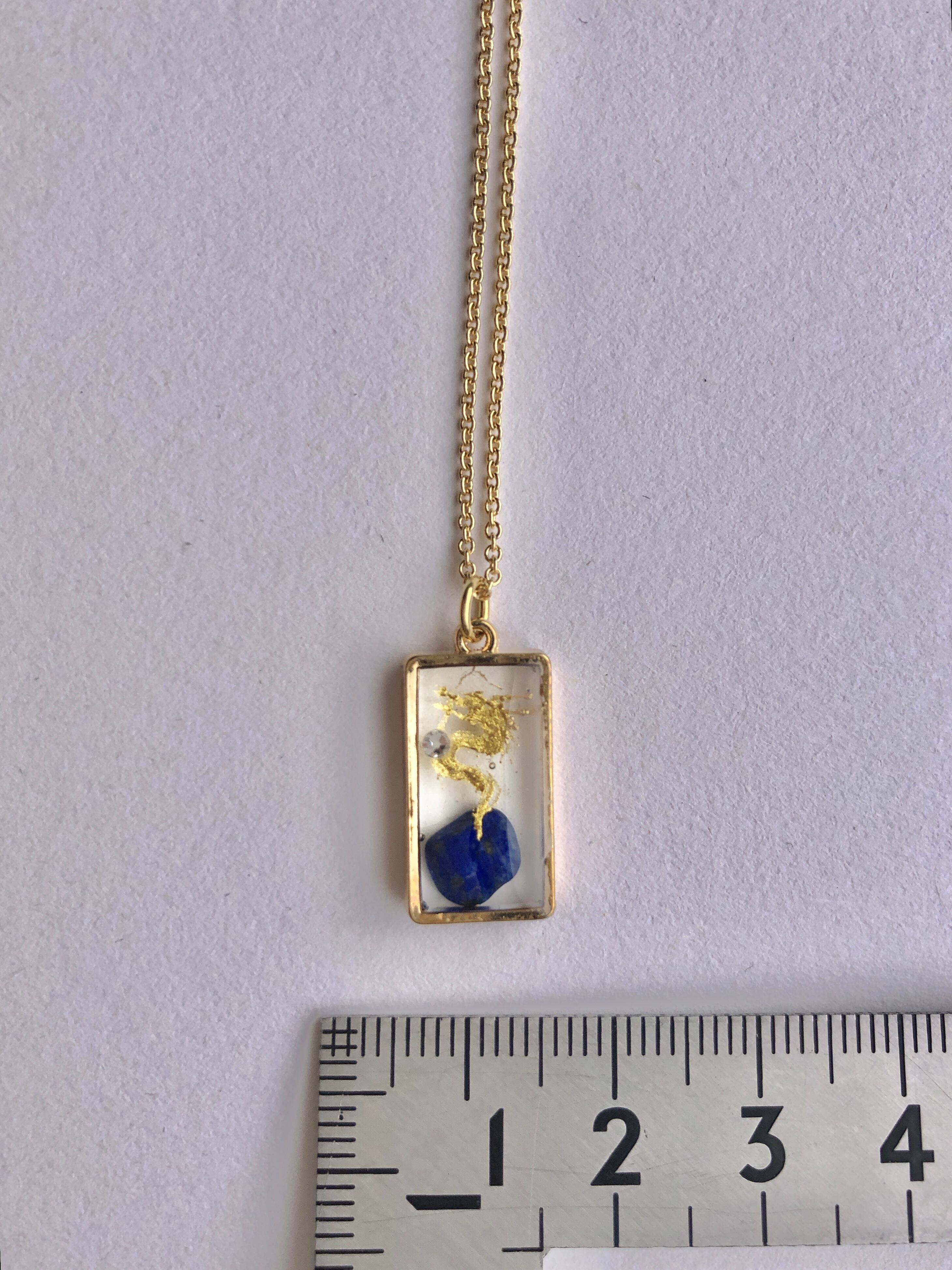ラピスラズリを入れたレジンに描かれた金龍ネックレス。