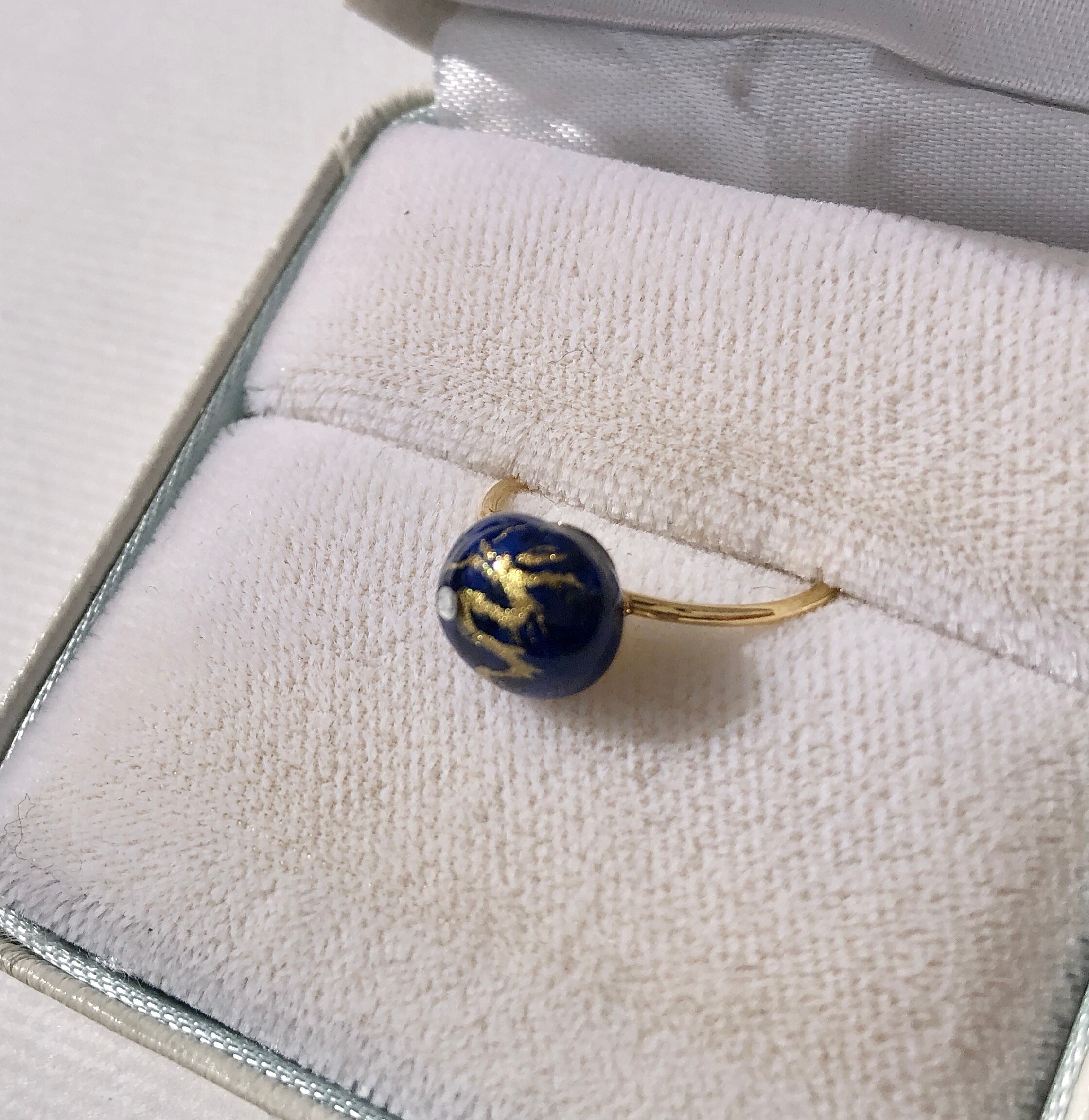 美しい紺のドーム型のラピスラズリ に描かれた小さな鳳凰。