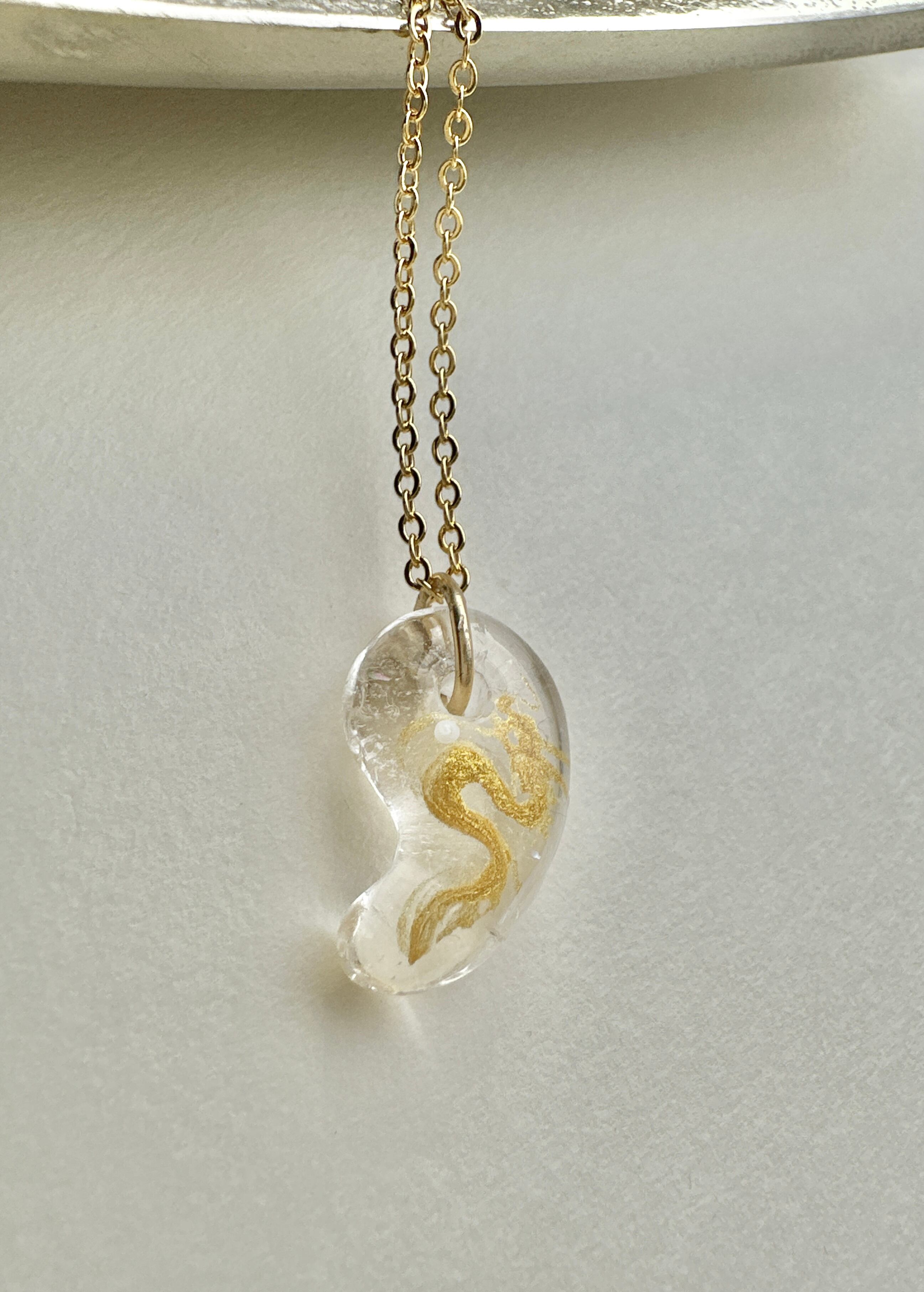 水晶の勾玉に描かれた金龍。