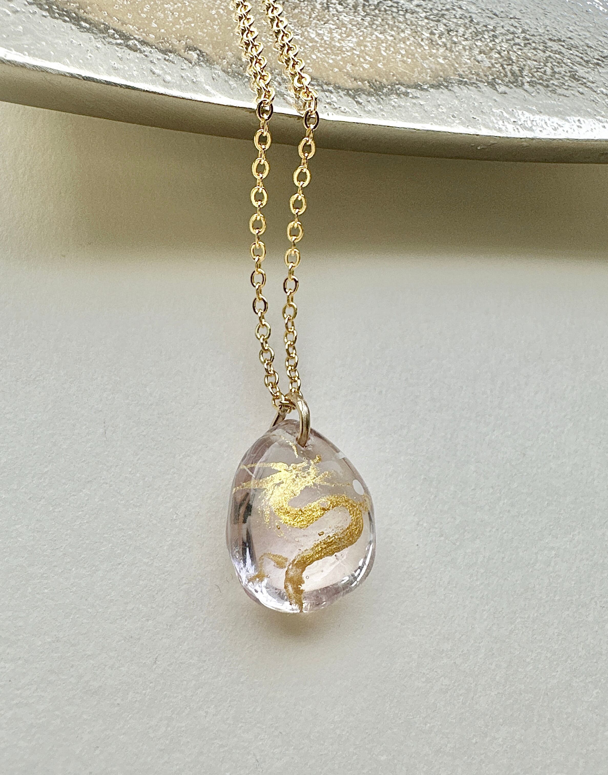 雫型のアメジストに描かれた金の龍神