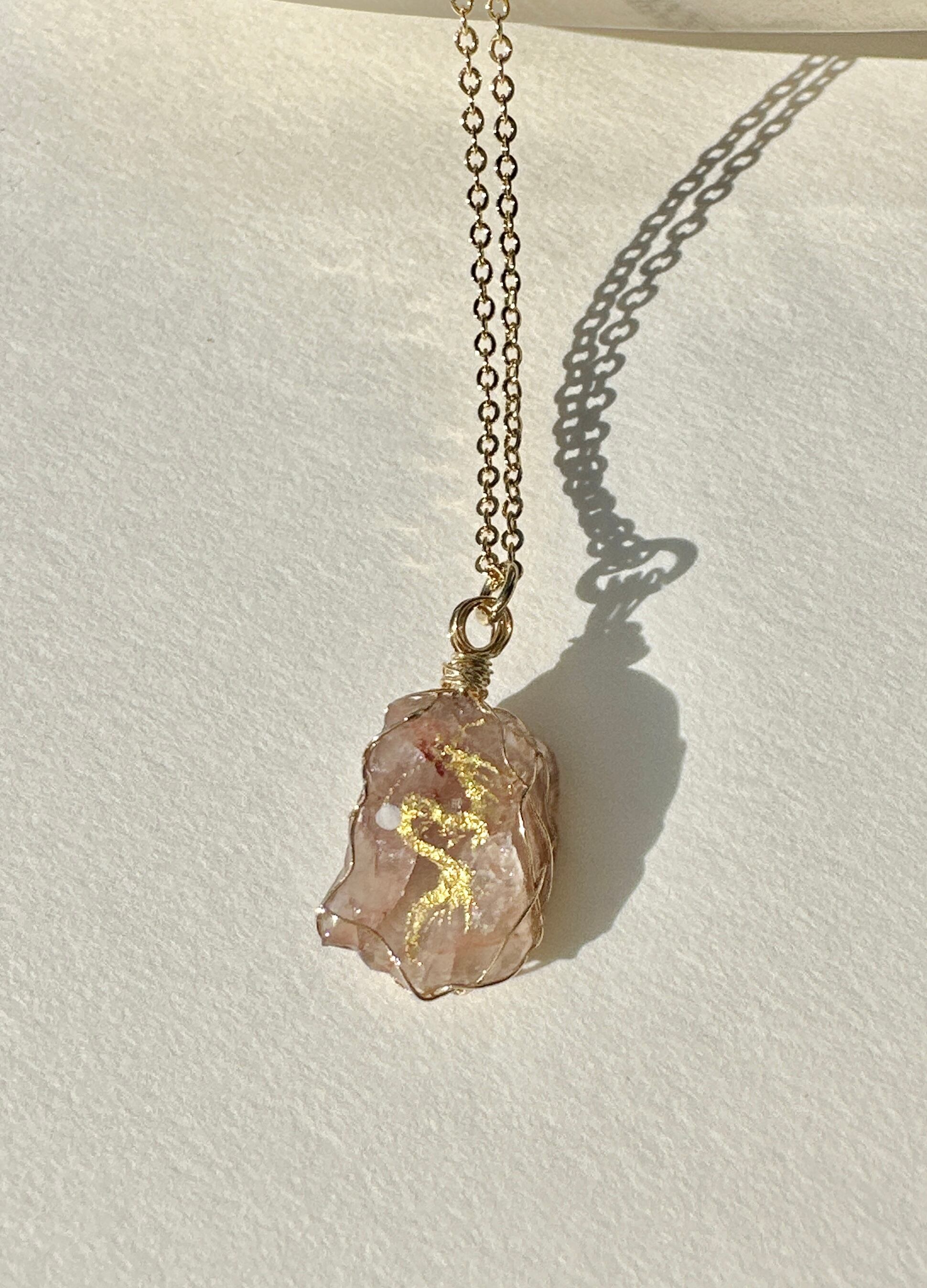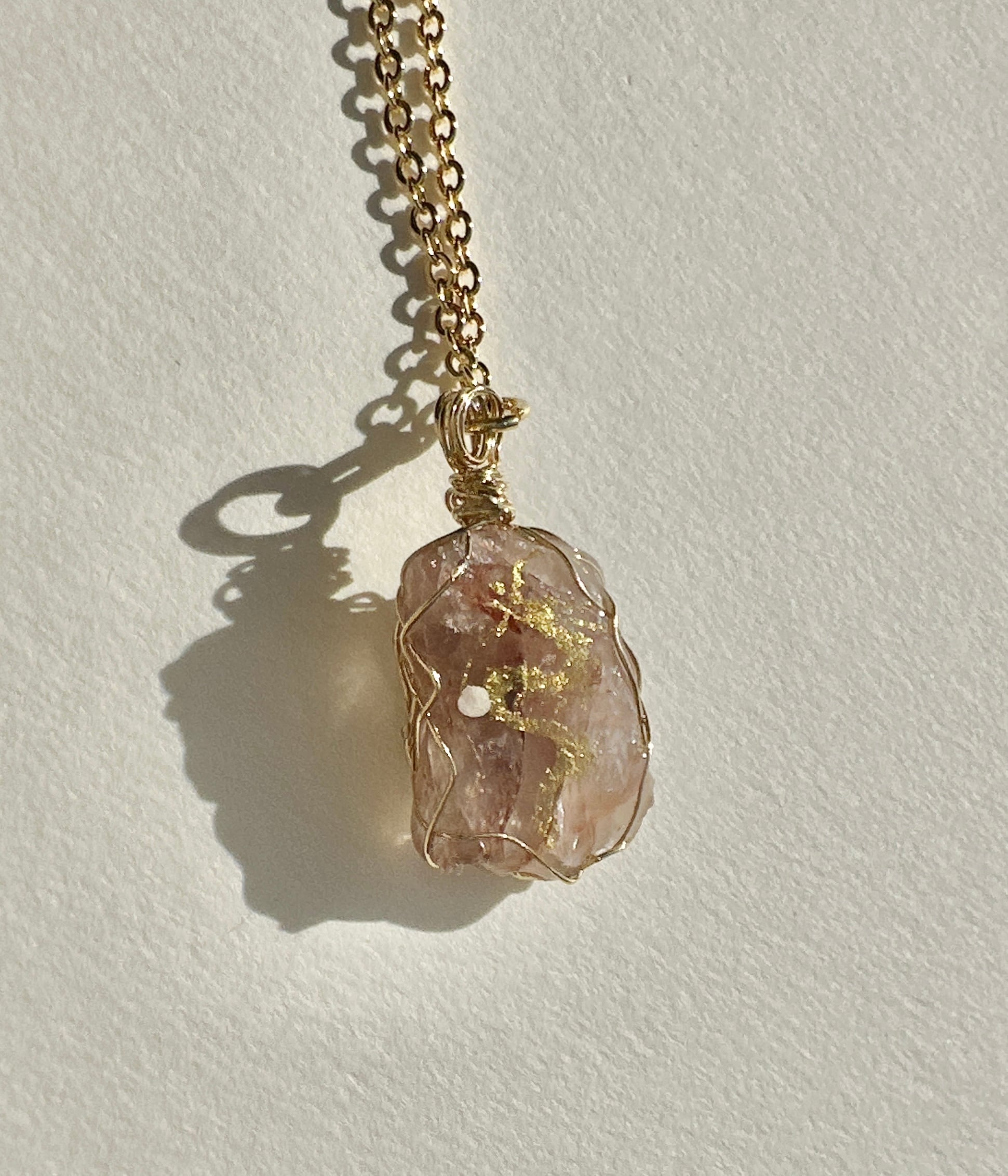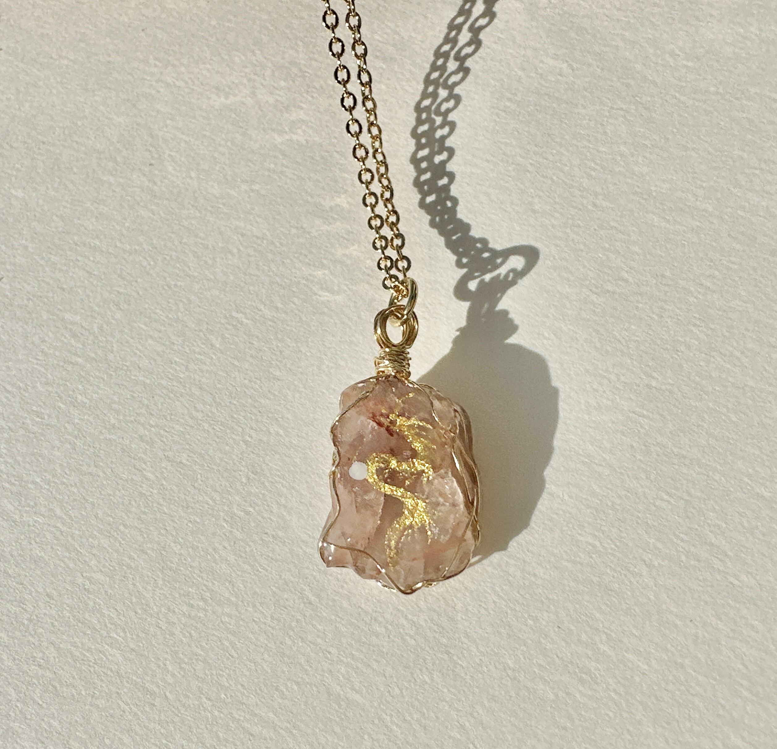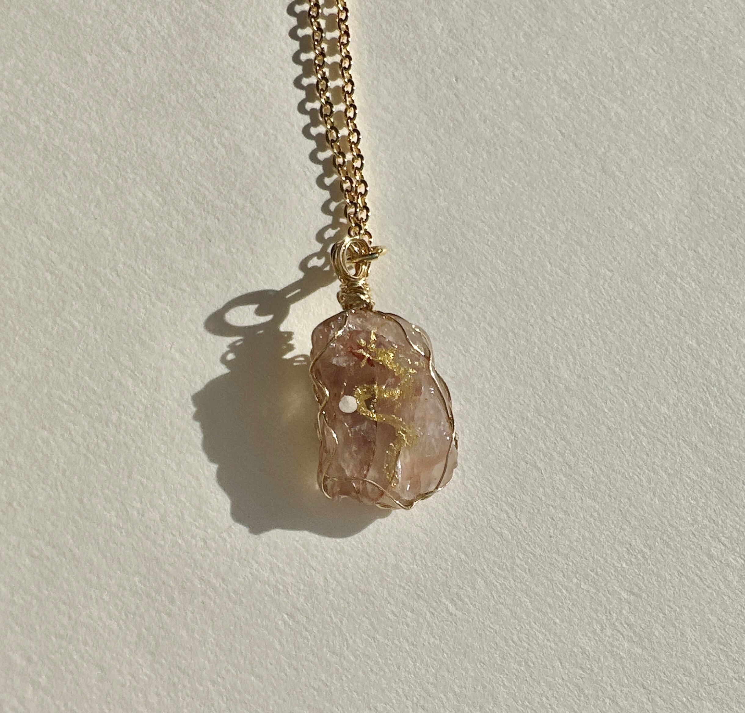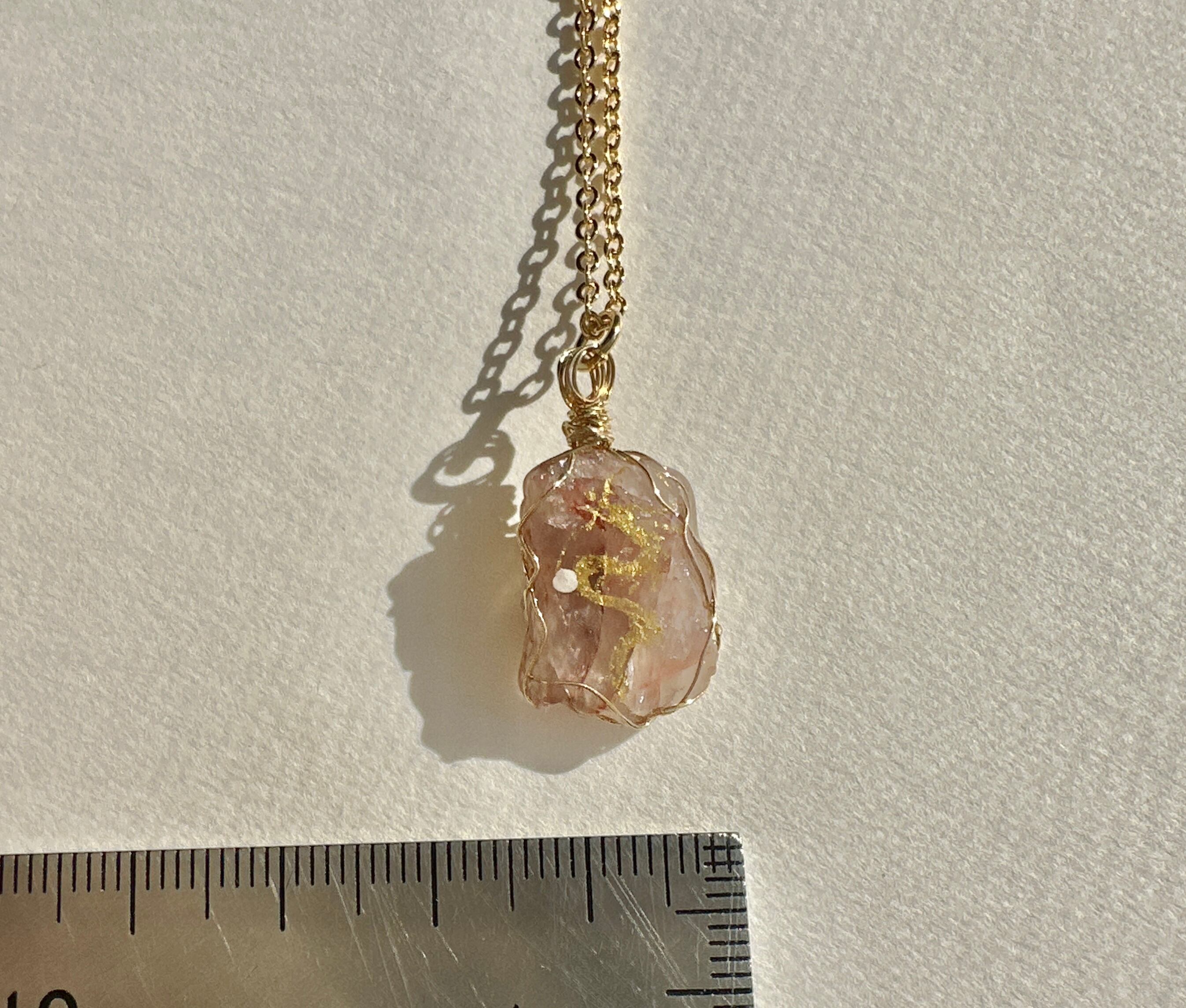 フィンランド鉱石(ピンク) 金龍 ワイヤーラッピングネックレス