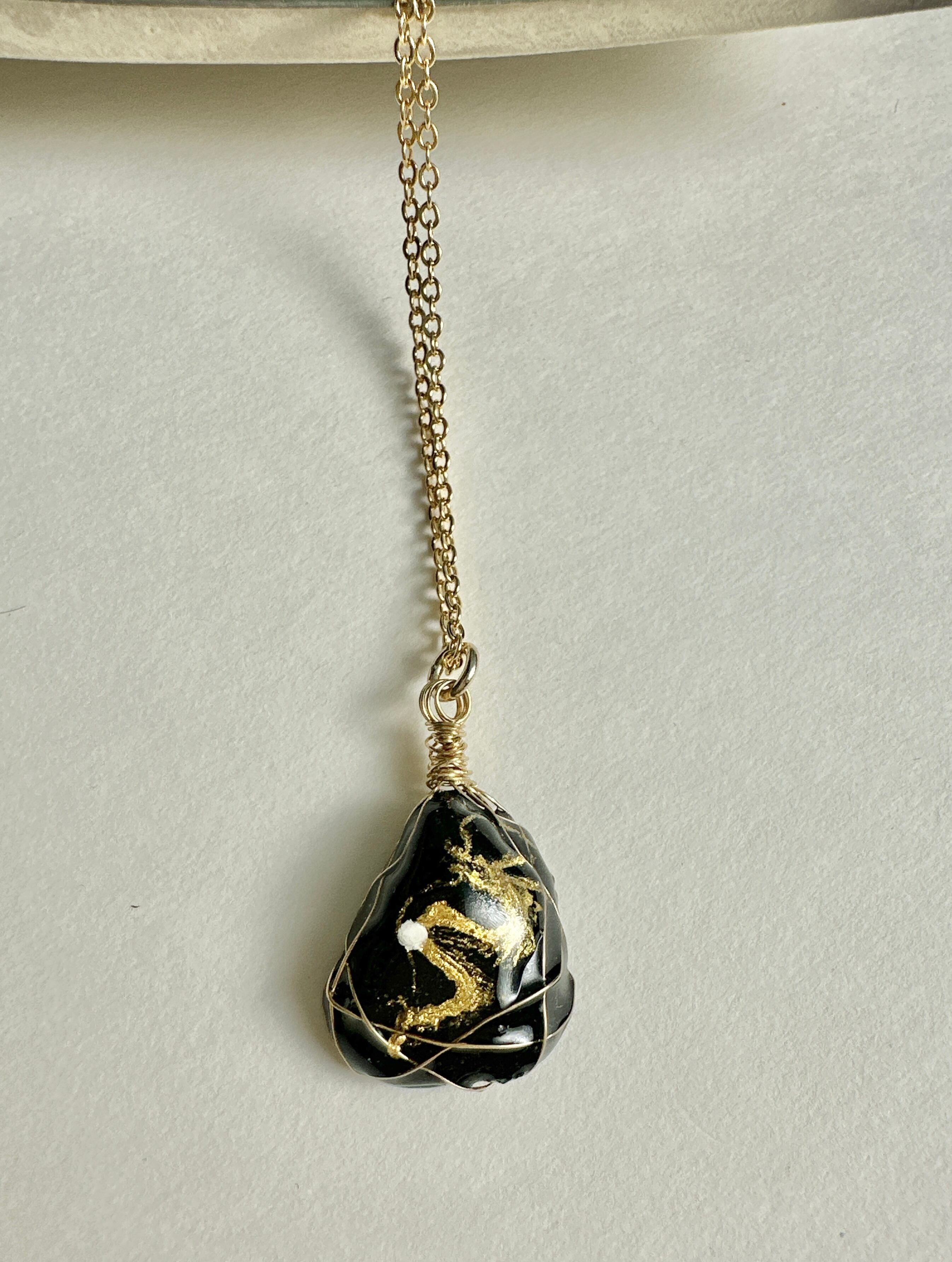 フィンランド鉱石(黒) 金龍 ワイヤーラッピングネックレス