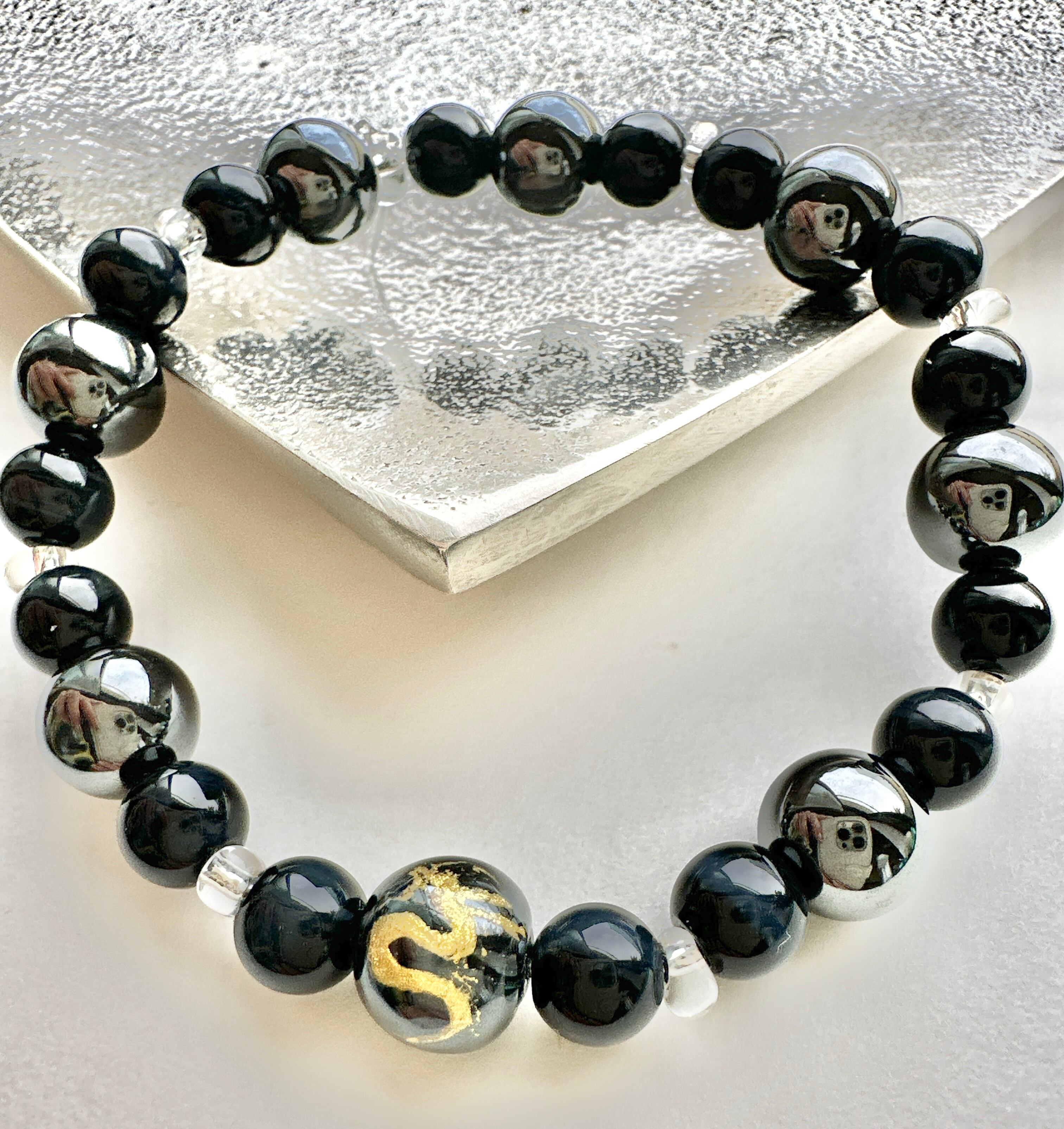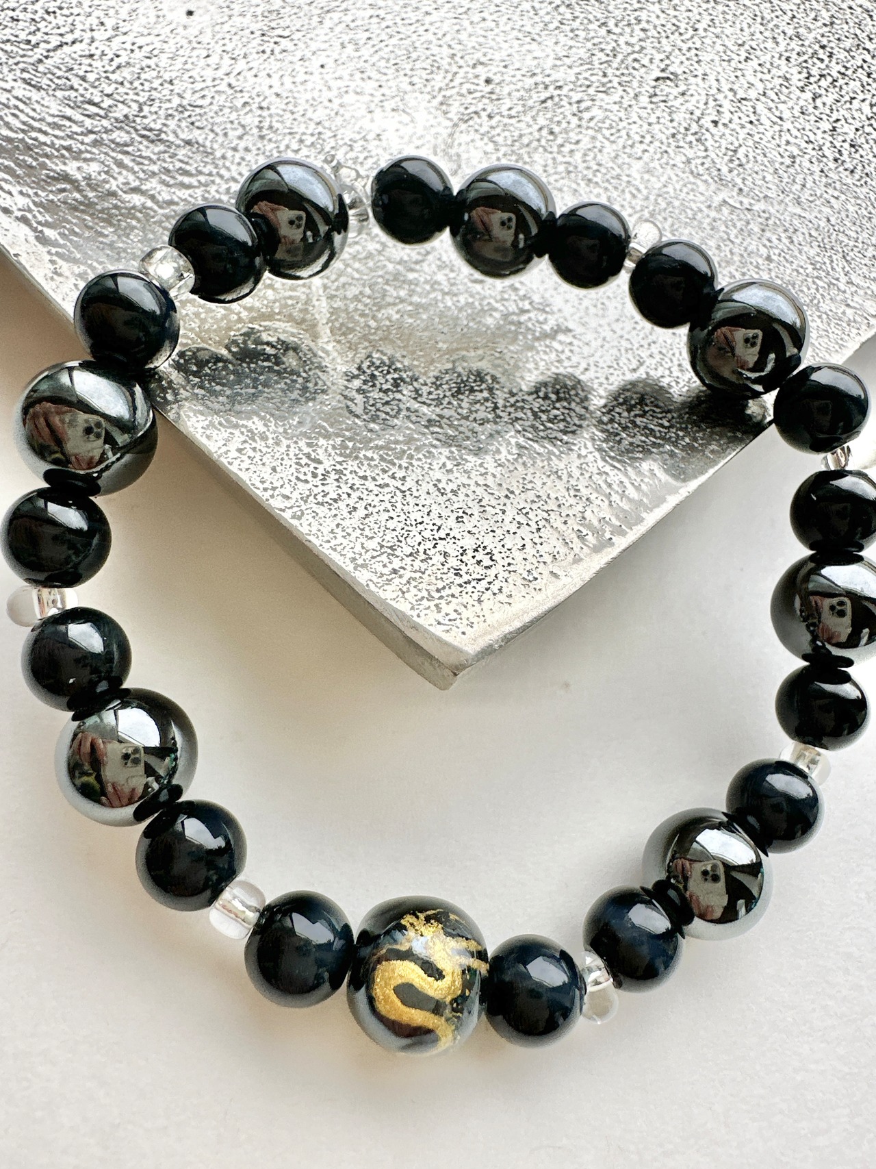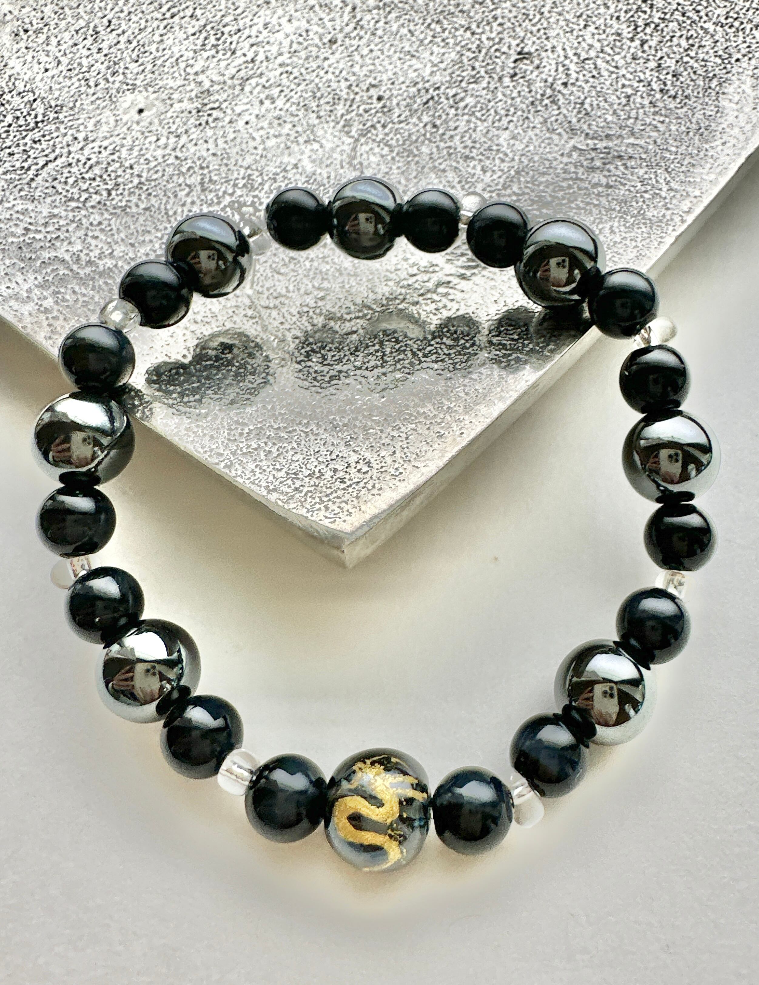 天然石 金龍 テラヘルツ&黒水晶(モリオン)ブレスレット