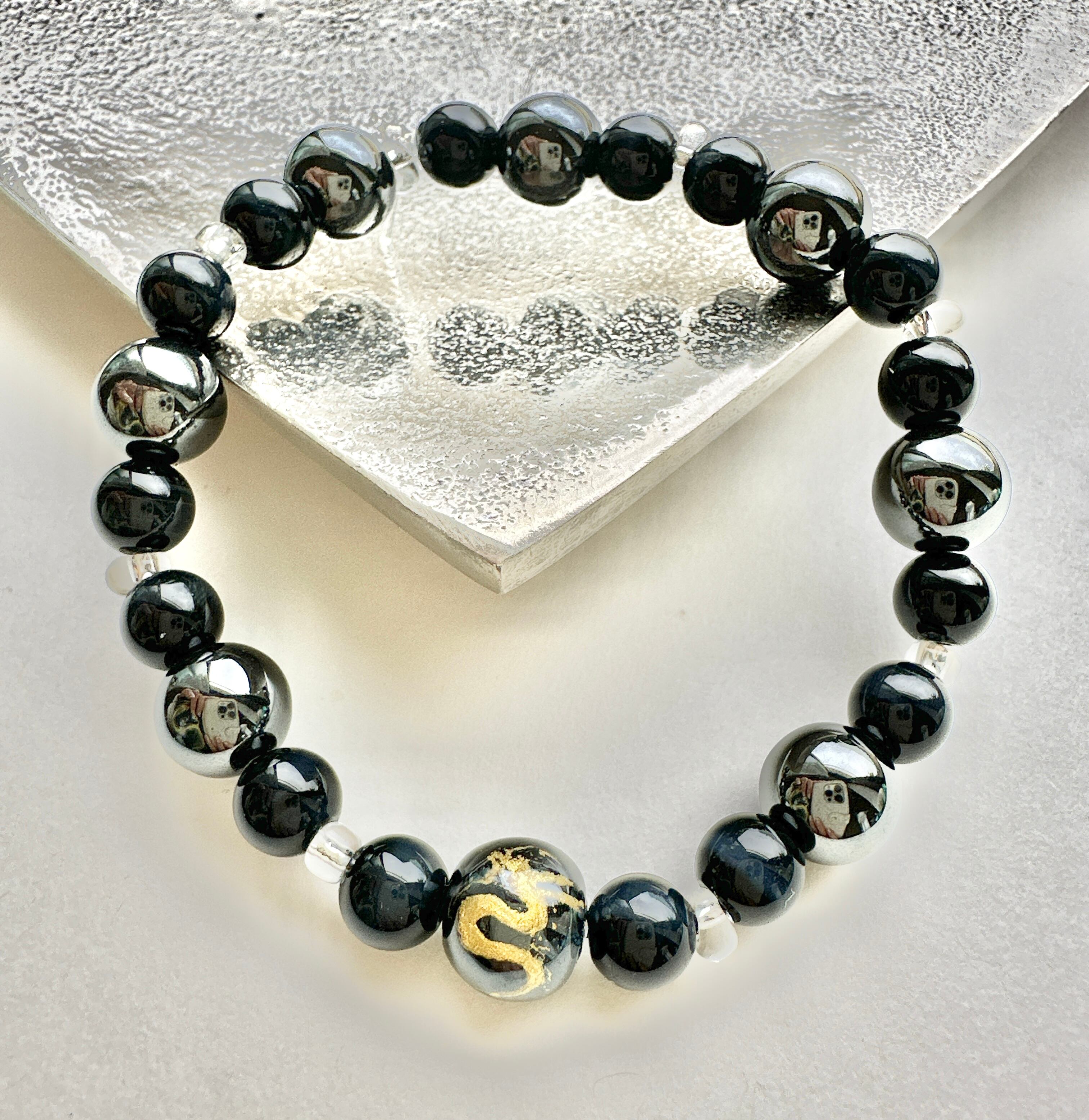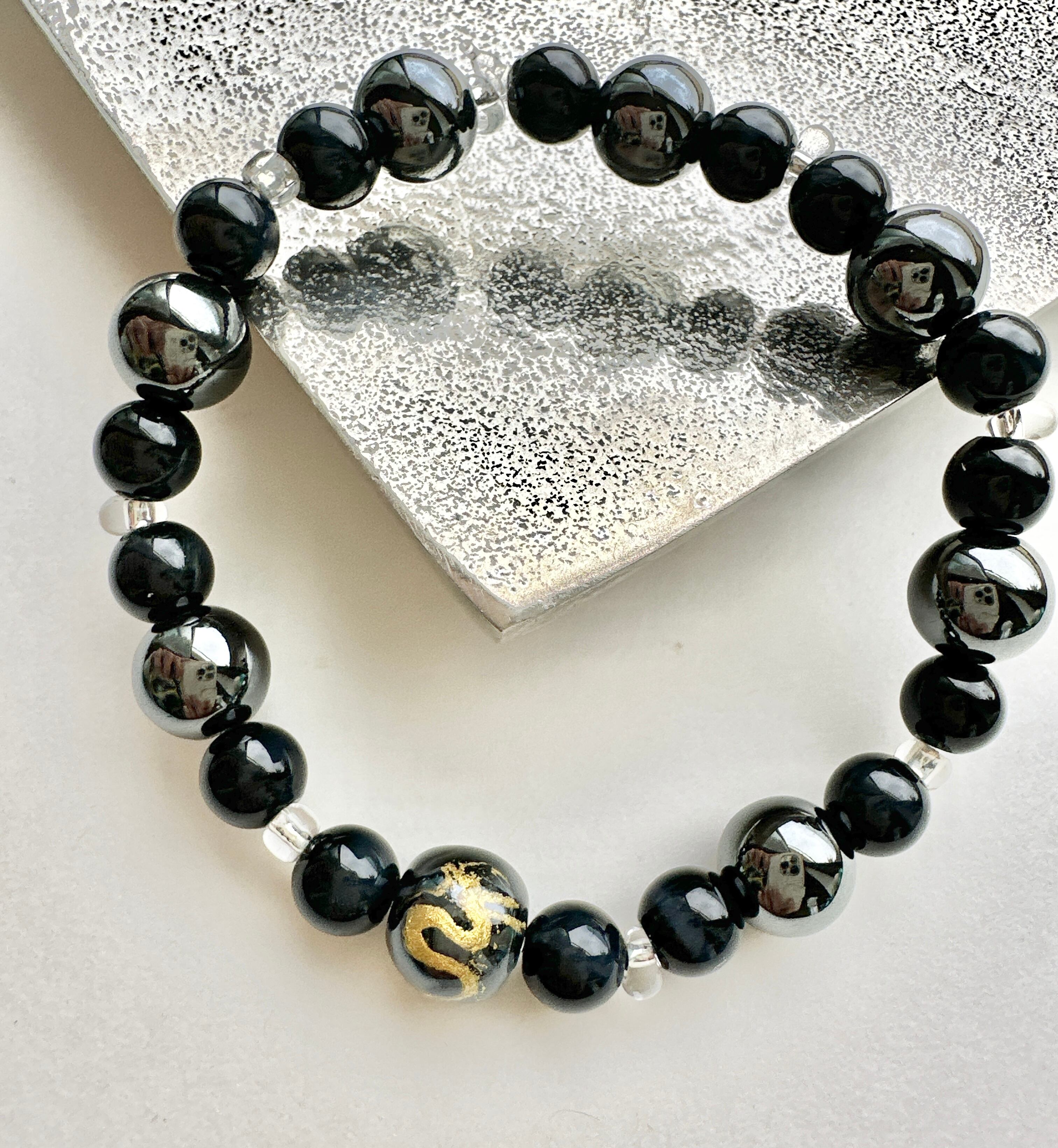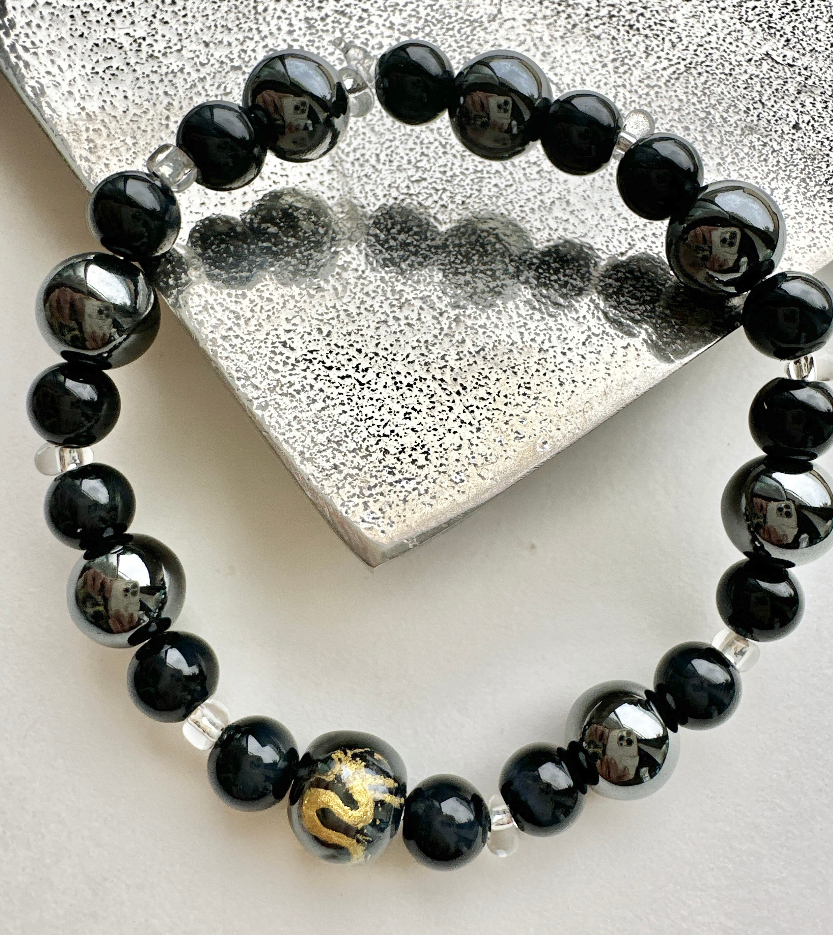天然石 金龍 テラヘルツ&黒水晶(モリオン)ブレスレット