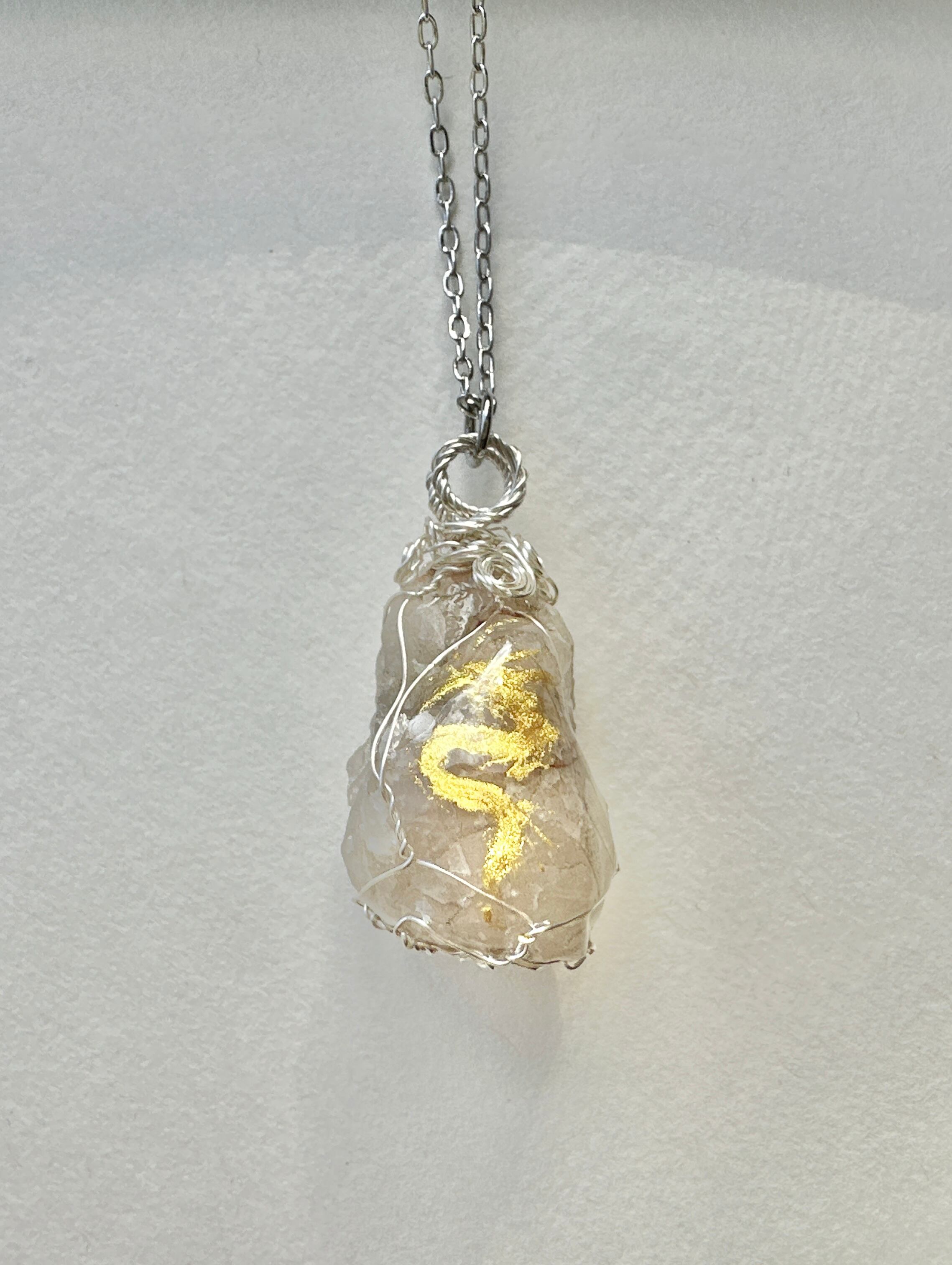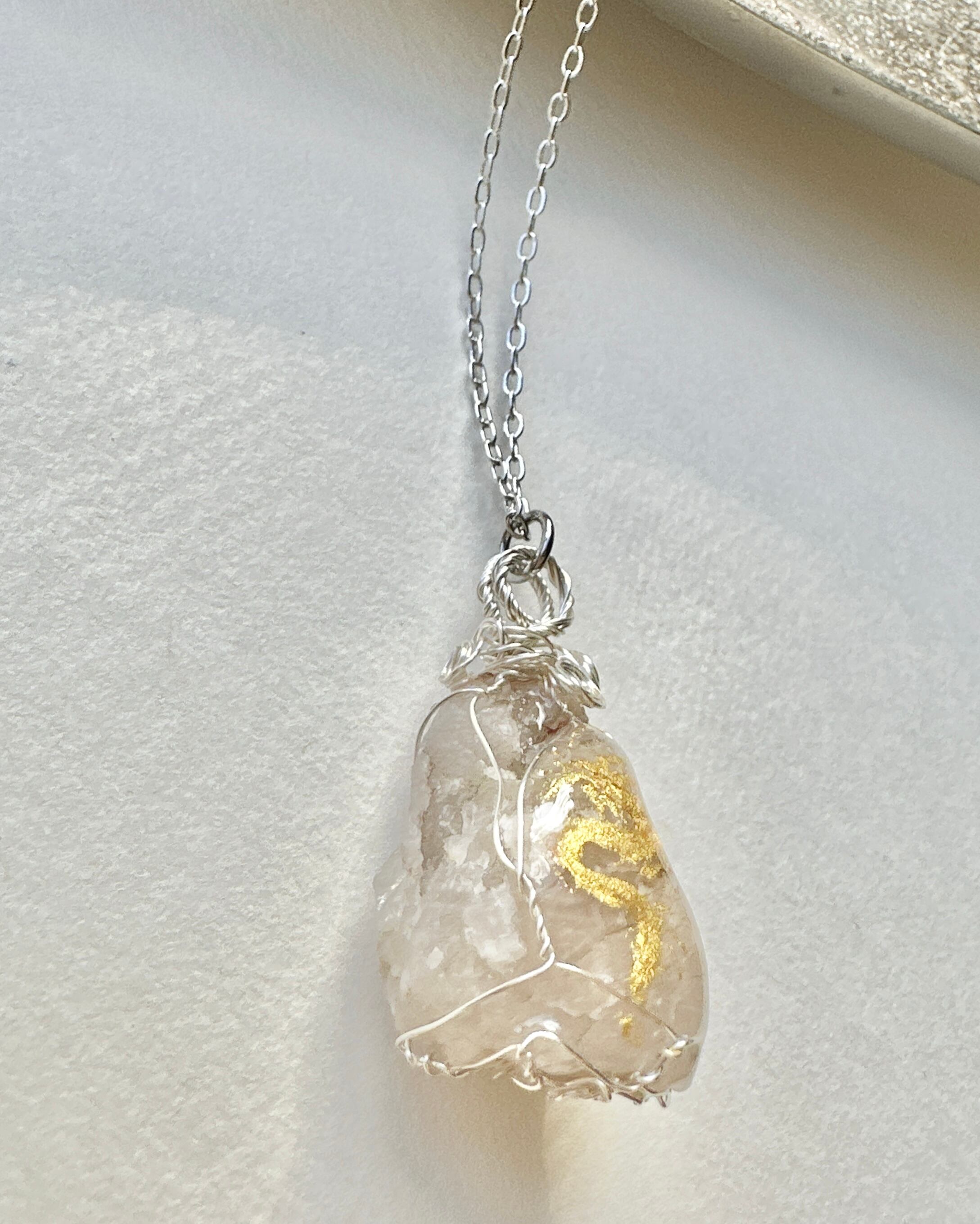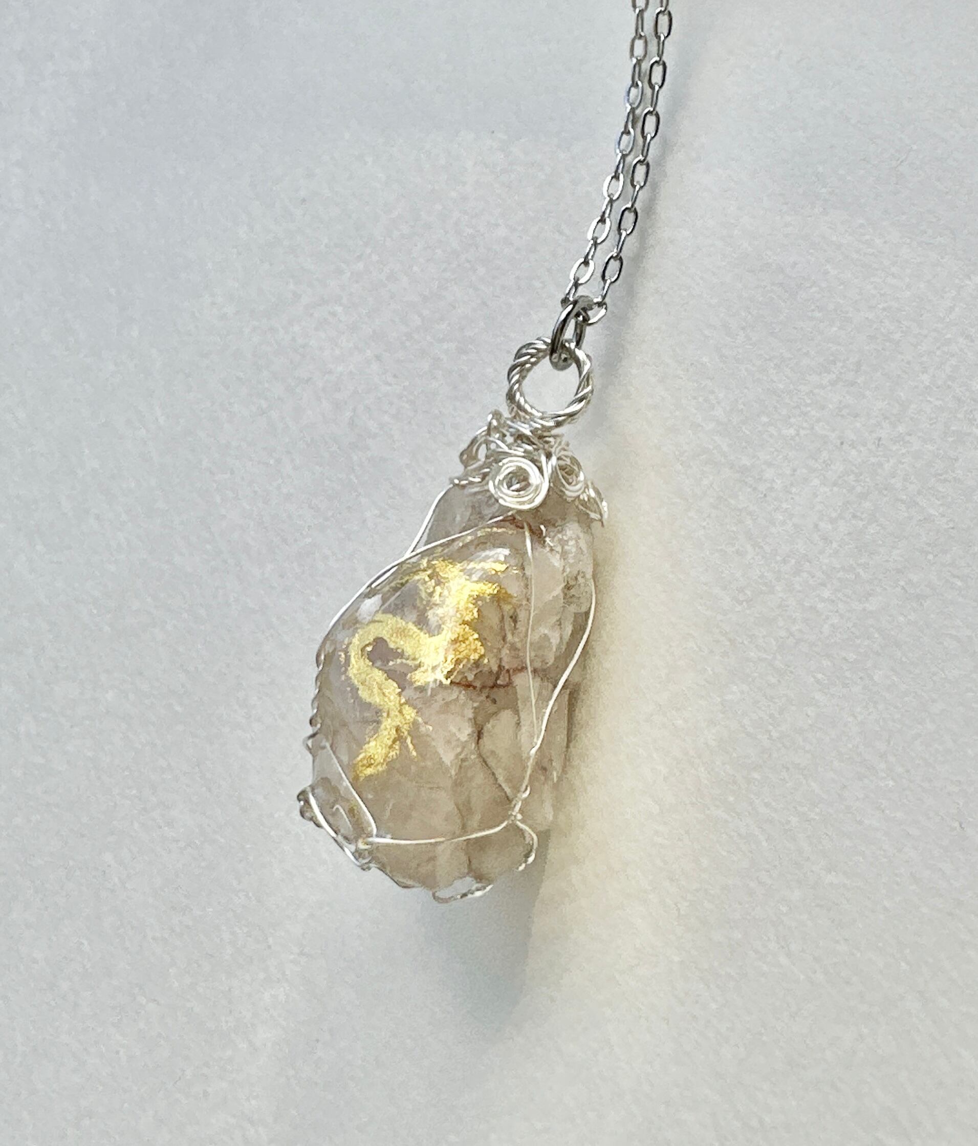 フィンランド鉱石(白) 金龍 ワイヤーラッピングネックレス