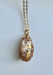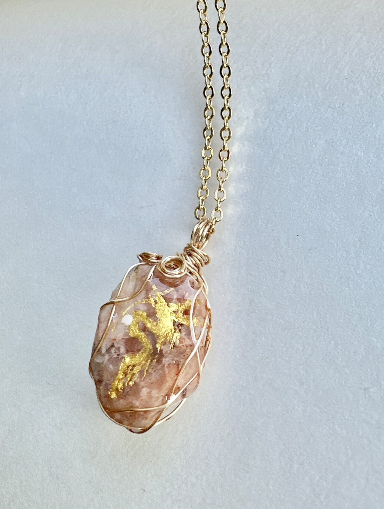 フィンランド鉱石(ピンク) 金龍 ワイヤーラッピングネックレス