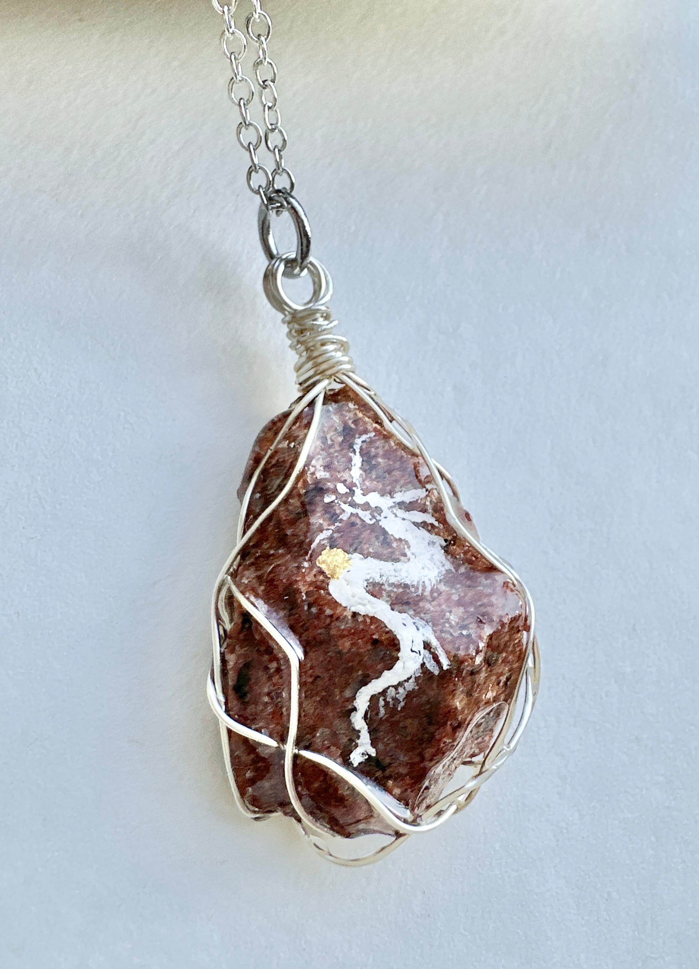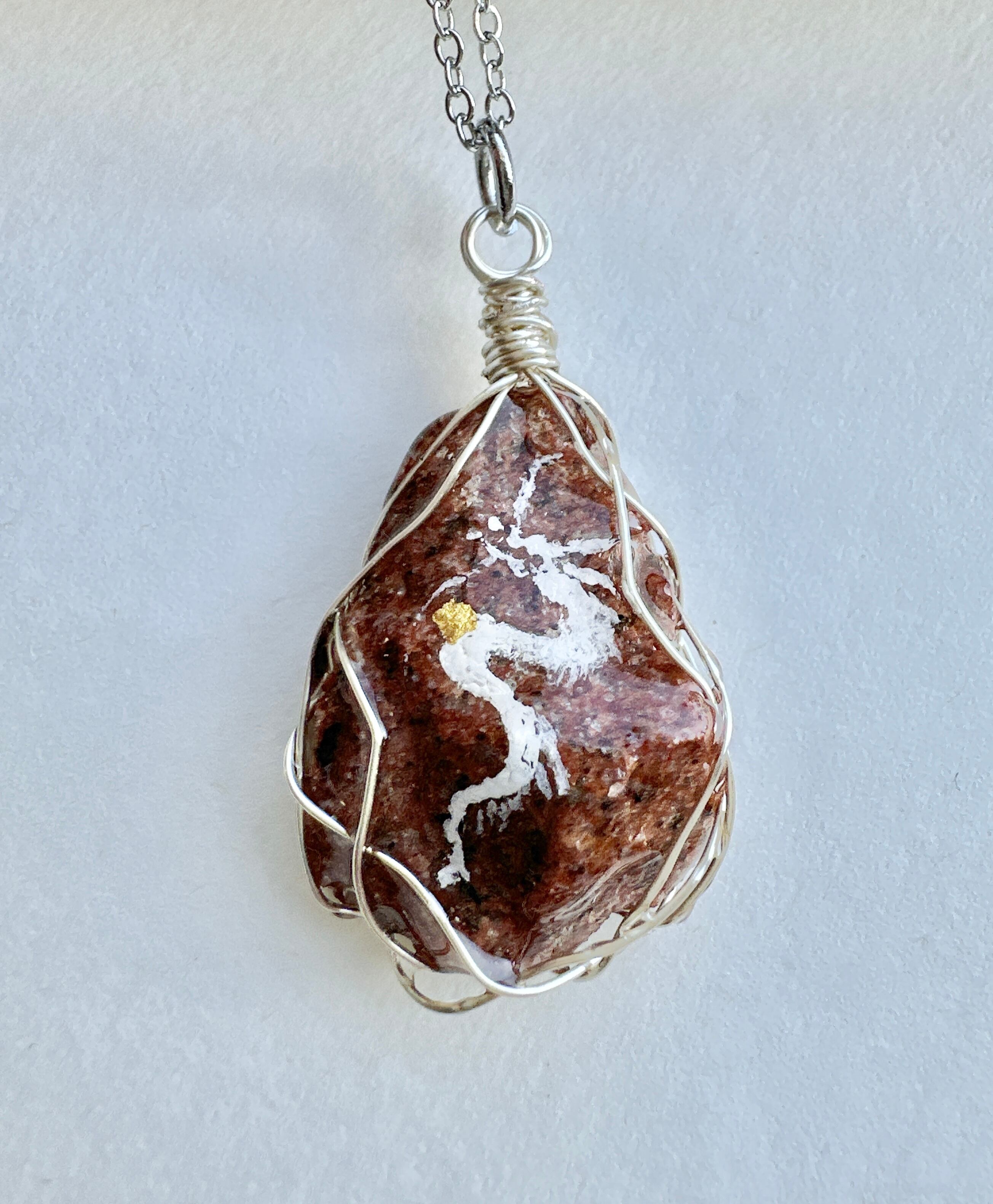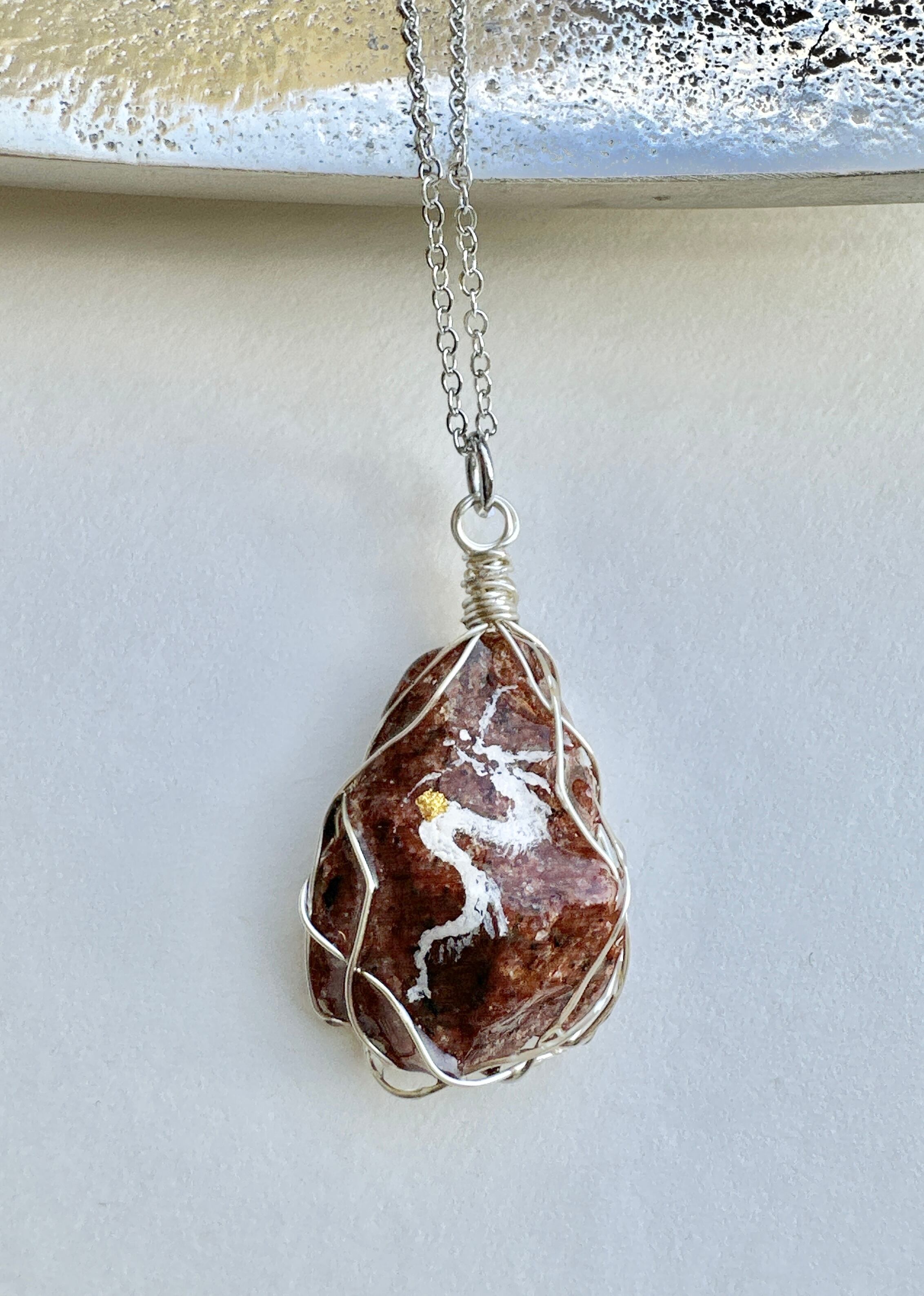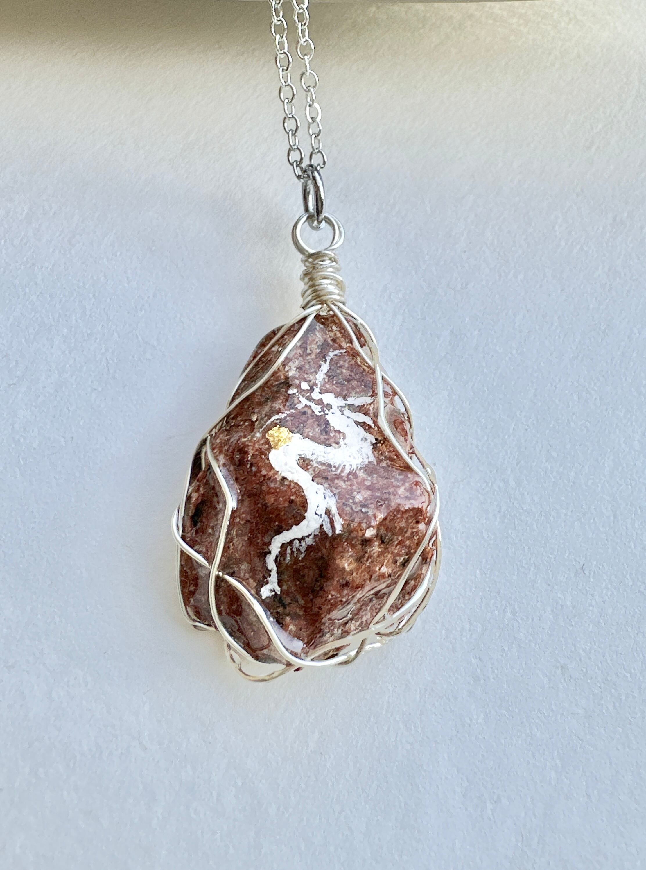 フィンランド鉱石(赤) 白龍 ワイヤーラッピングネックレス