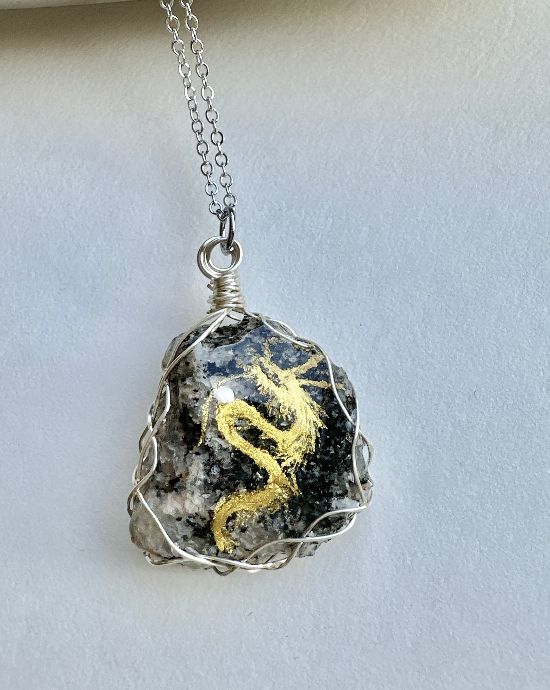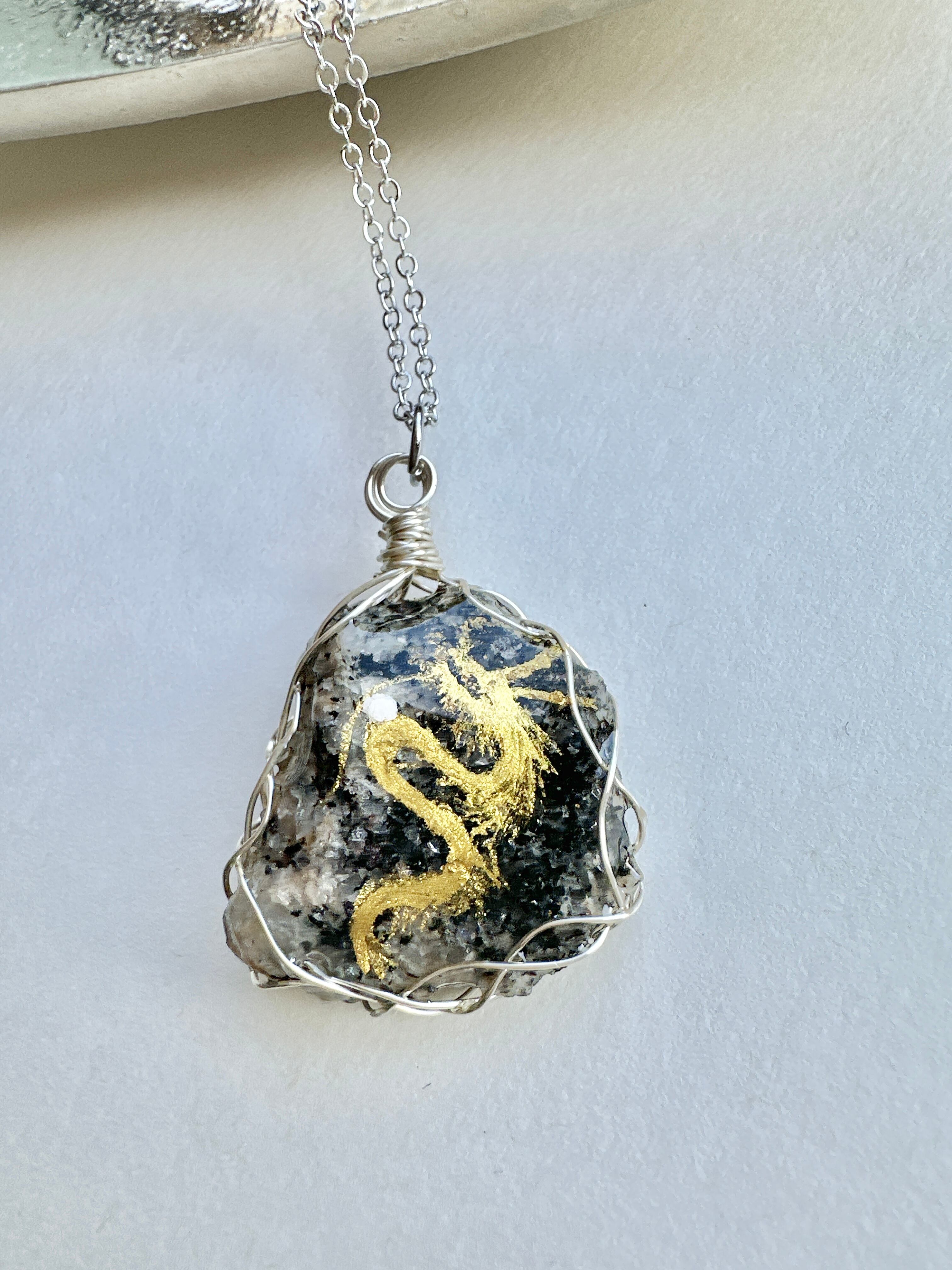 フィンランド鉱石(マーブル) 金龍 ワイヤーラッピングネックレス
