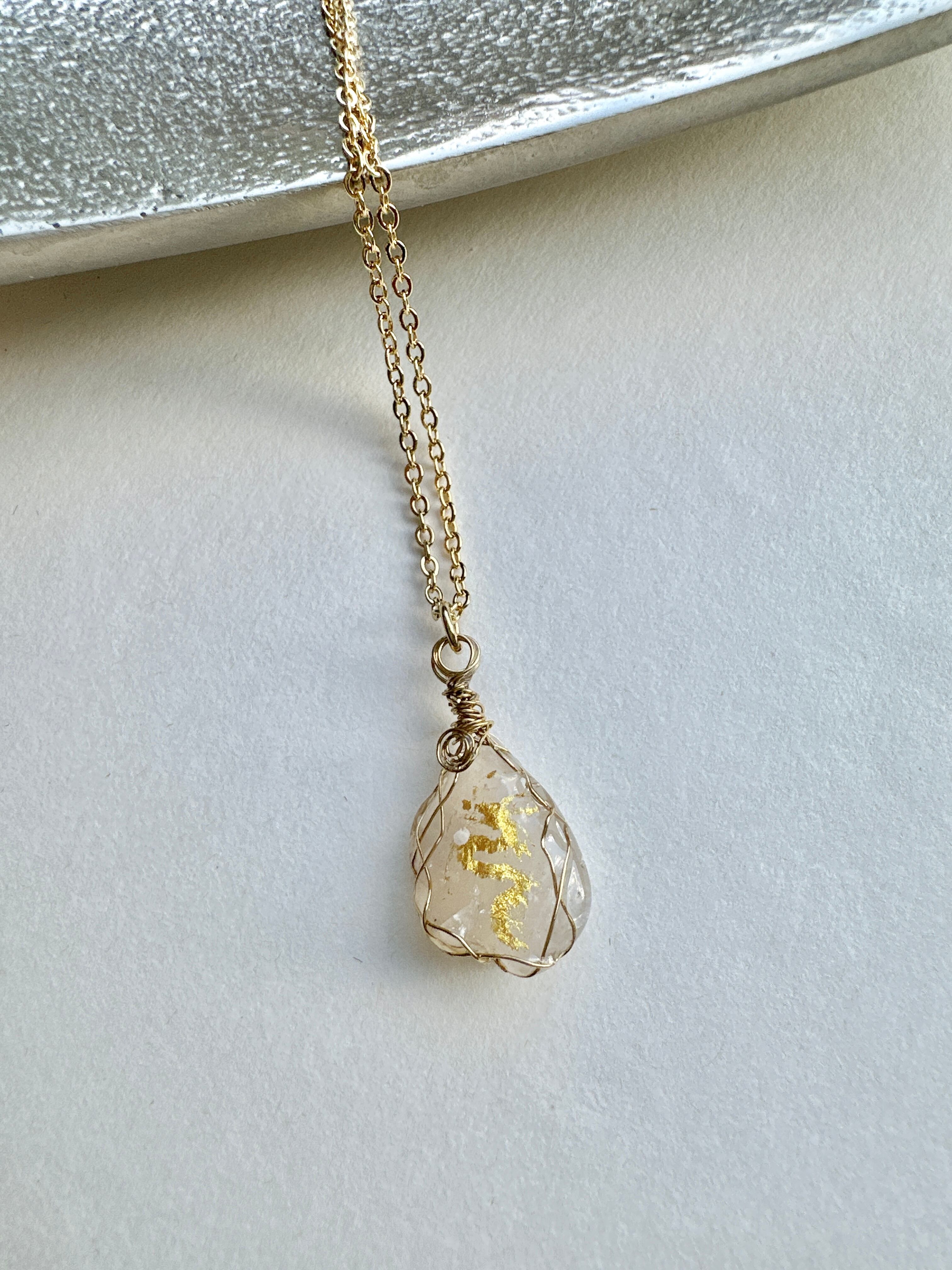 フィンランド鉱石(白) 金龍 ワイヤーラッピングネックレス