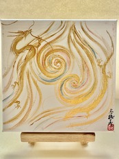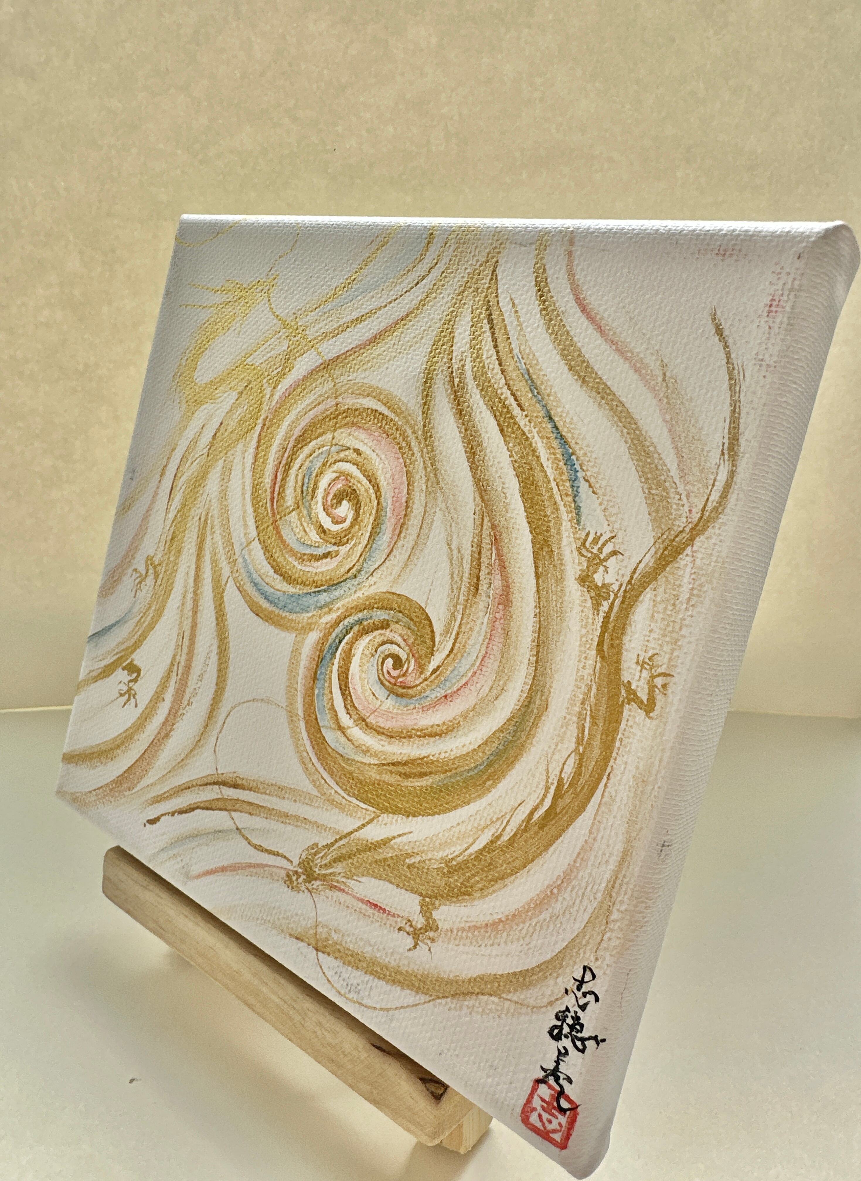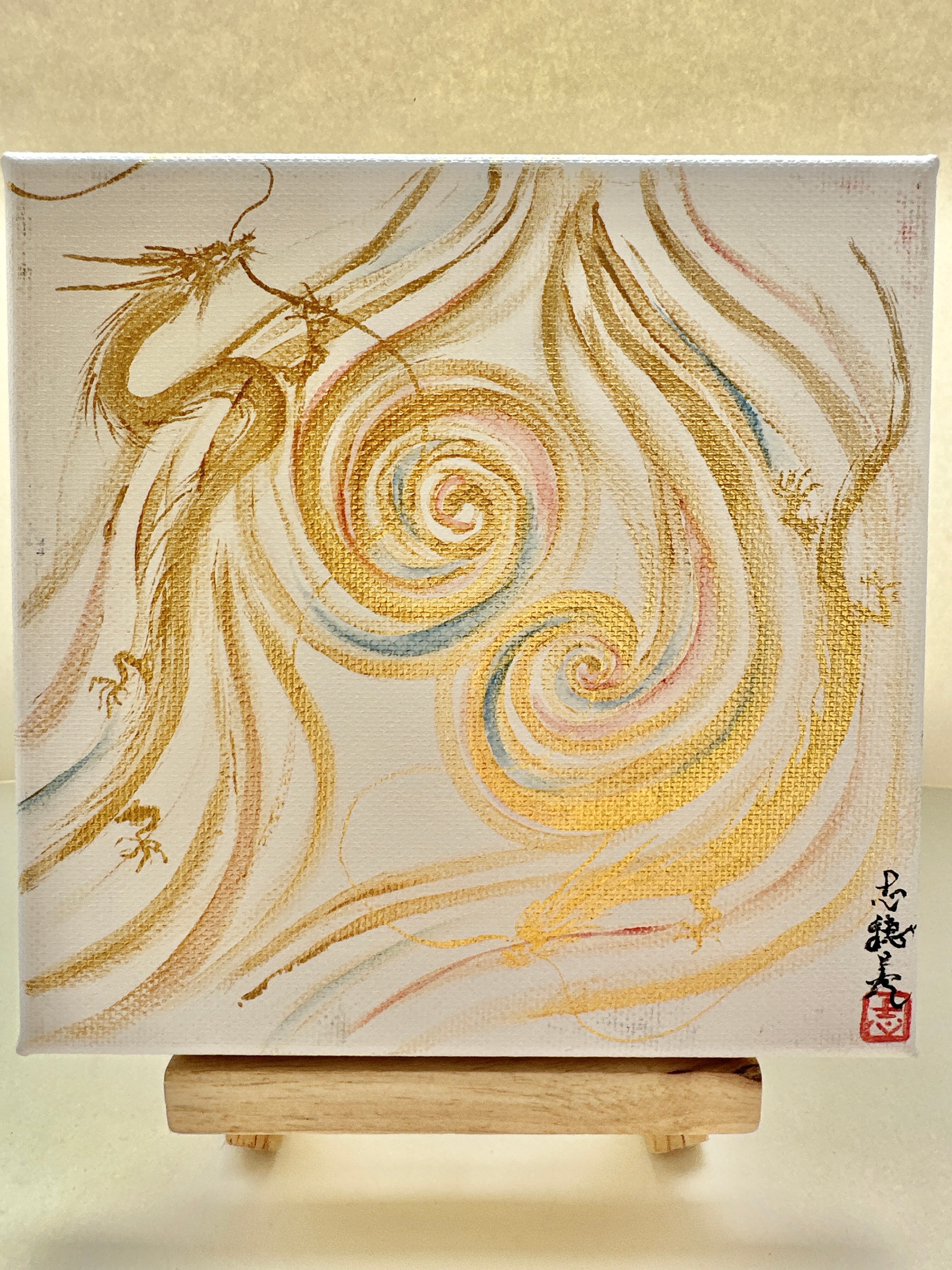 キャンバス 渦巻きと金の双龍