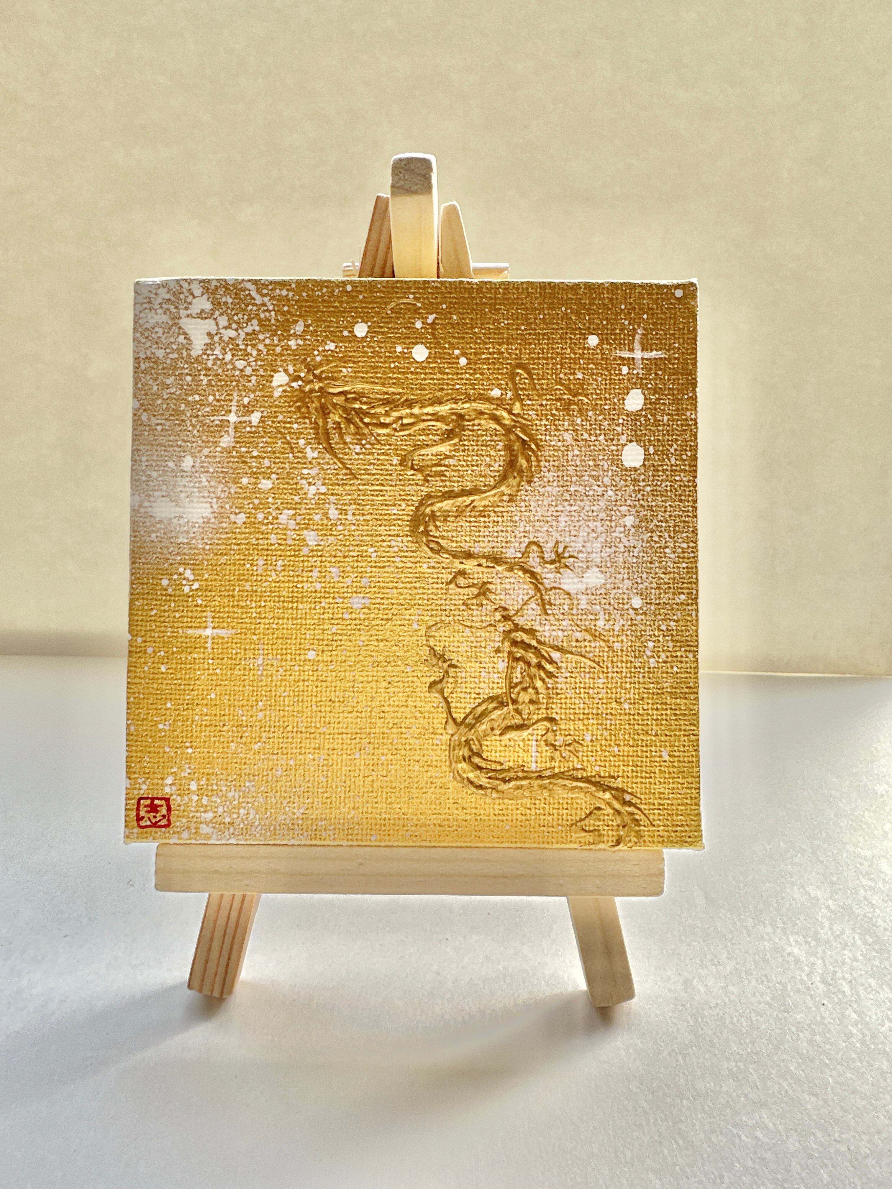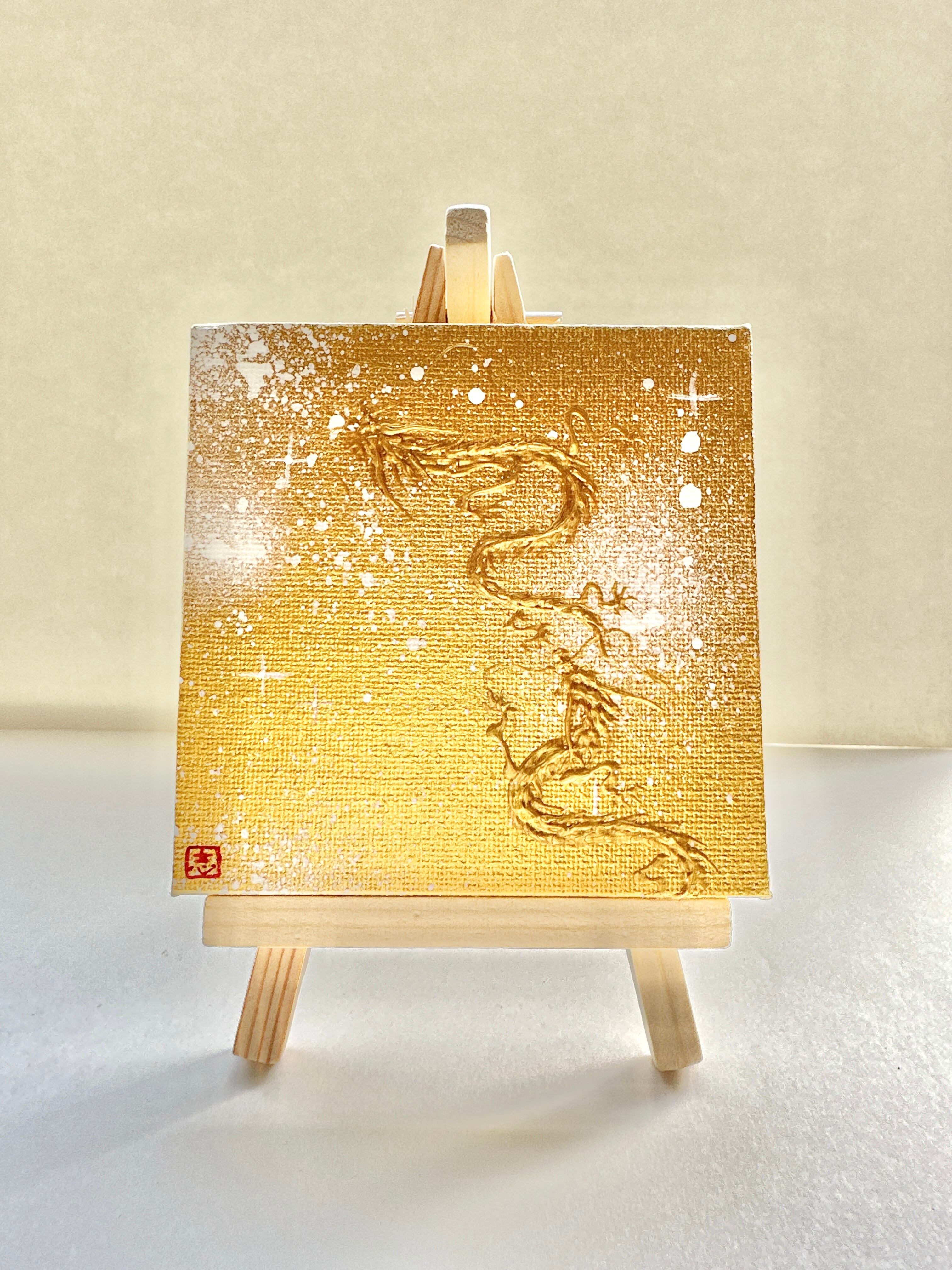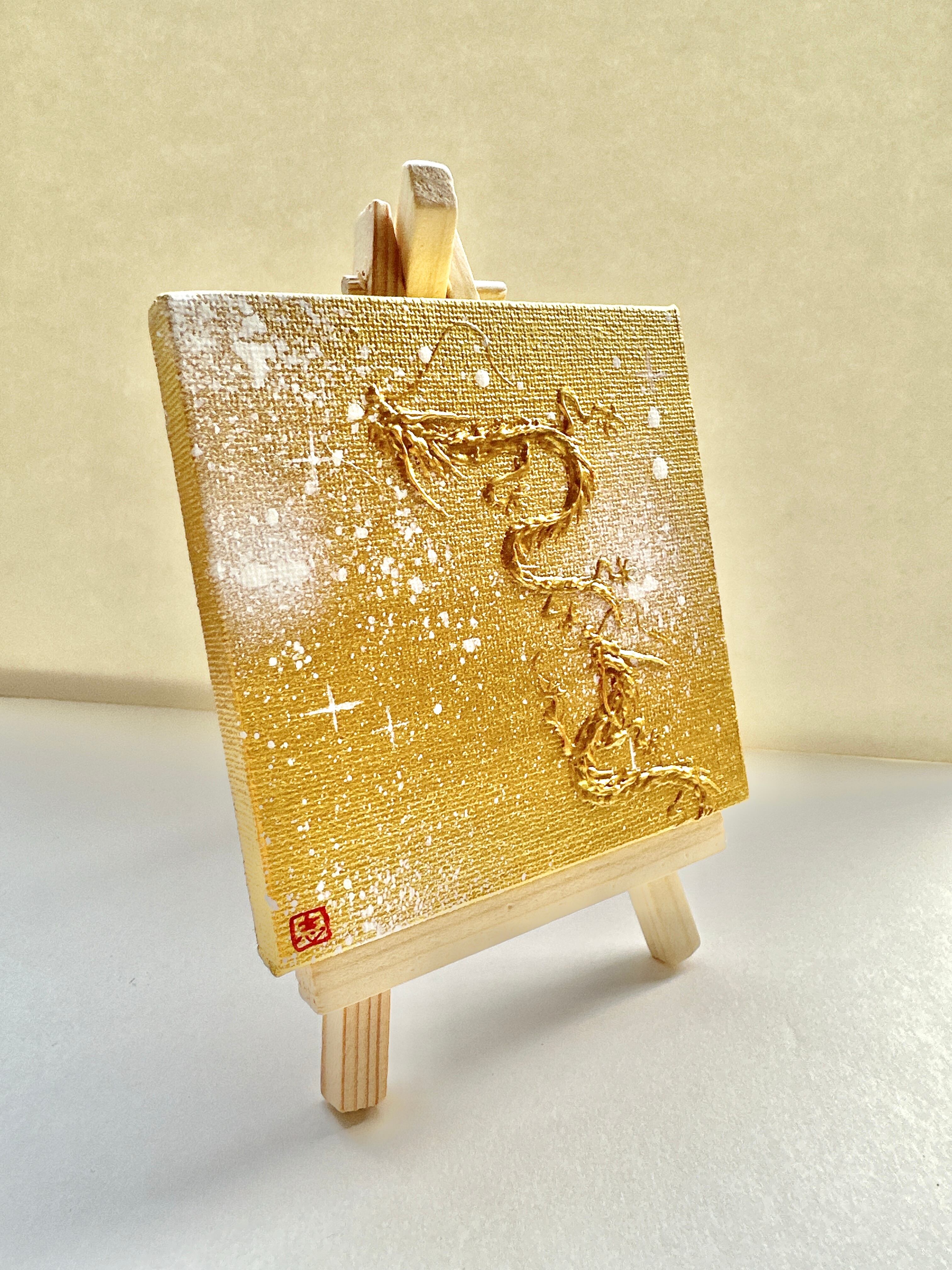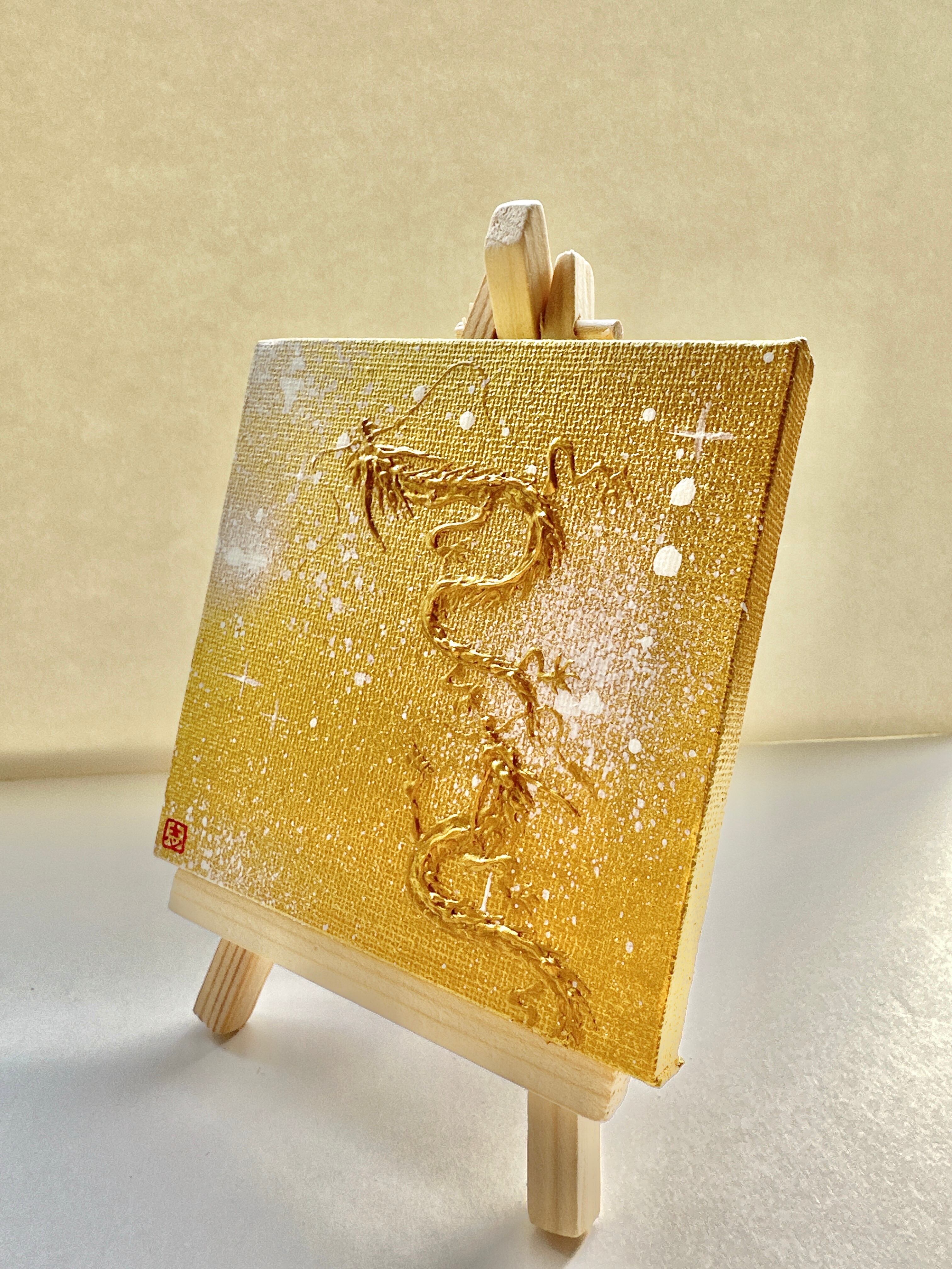 ミニキャンバス 金宇宙の中の金双龍 半立体