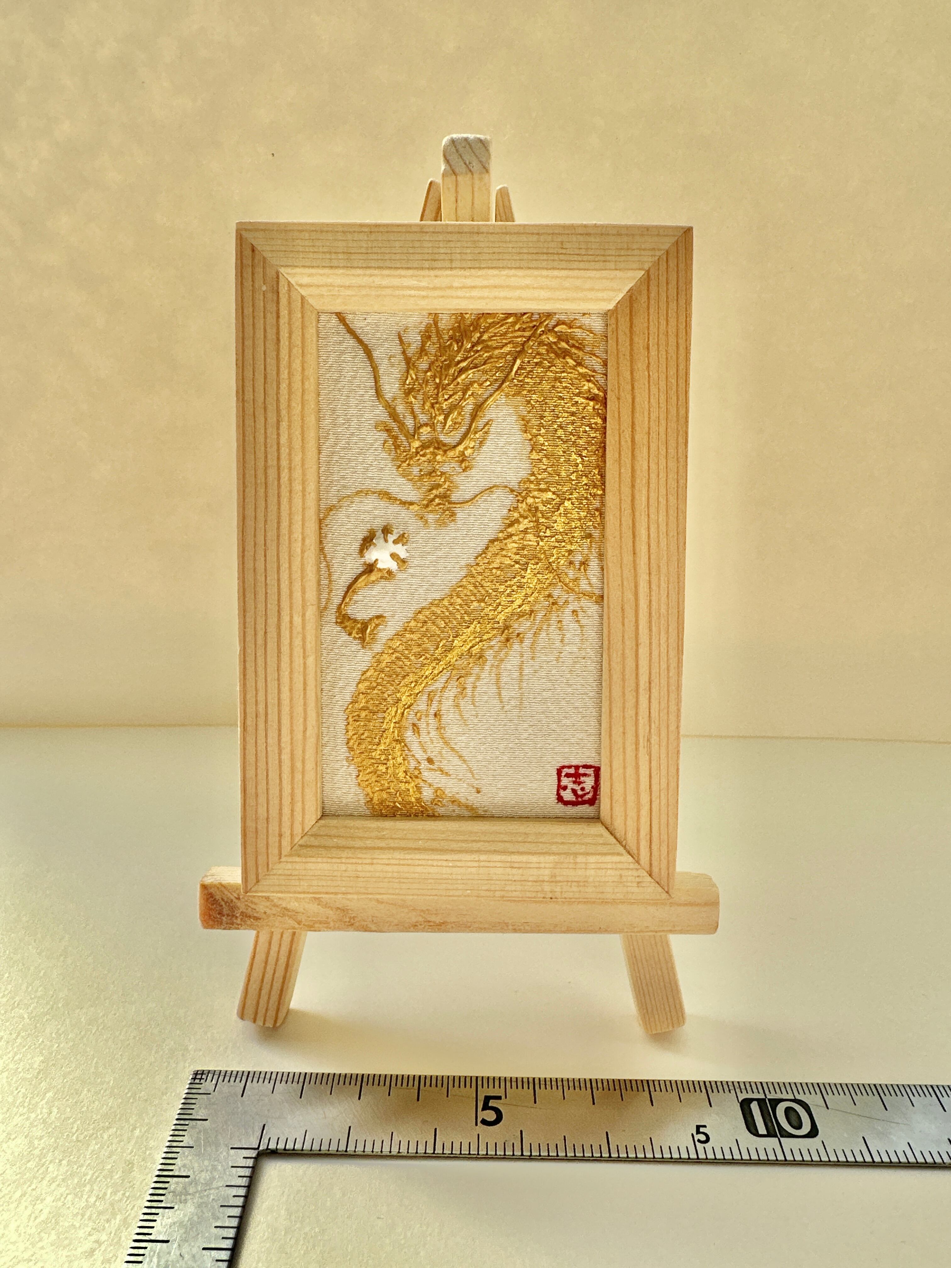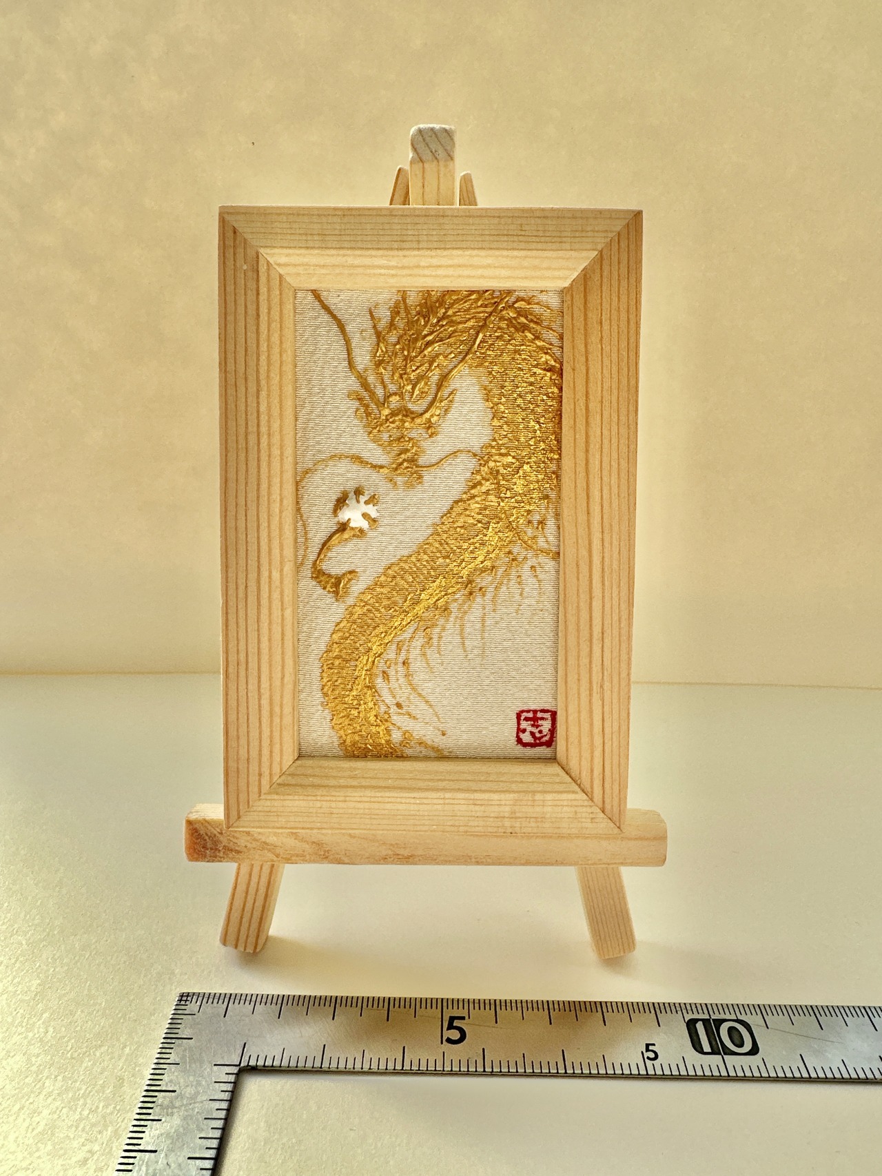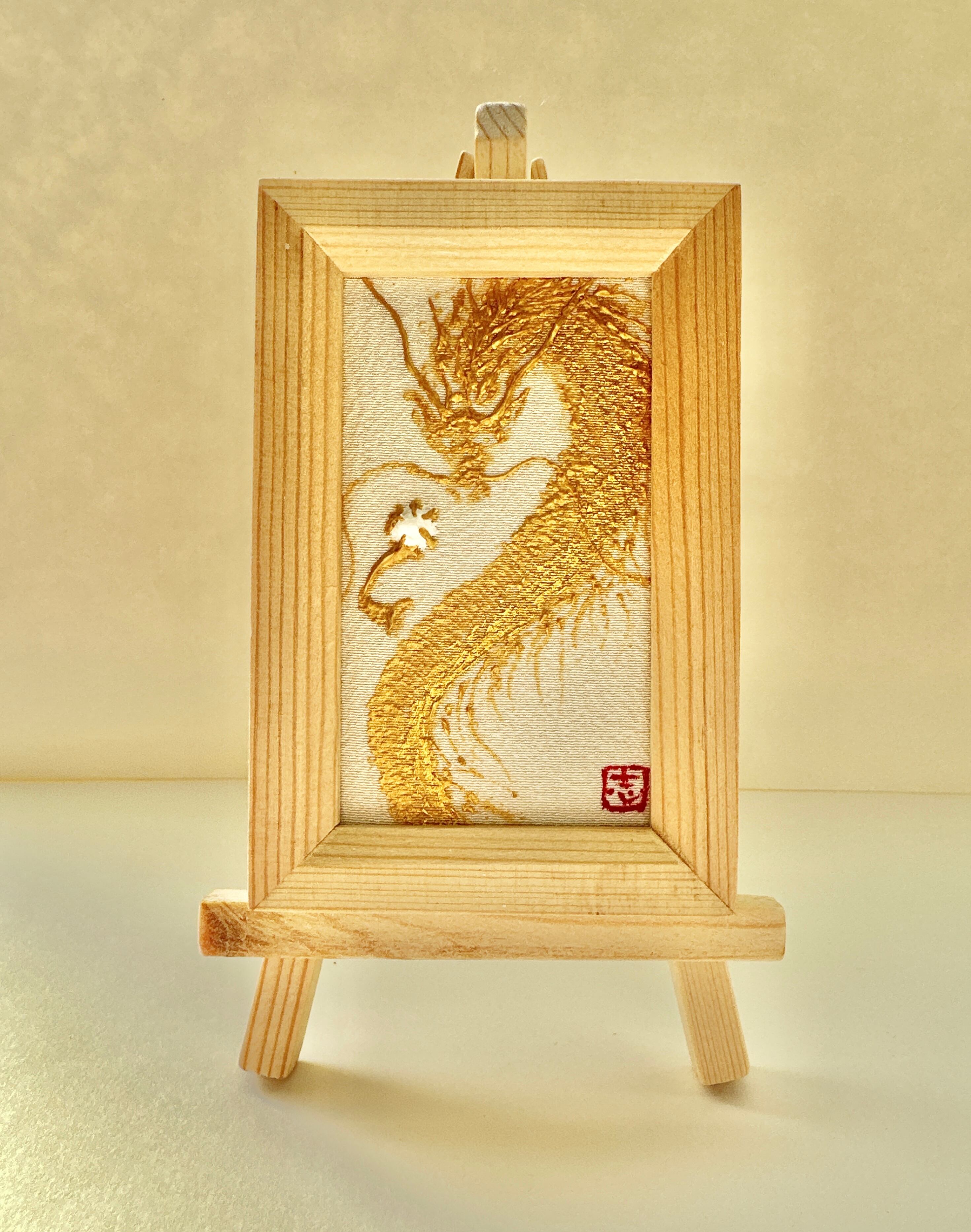 ミニ絹画立体 金龍(白色) イーゼル付き