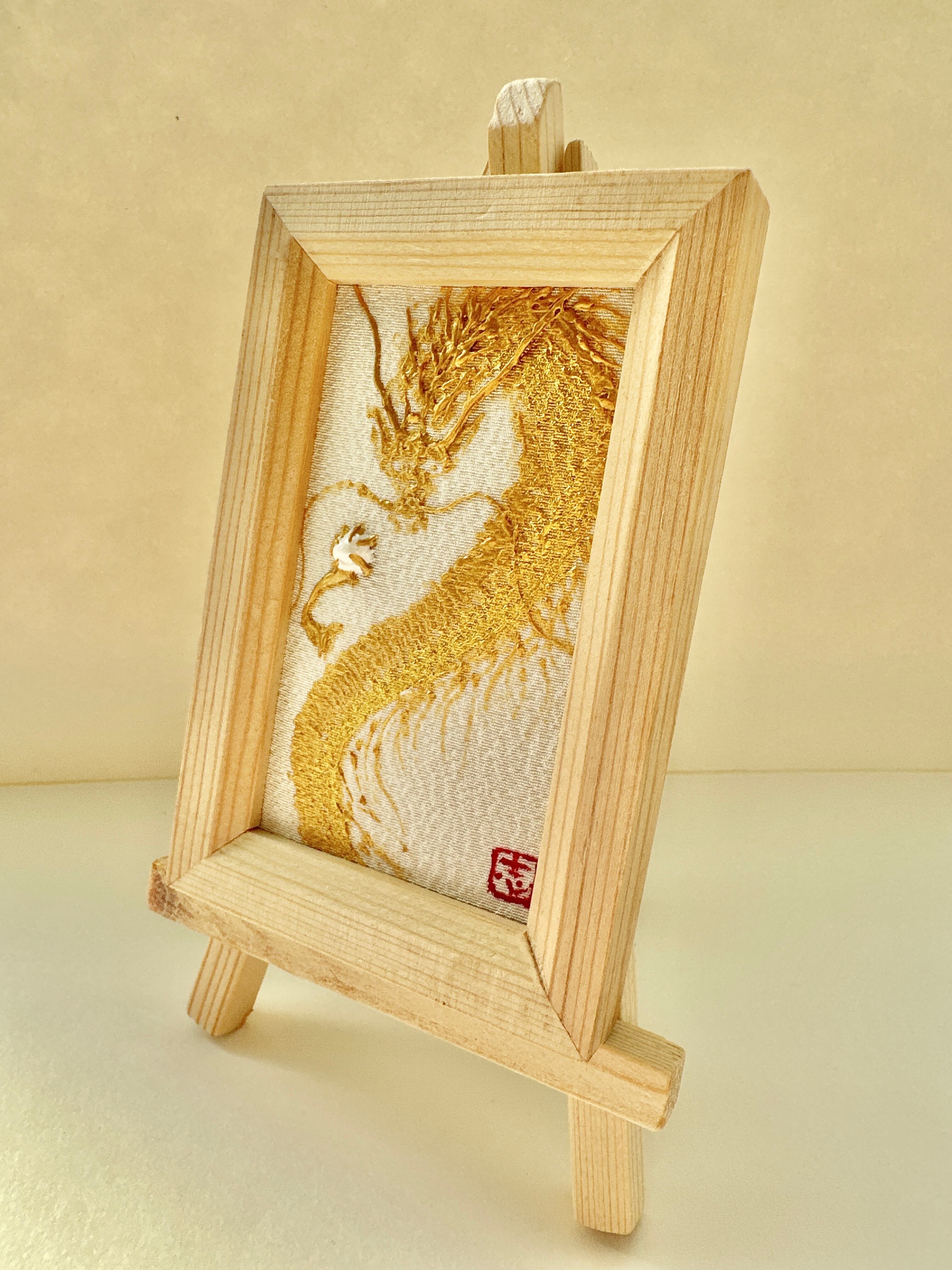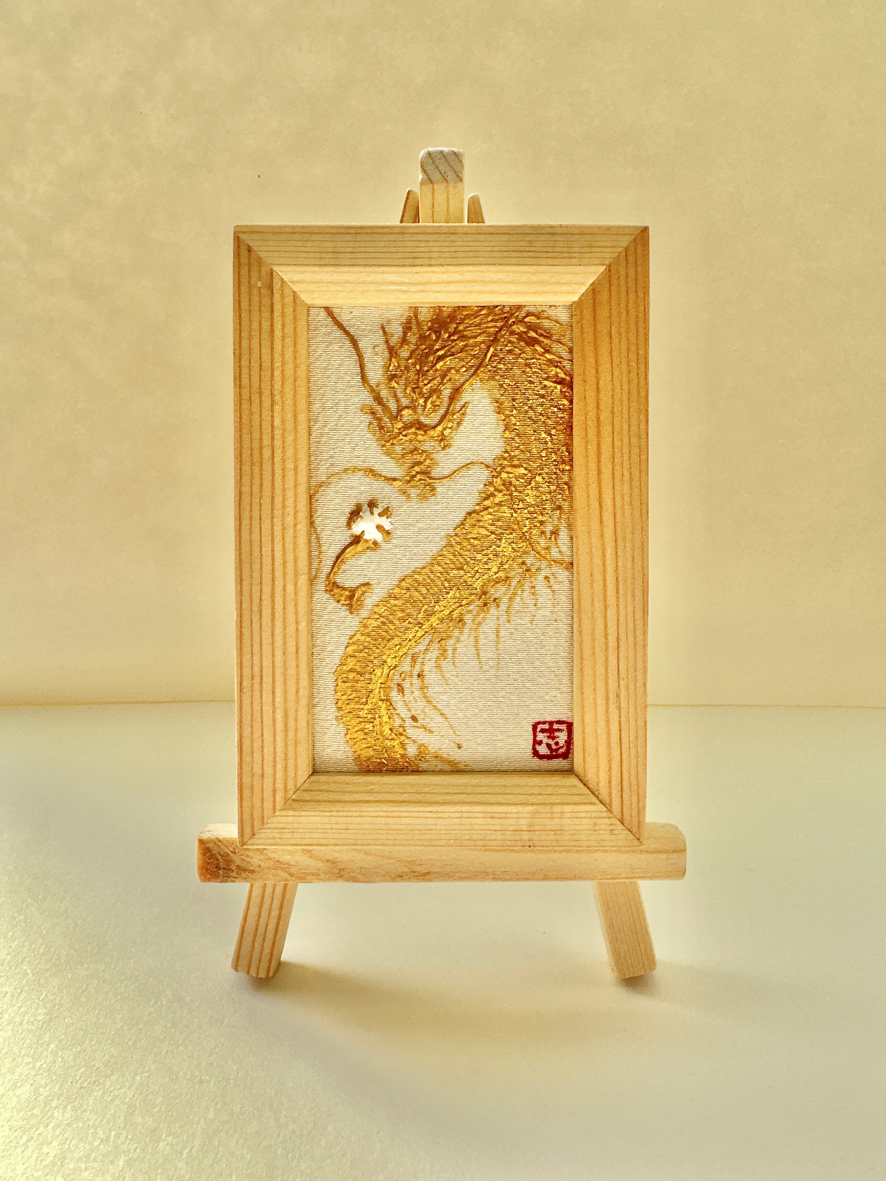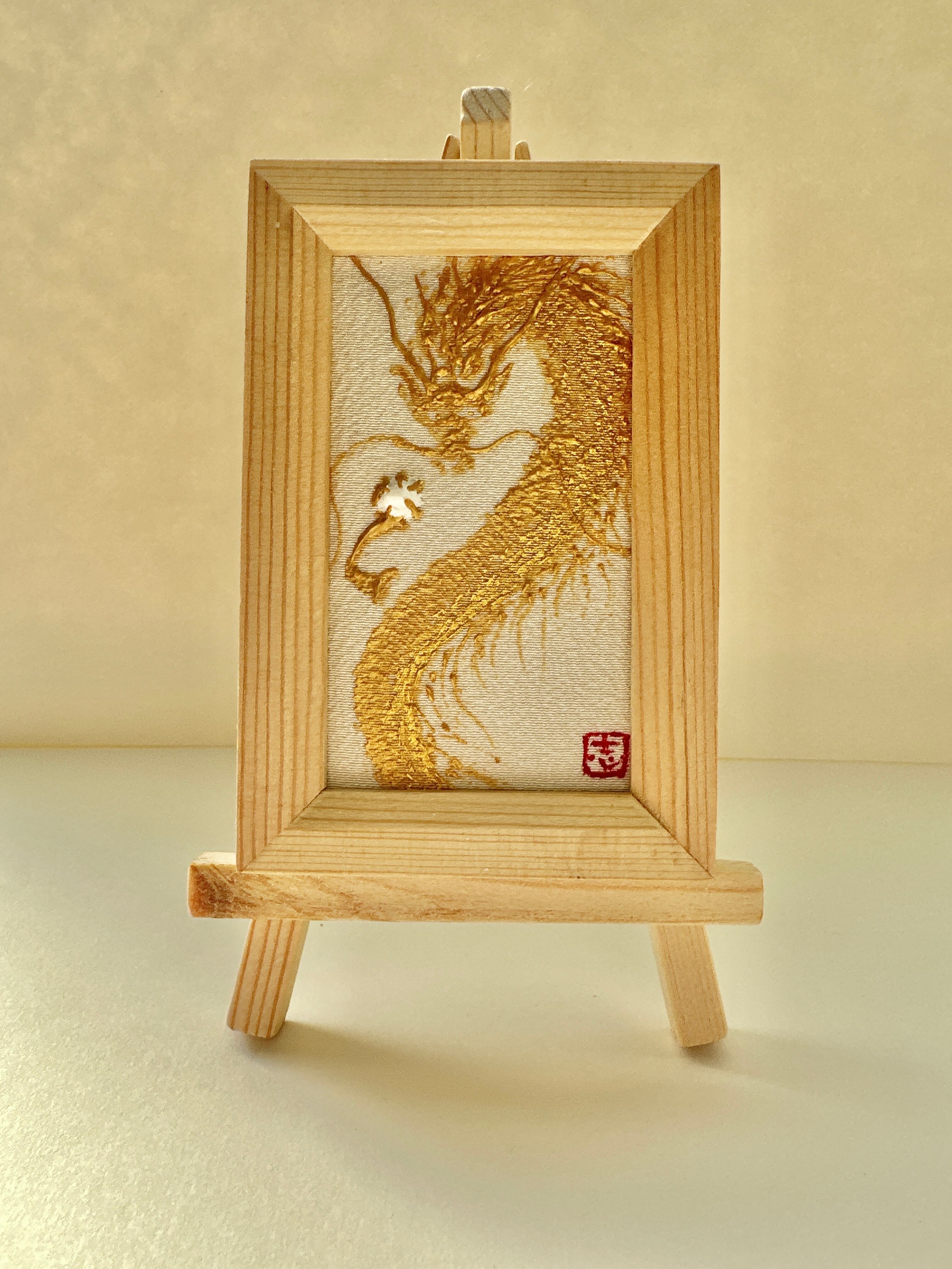ミニ絹画立体 金龍(白色) イーゼル付き