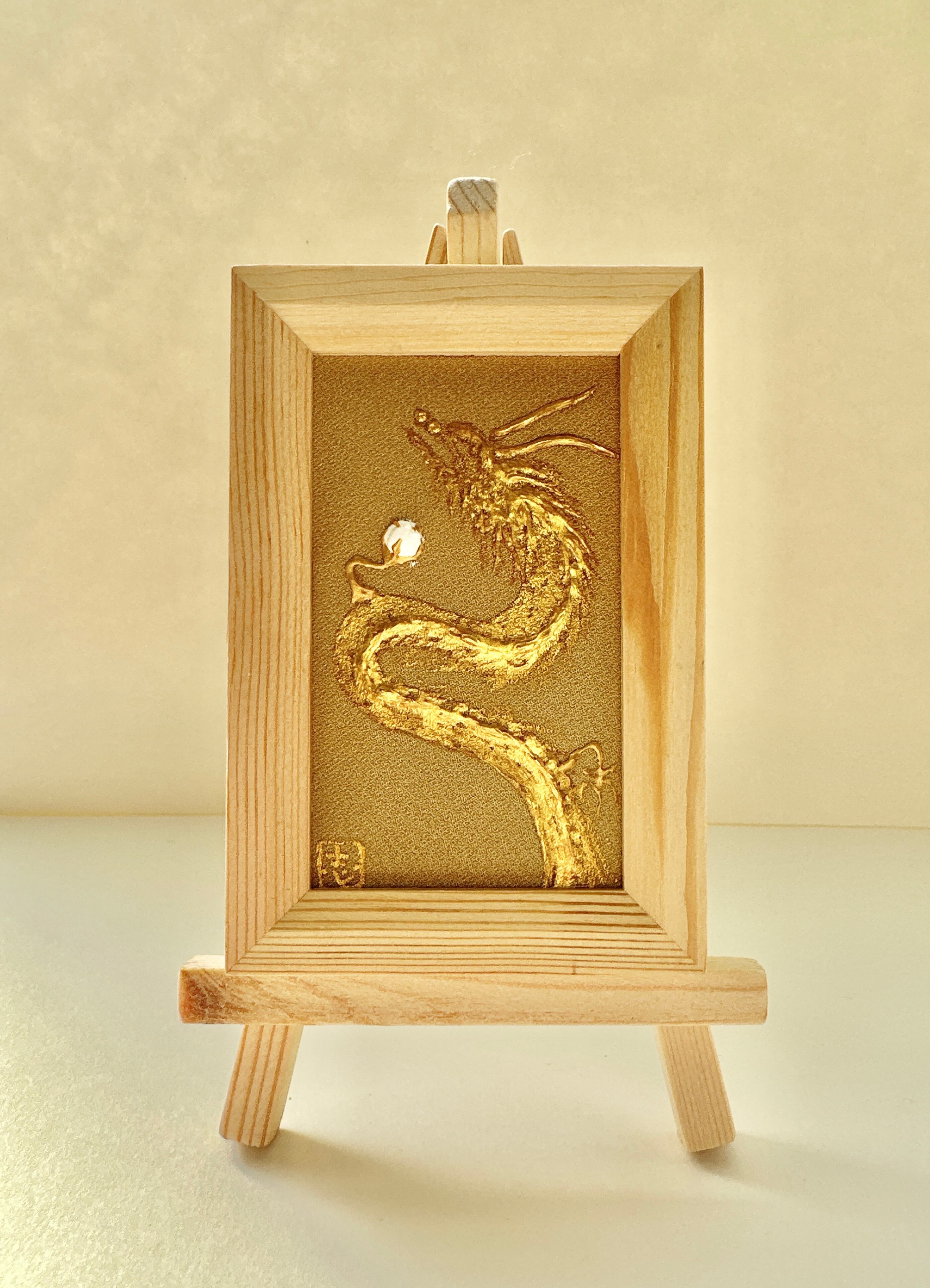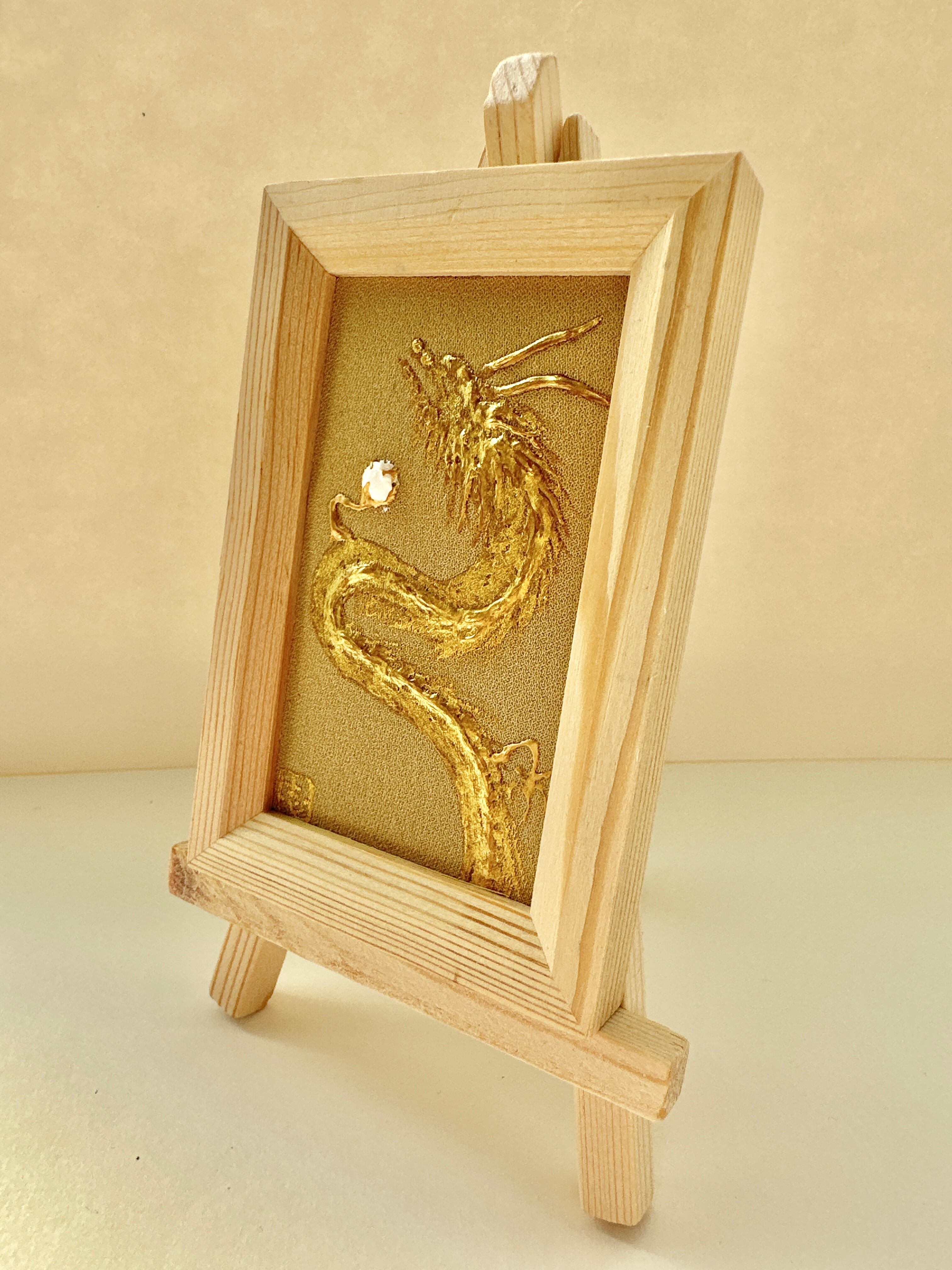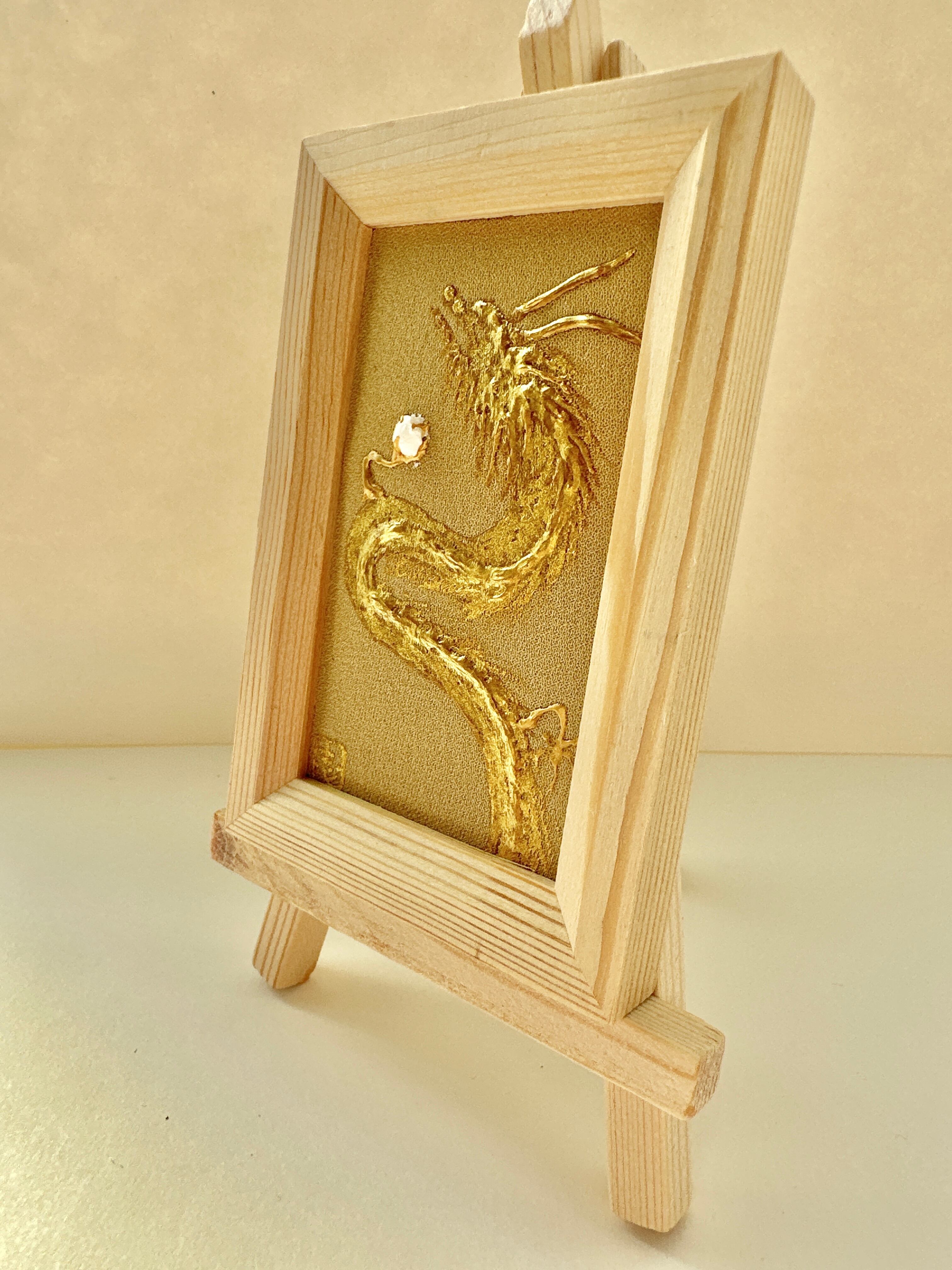ミニ絹画立体 金龍(金色) イーゼル付き