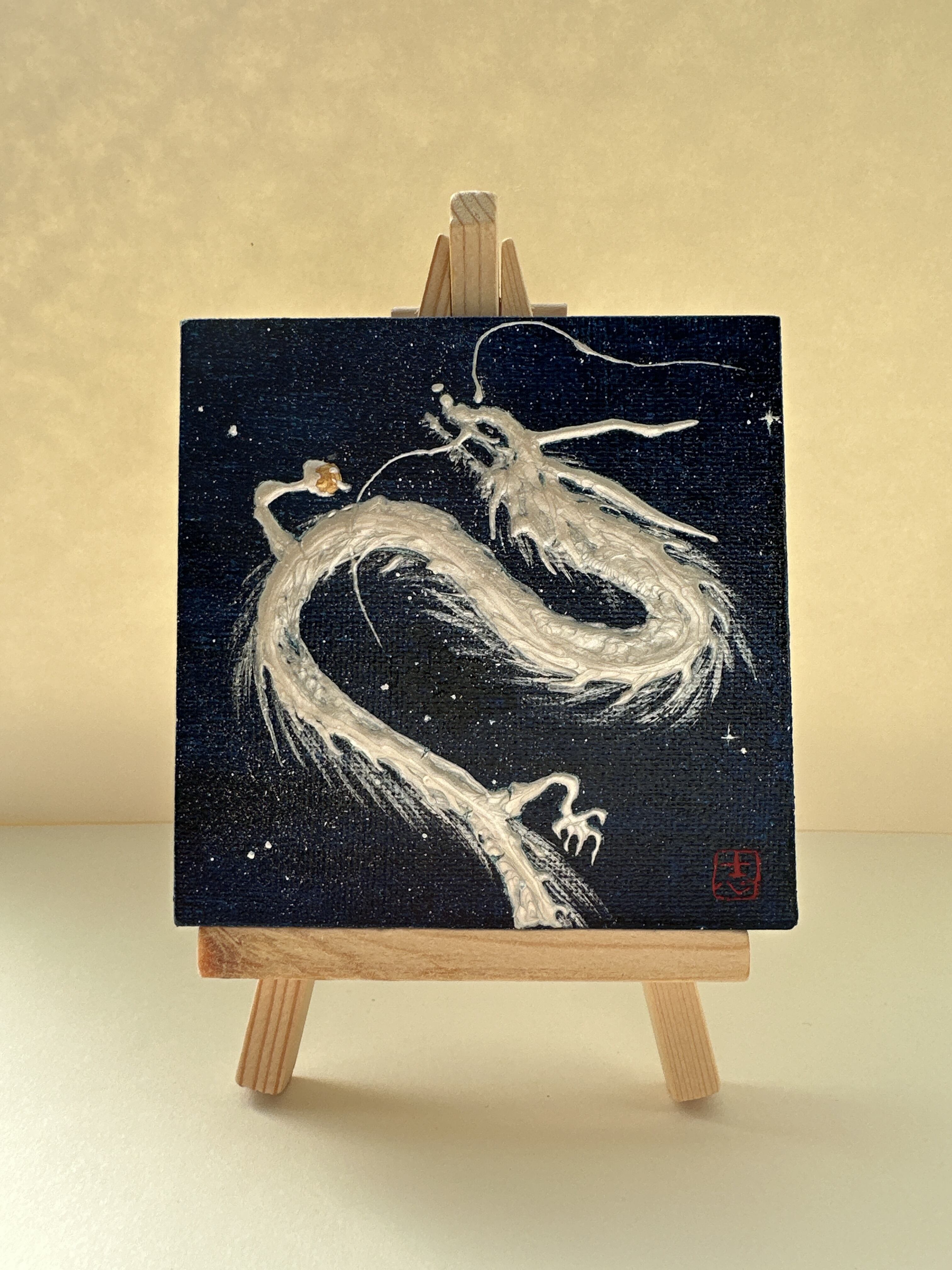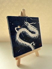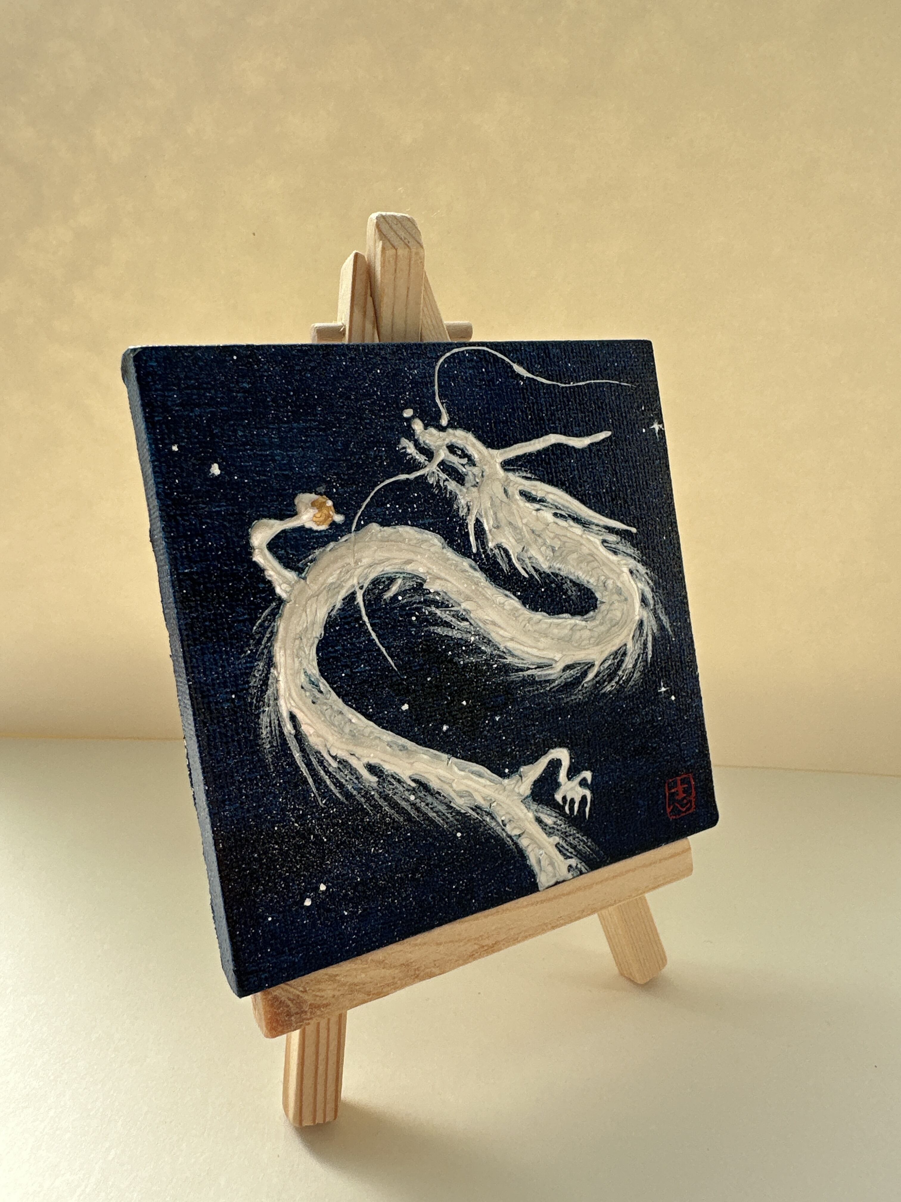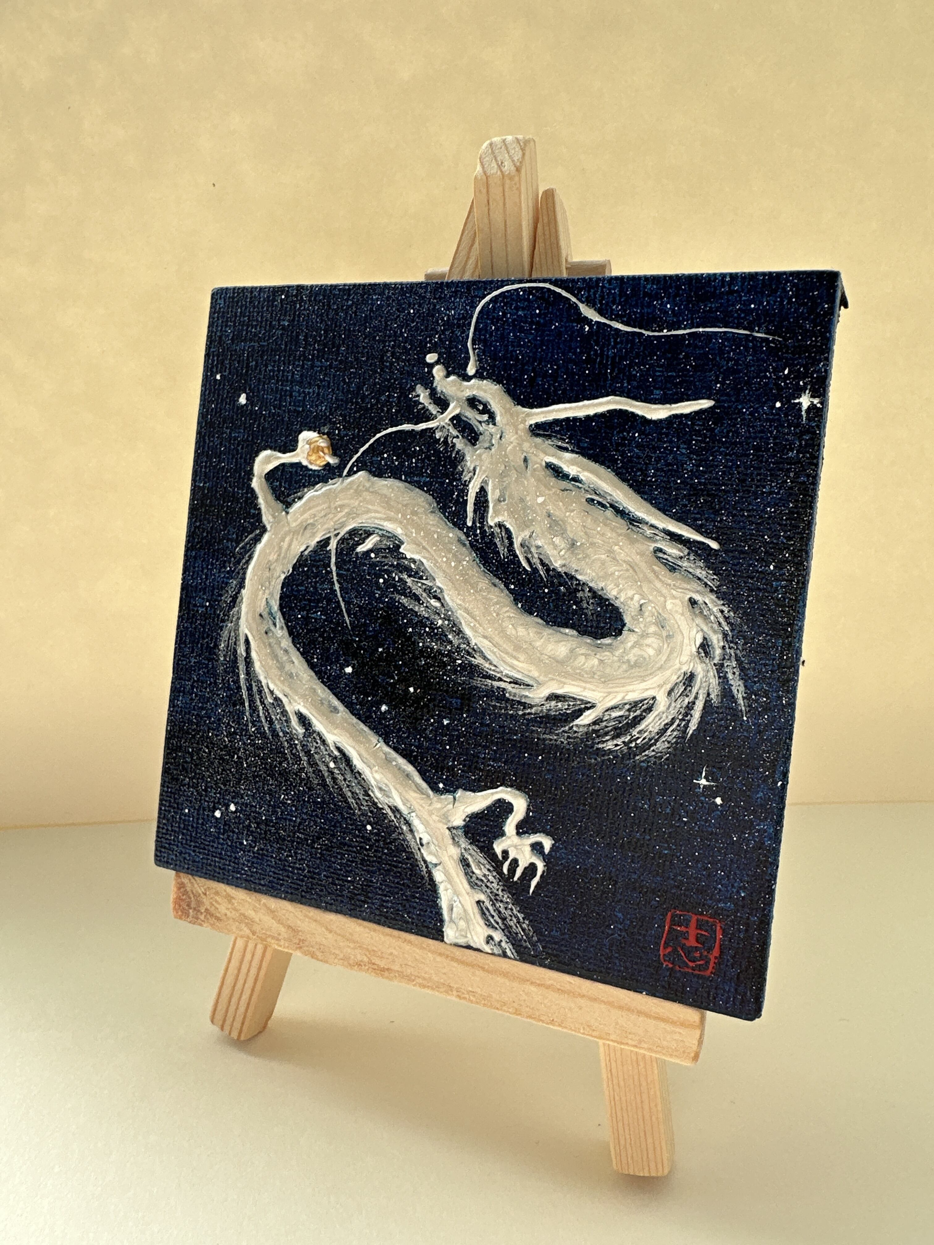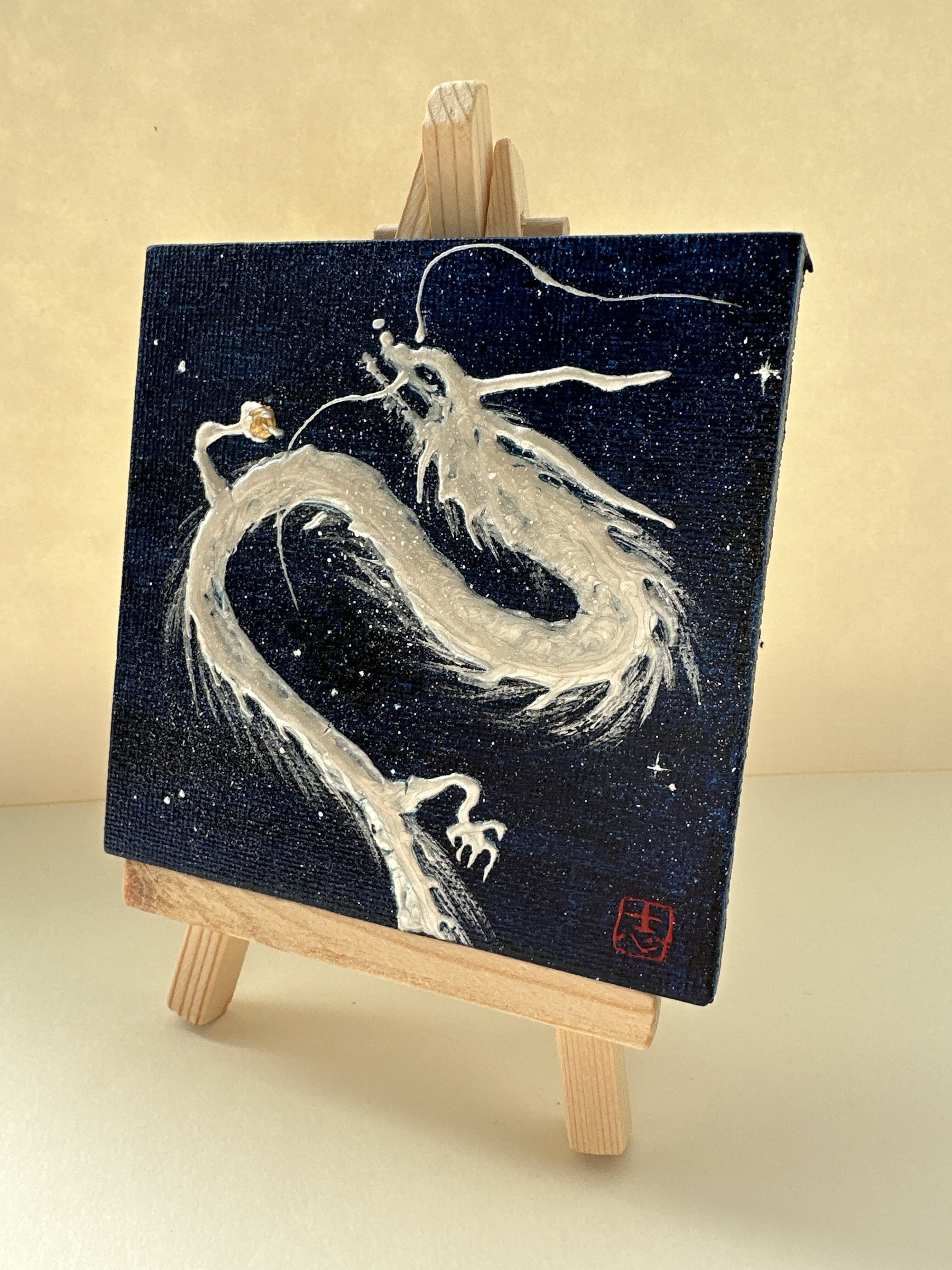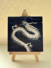 ミニキャンバス 宇宙の中の白龍 半立体