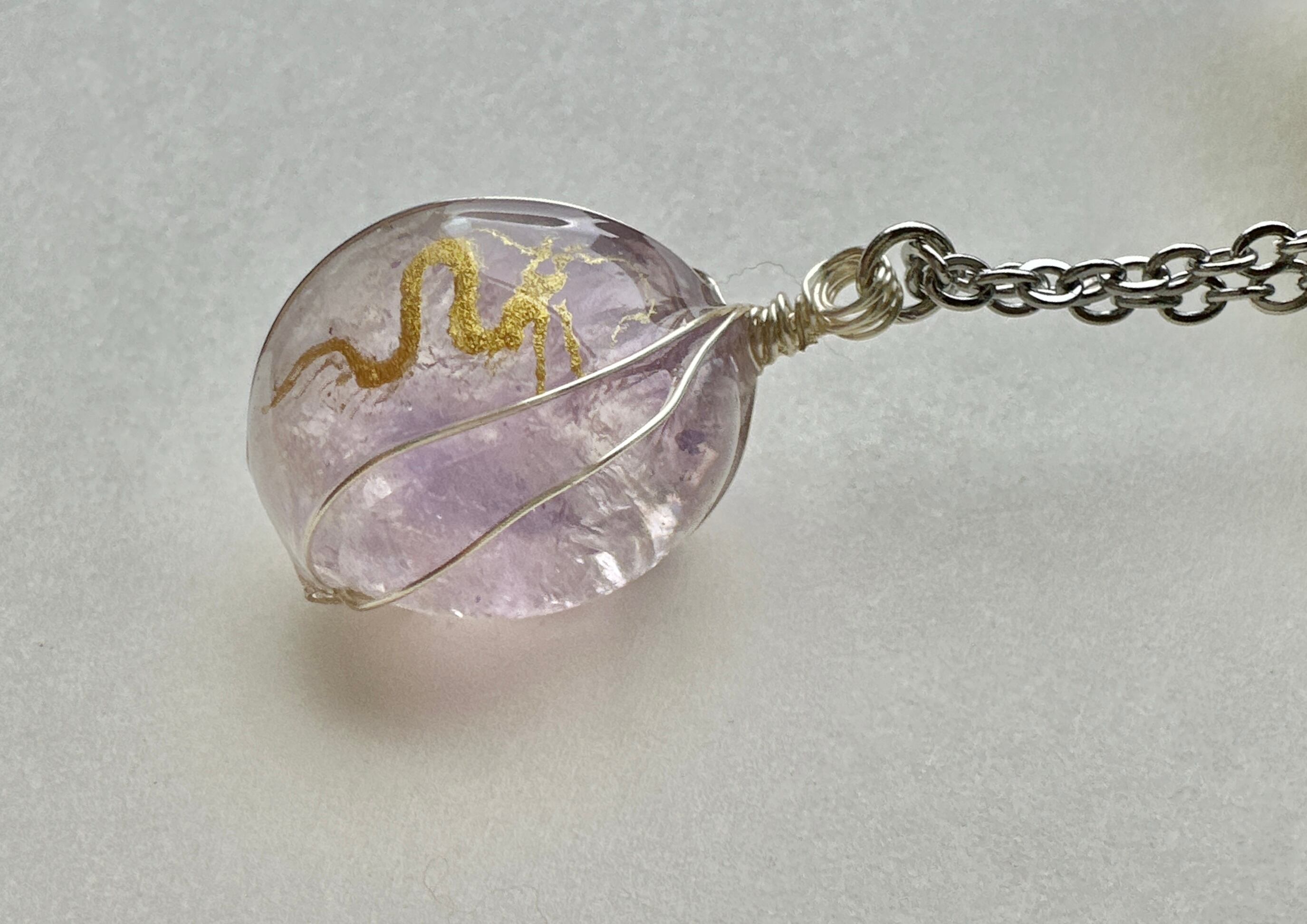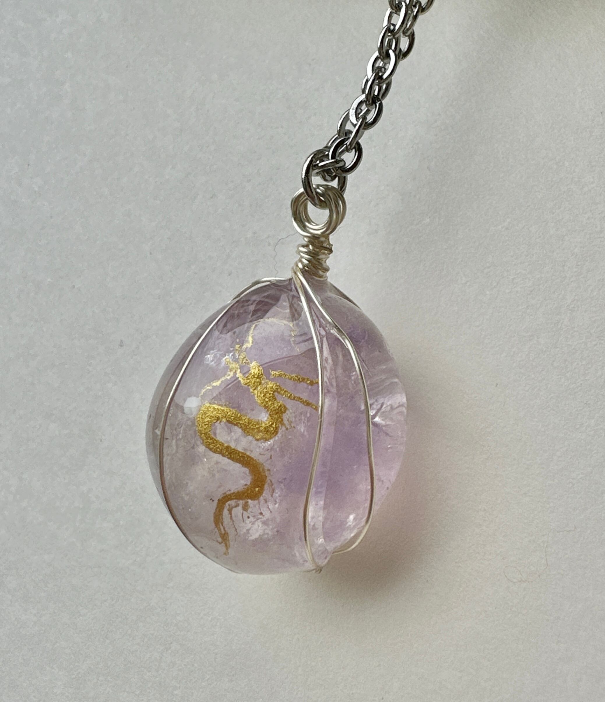 天然石 大 アメジスト(紫水晶) 金龍神 ワイヤーラッピングネックレス