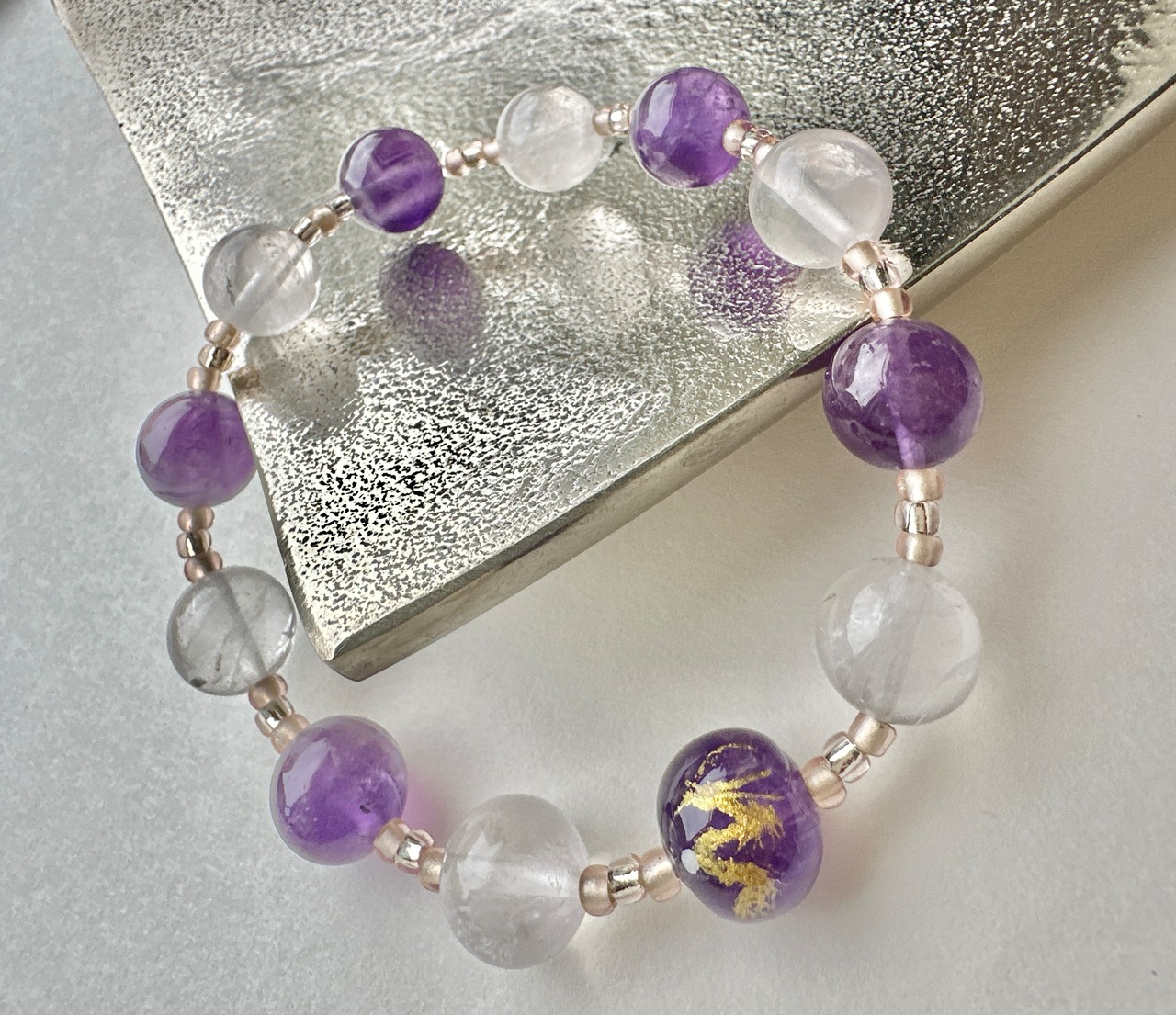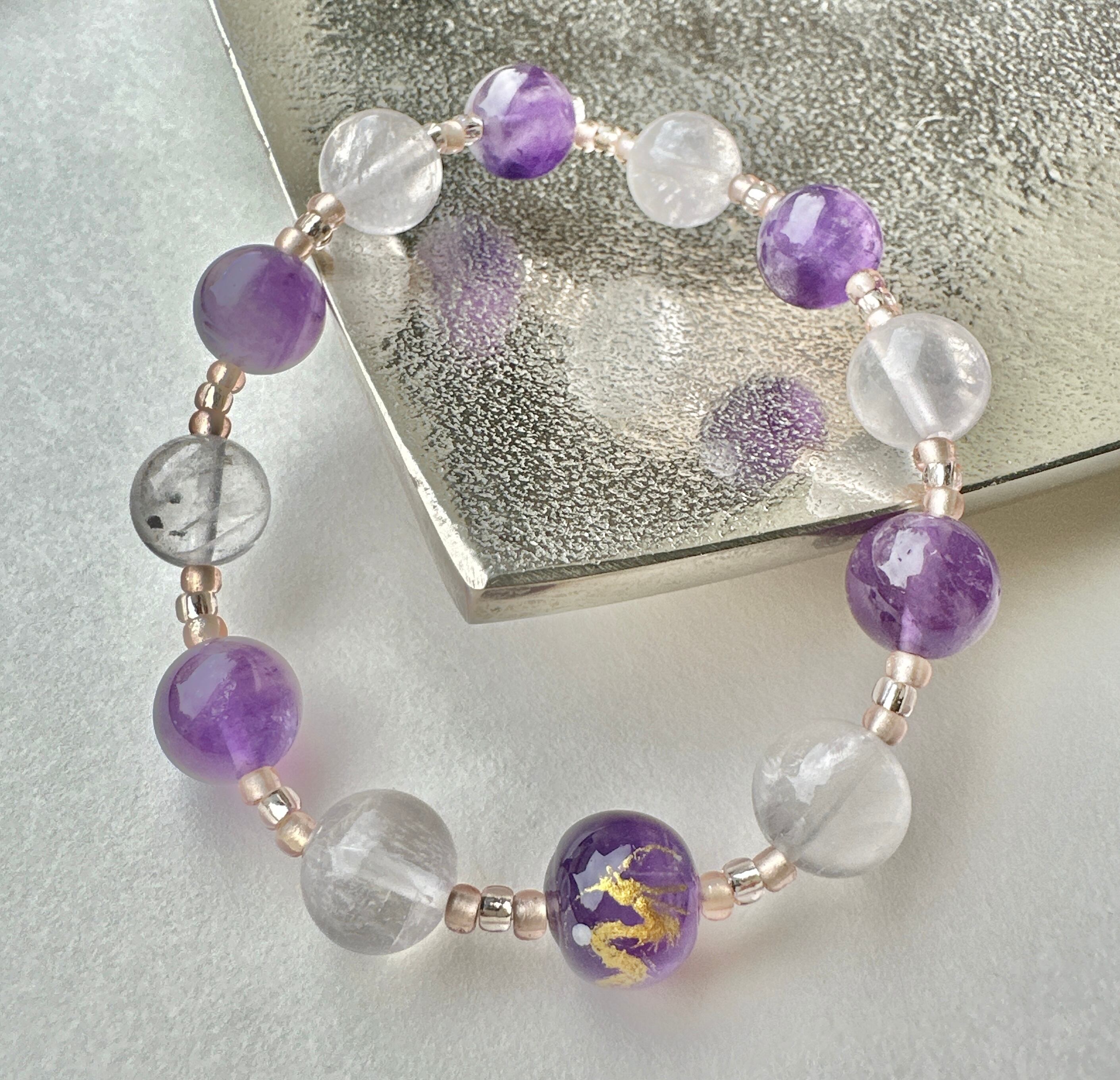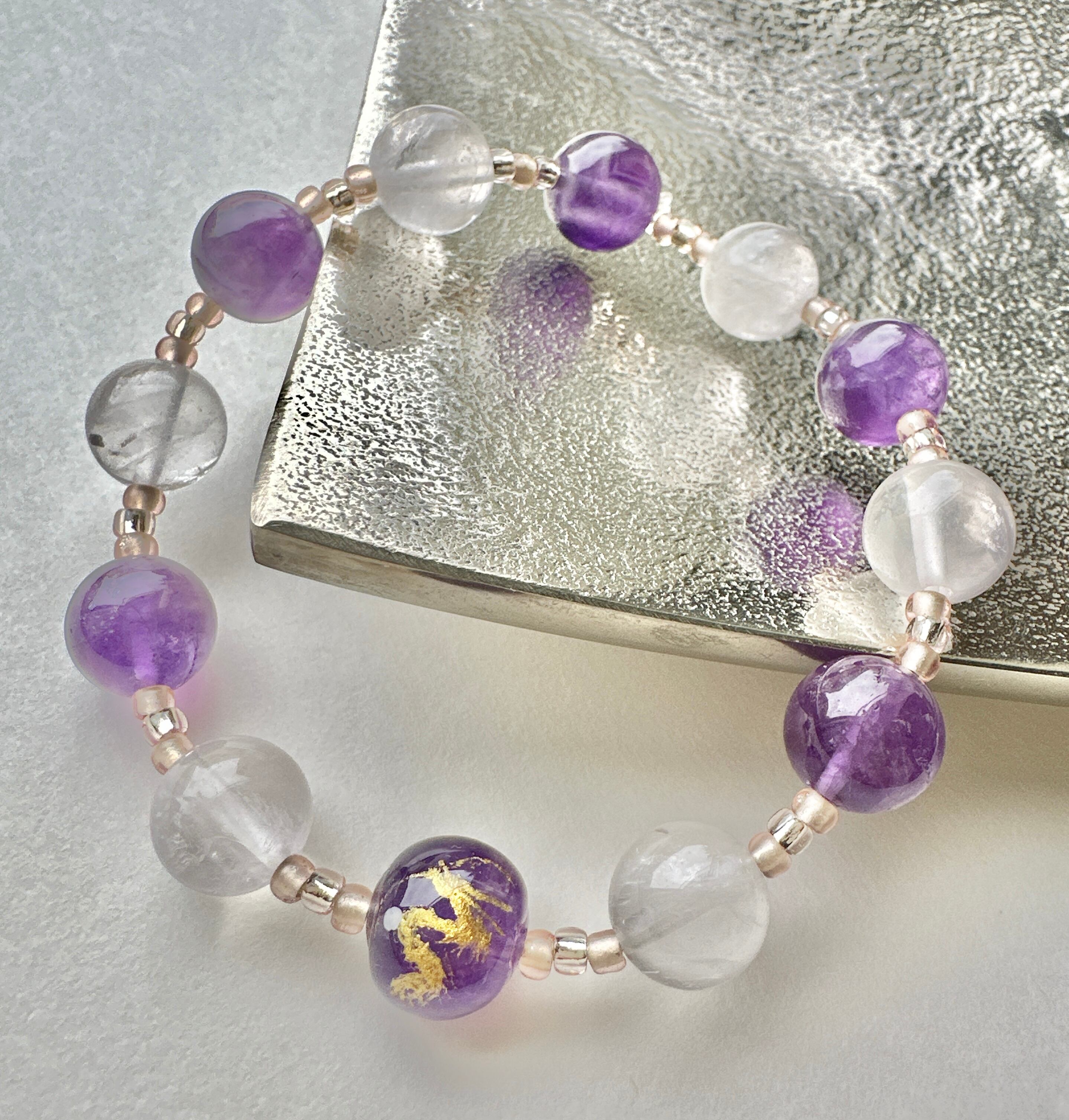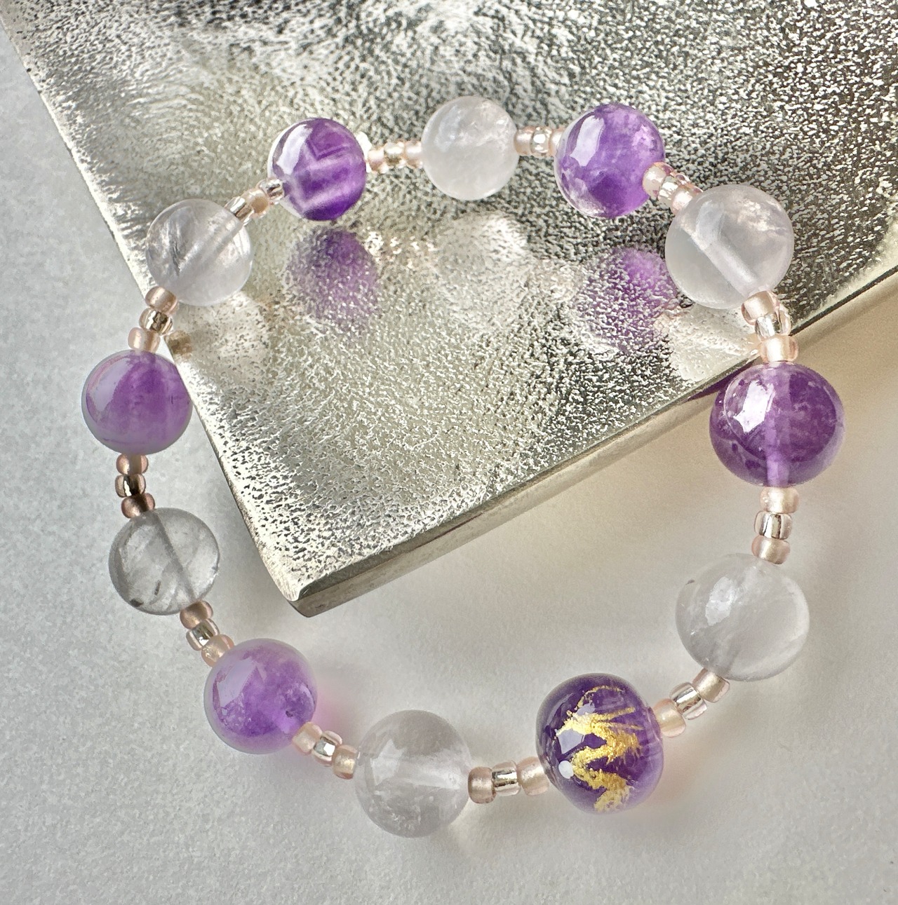 天然石 金龍 アメジスト&ローズクォーツブレスレット