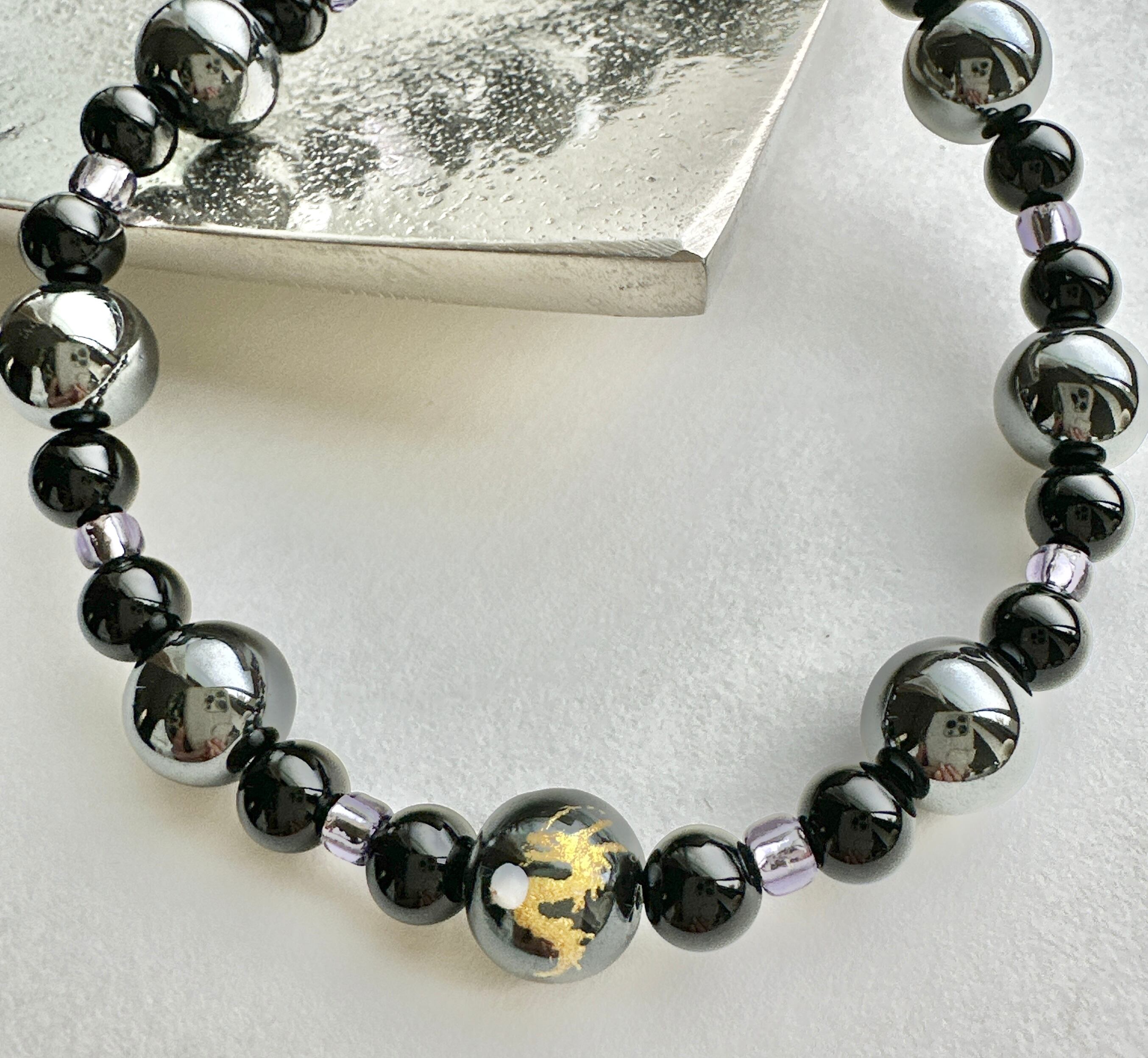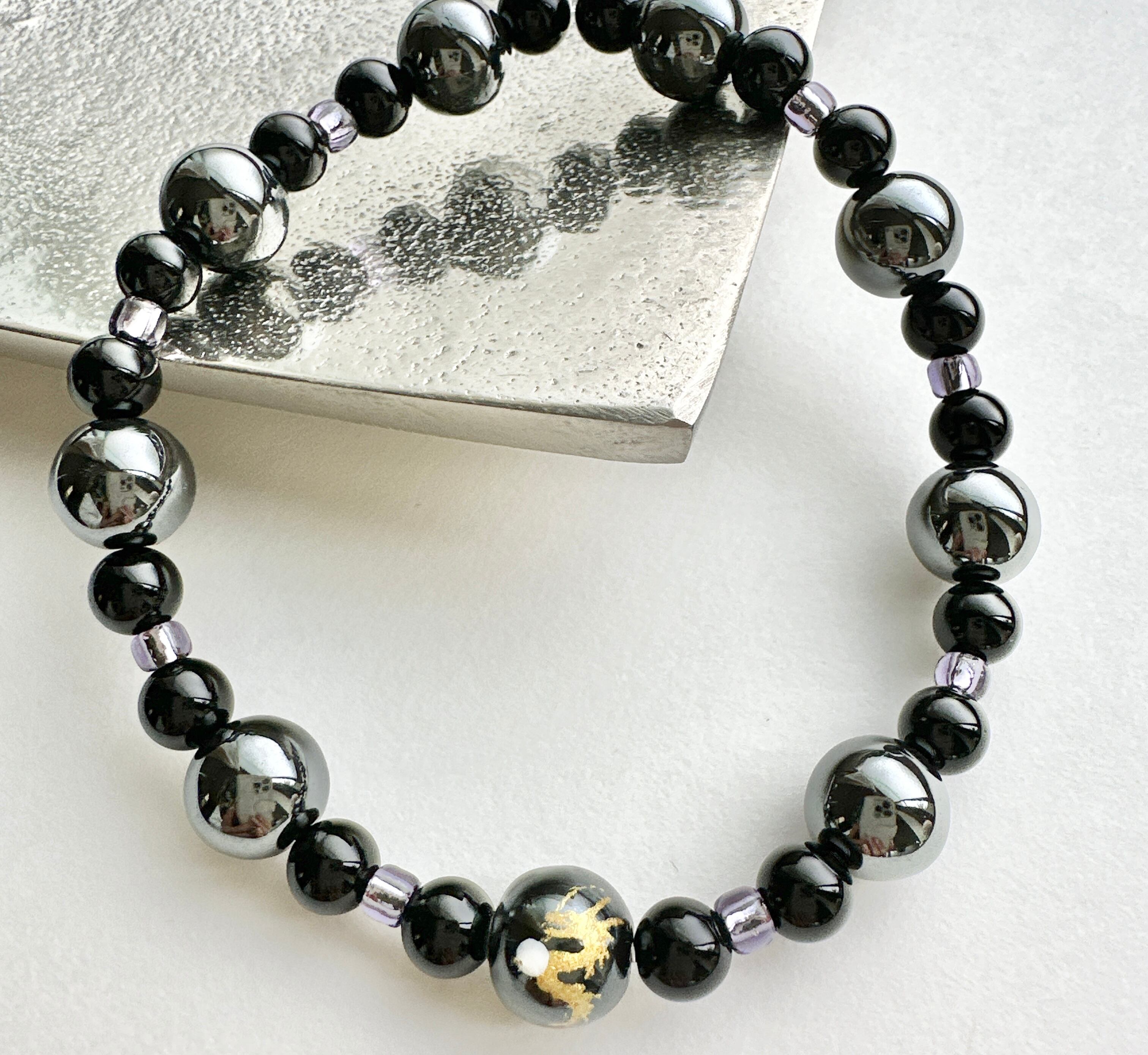 天然石 金龍 テラヘルツ&黒水晶(モリオン)ブレスレット