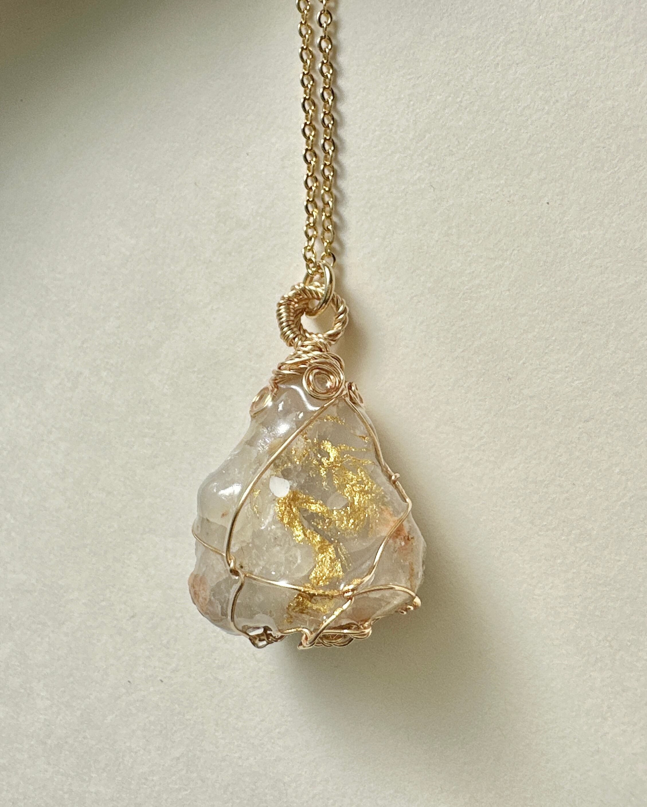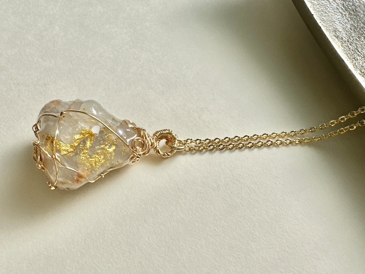 フィンランド鉱石(白) 金龍 ワイヤーラッピングネックレス