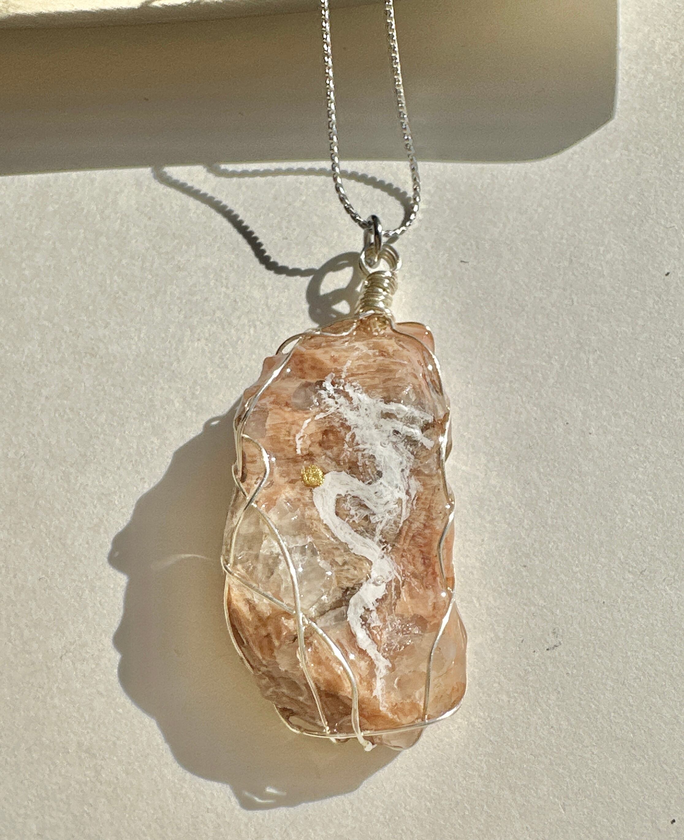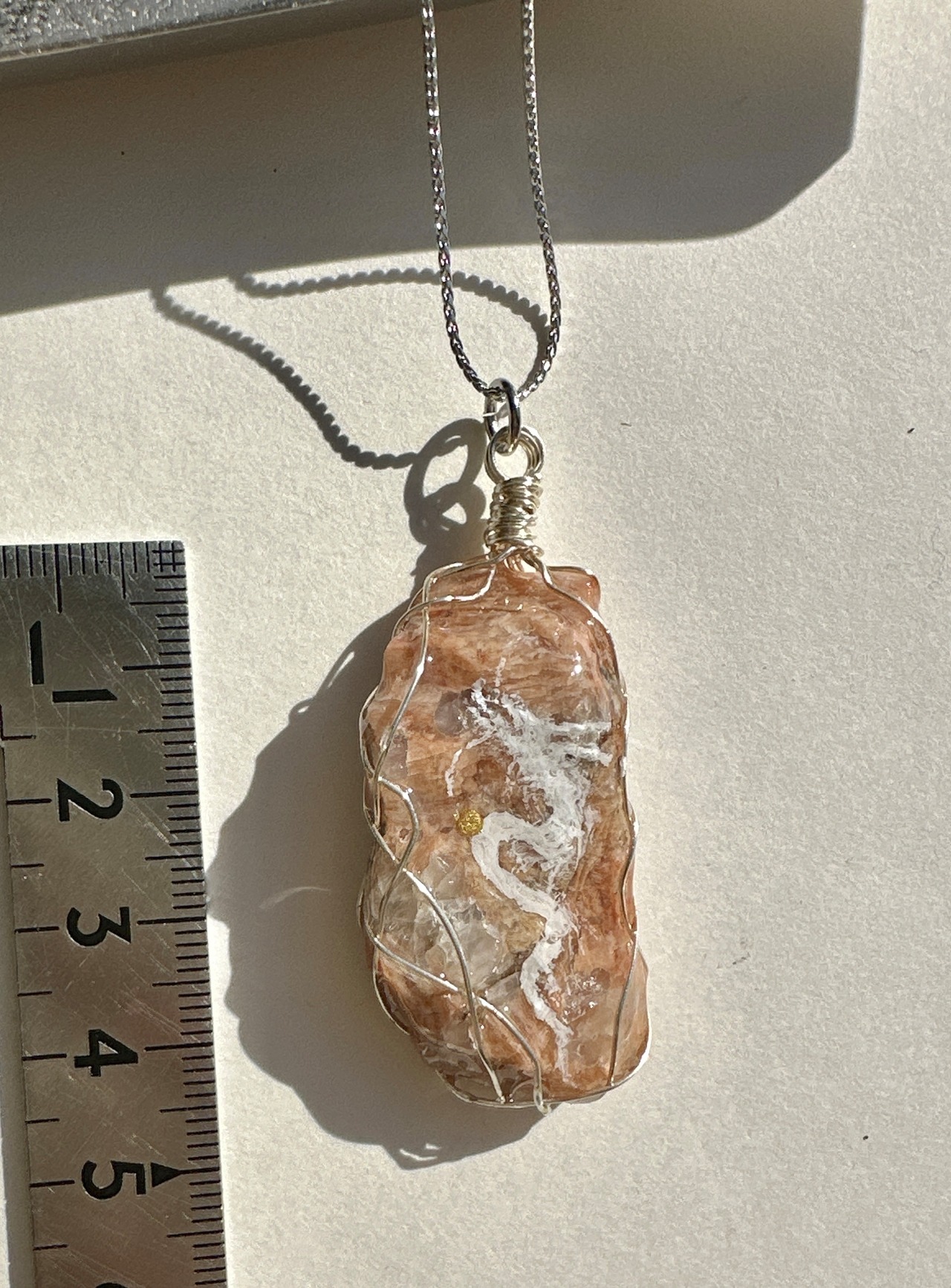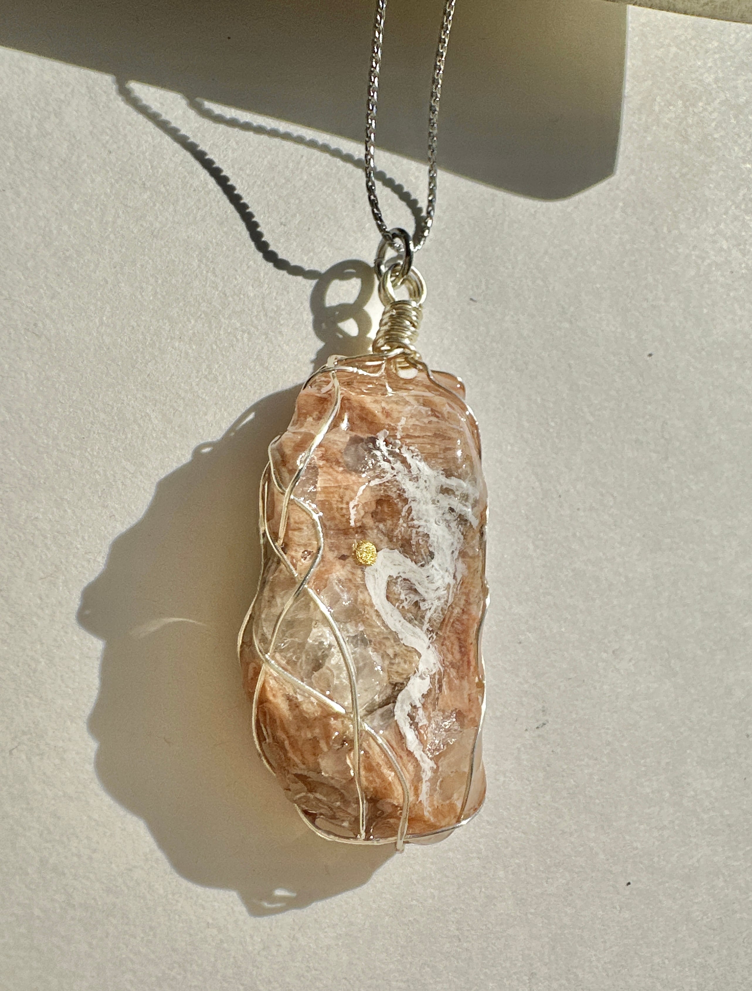 フィンランド鉱石(サーモンピンクマーブル) 白龍ワイヤーラッピングネックレス