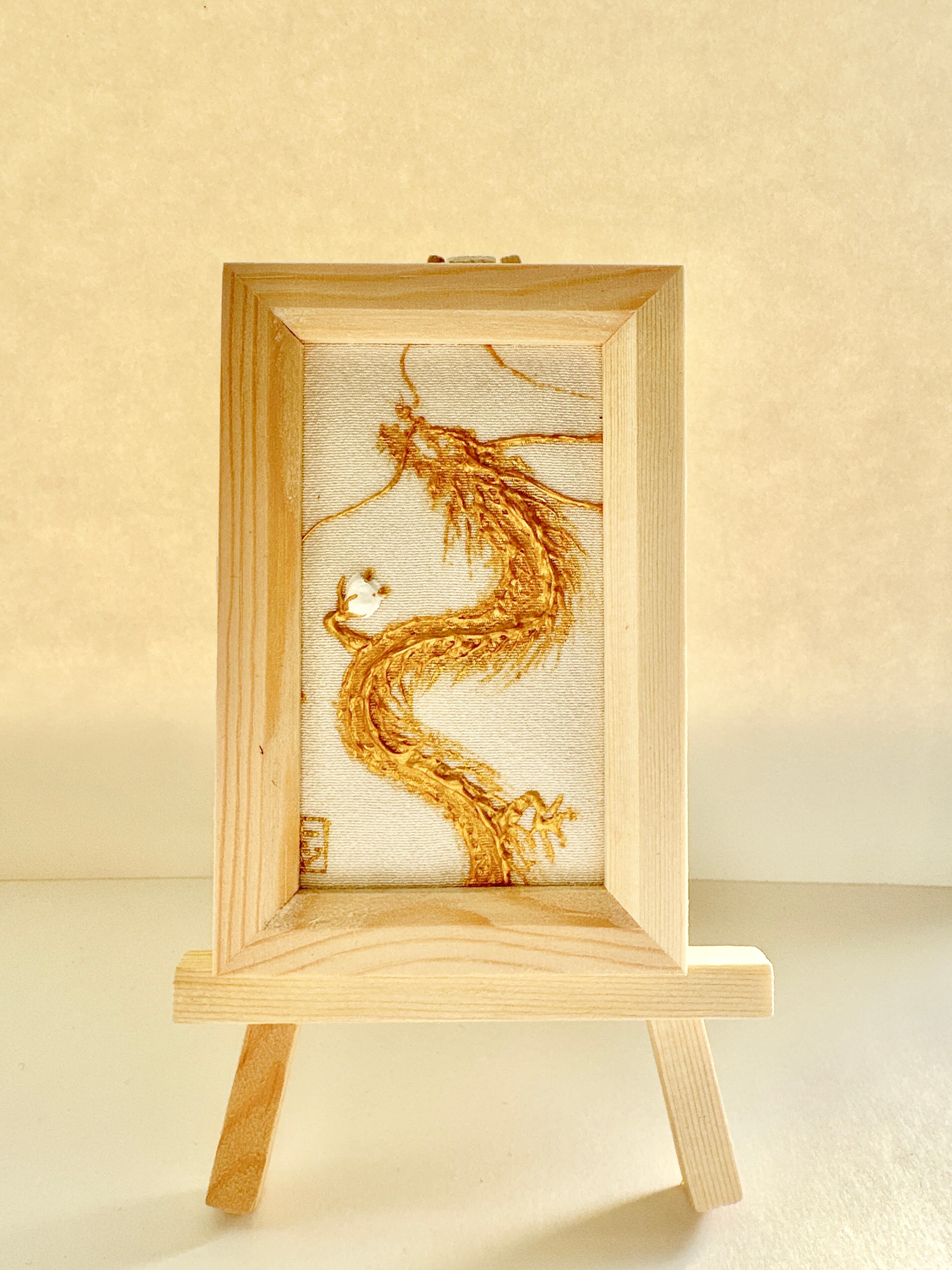 ミニ絹画立体 金龍(白色) イーゼル付き