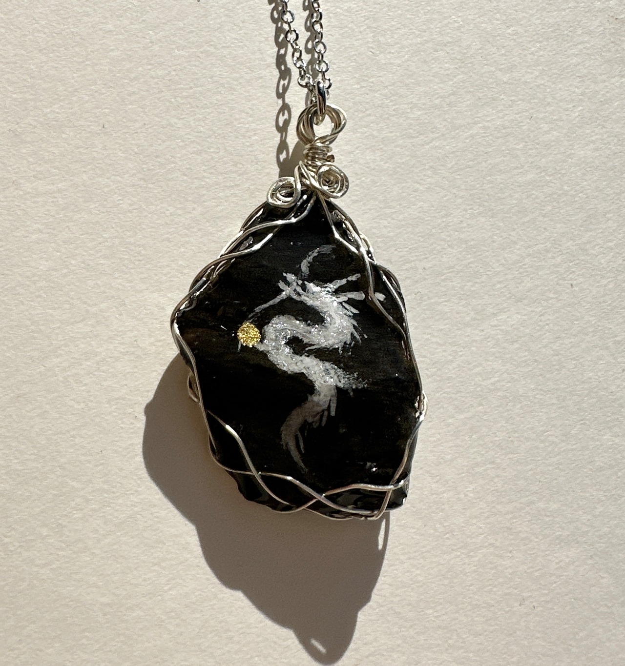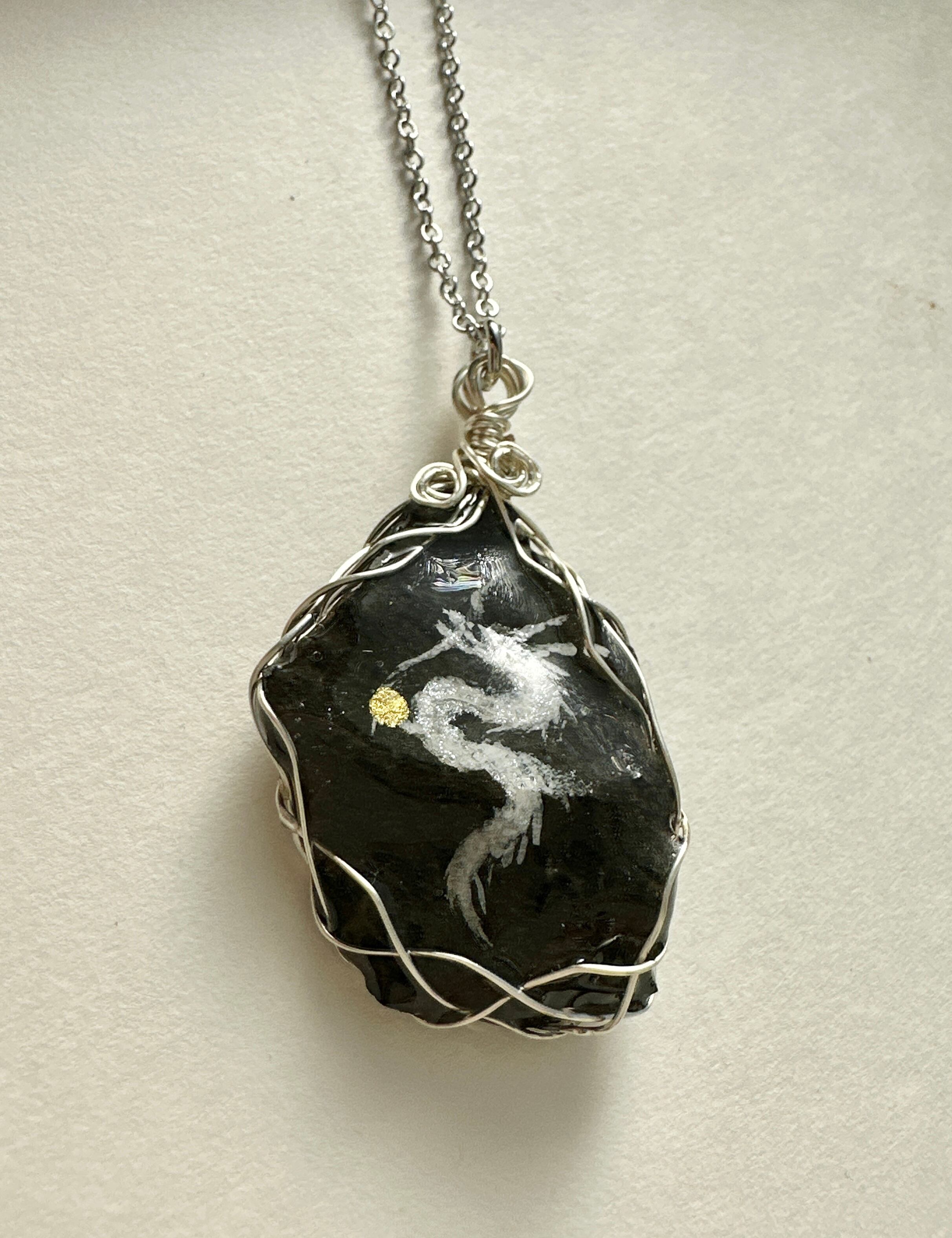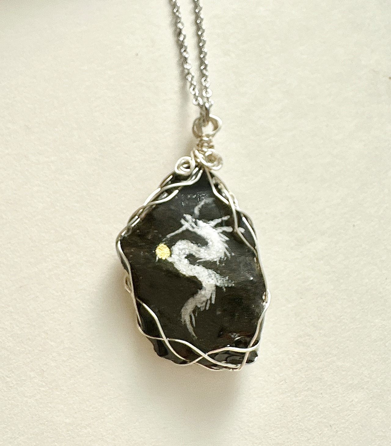 Hawaii stone (黒) 白龍 ワイヤーラッピングネックレス