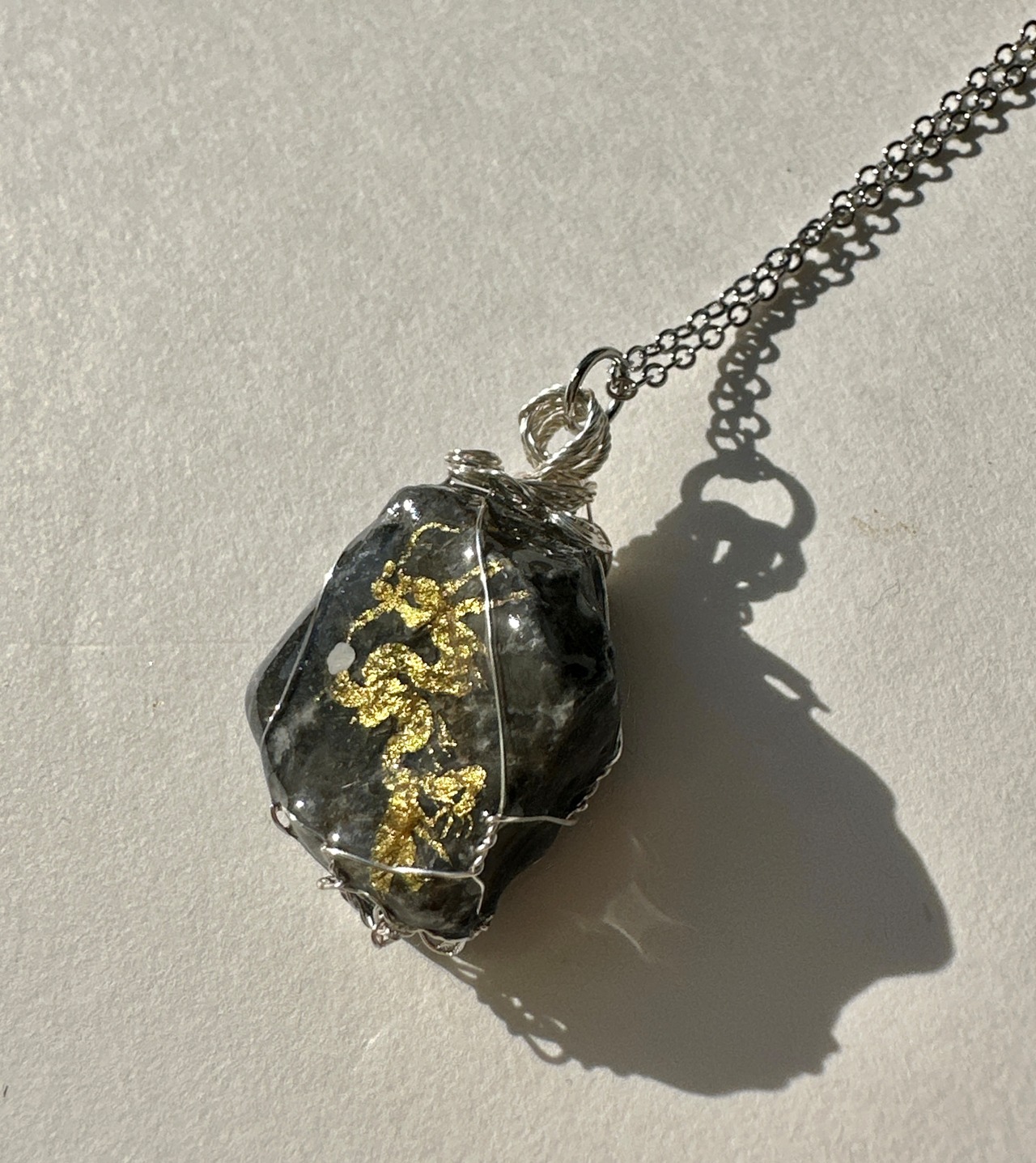 沖縄の石 金龍ワイヤーラッピングネックレス