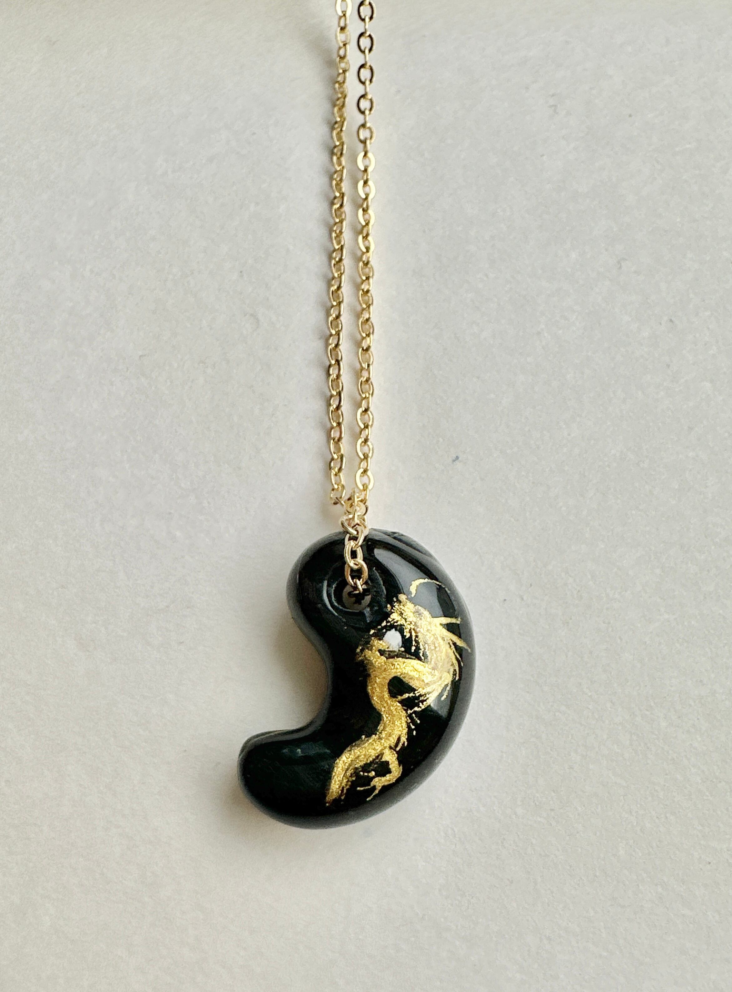 限りなく黒に近いブルータイガーアイの勾玉に描かれた金龍。
