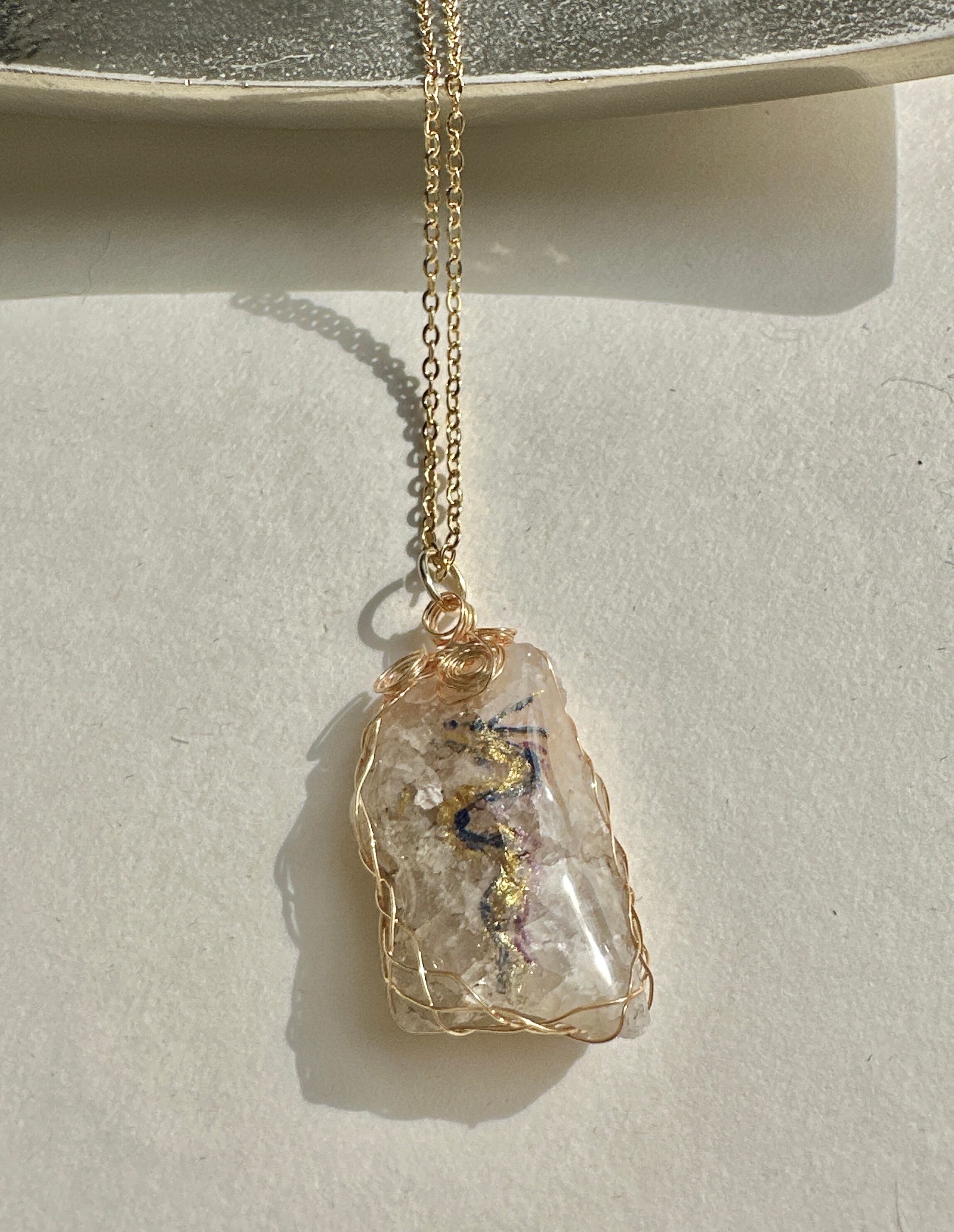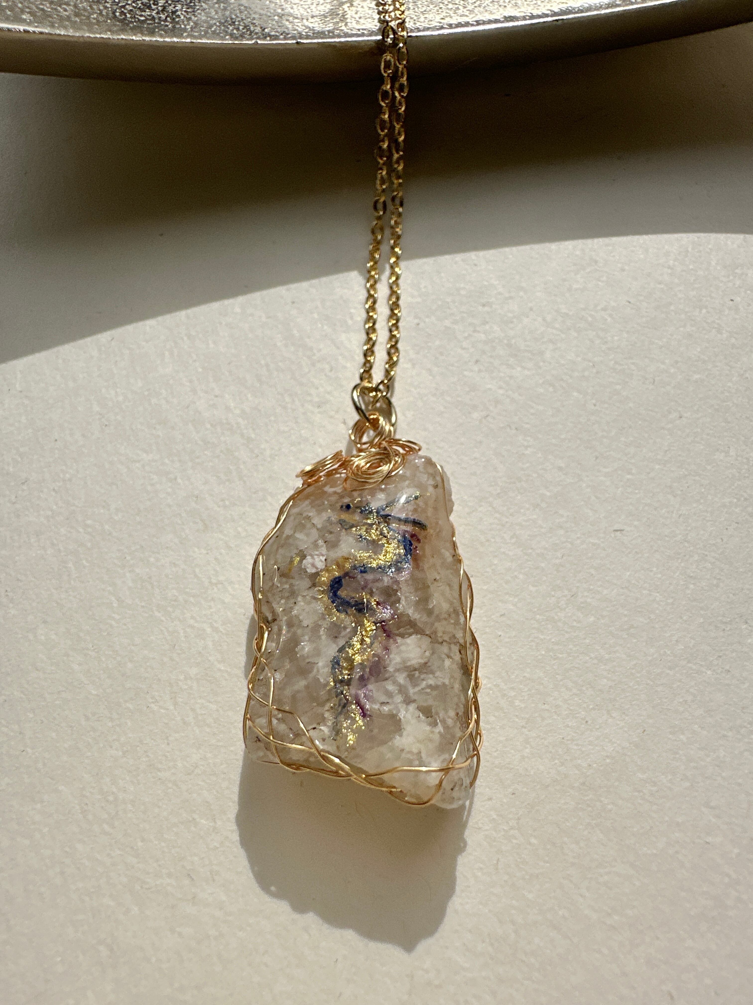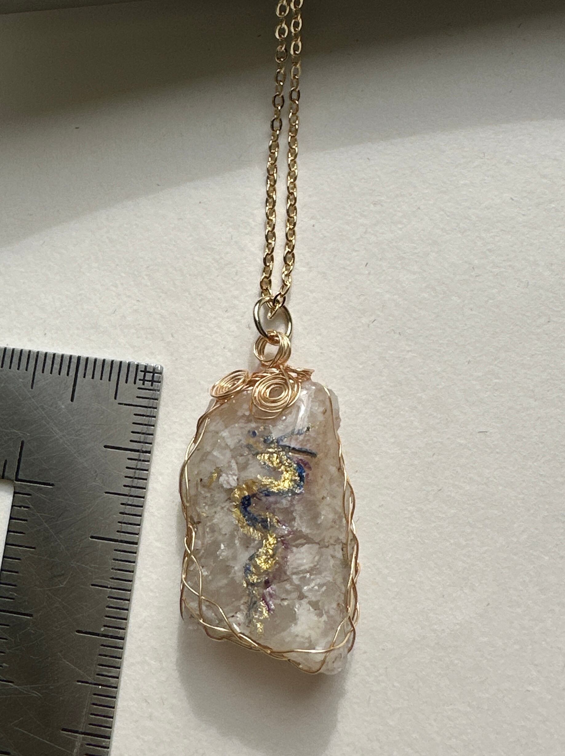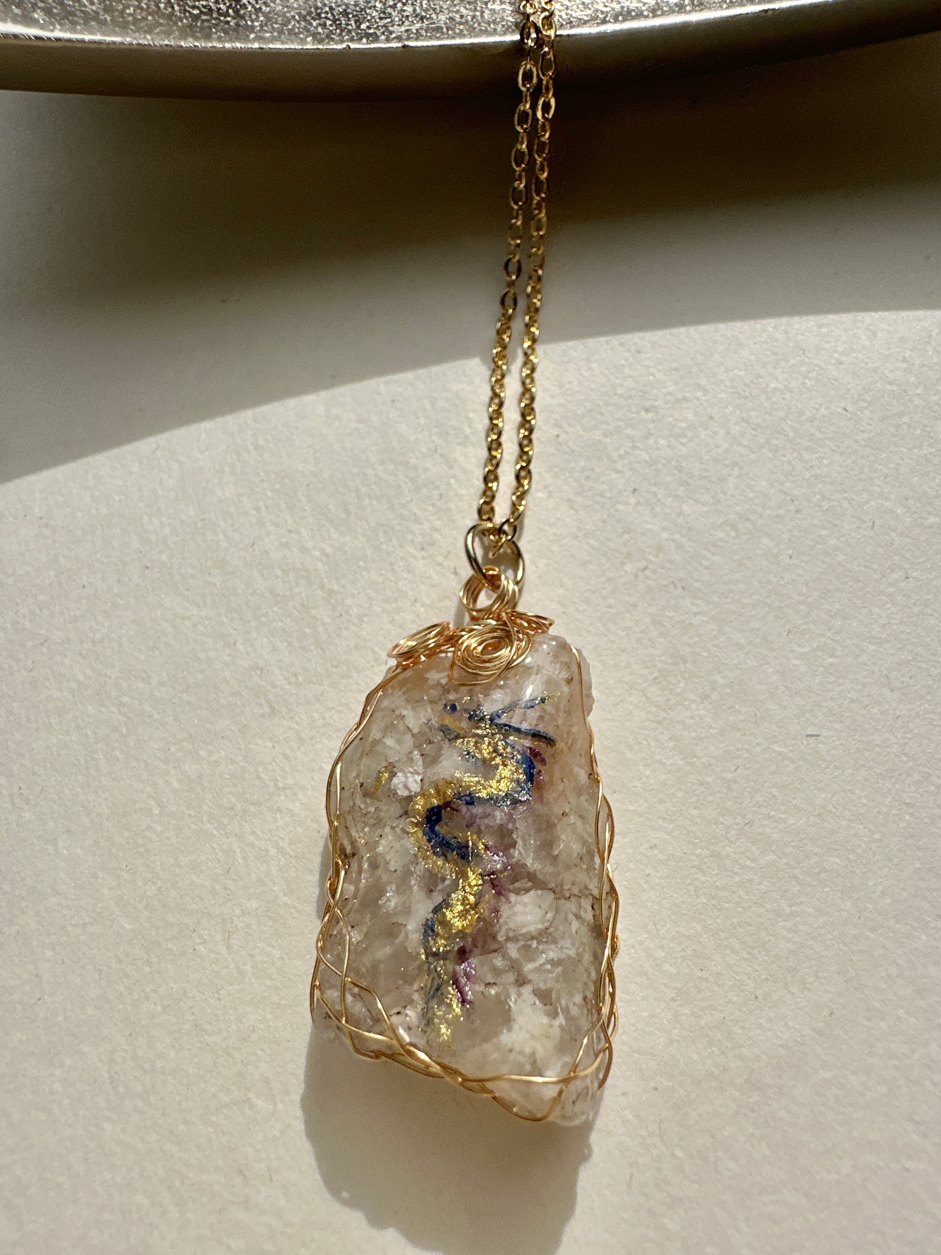 フィンランド鉱石(アッシュホワイト) 金虹龍ワイヤーラッピングネックレス